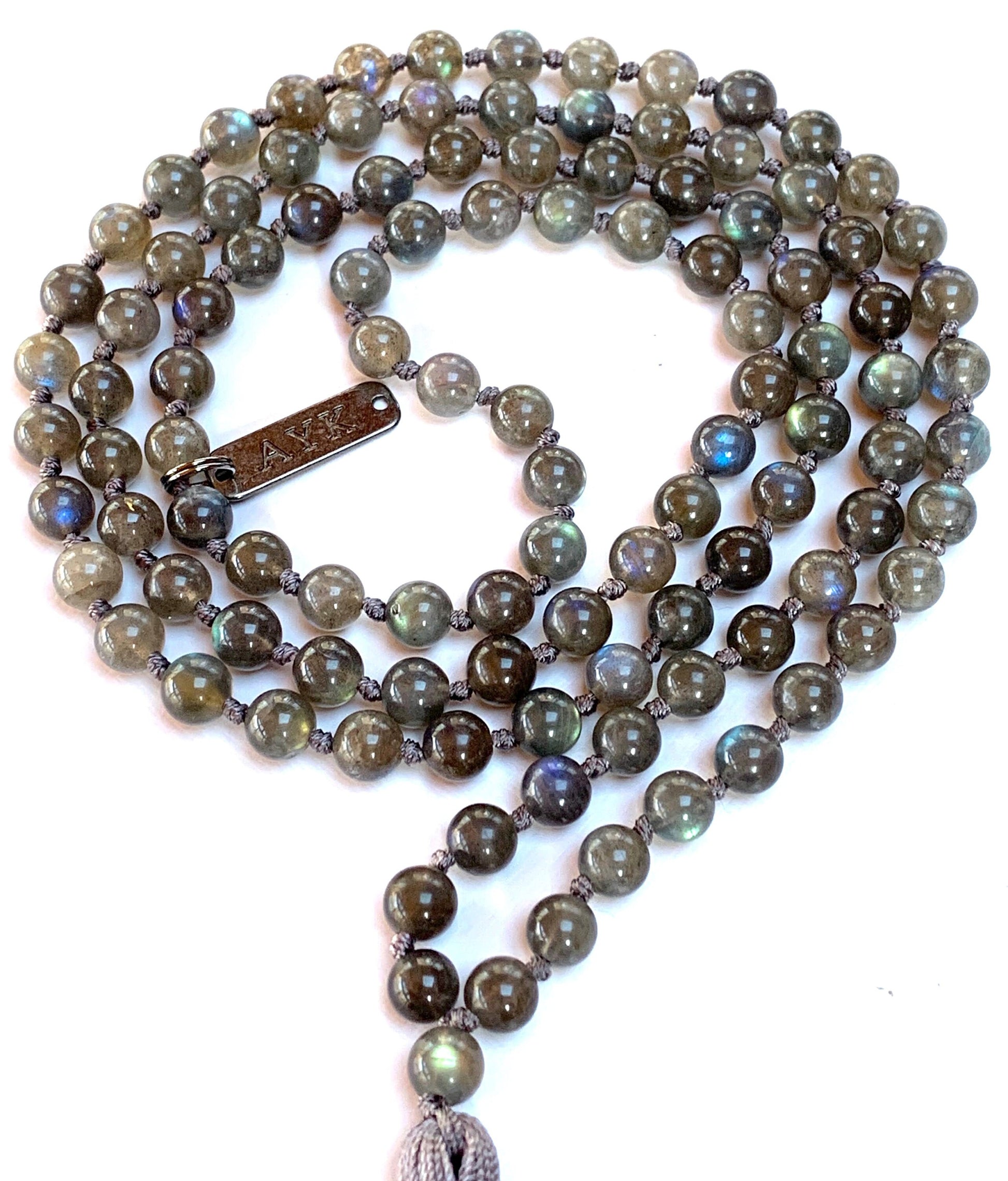 Labradorite Mala Necklace | 108 Beads | VAAK & ALOKA Collections
