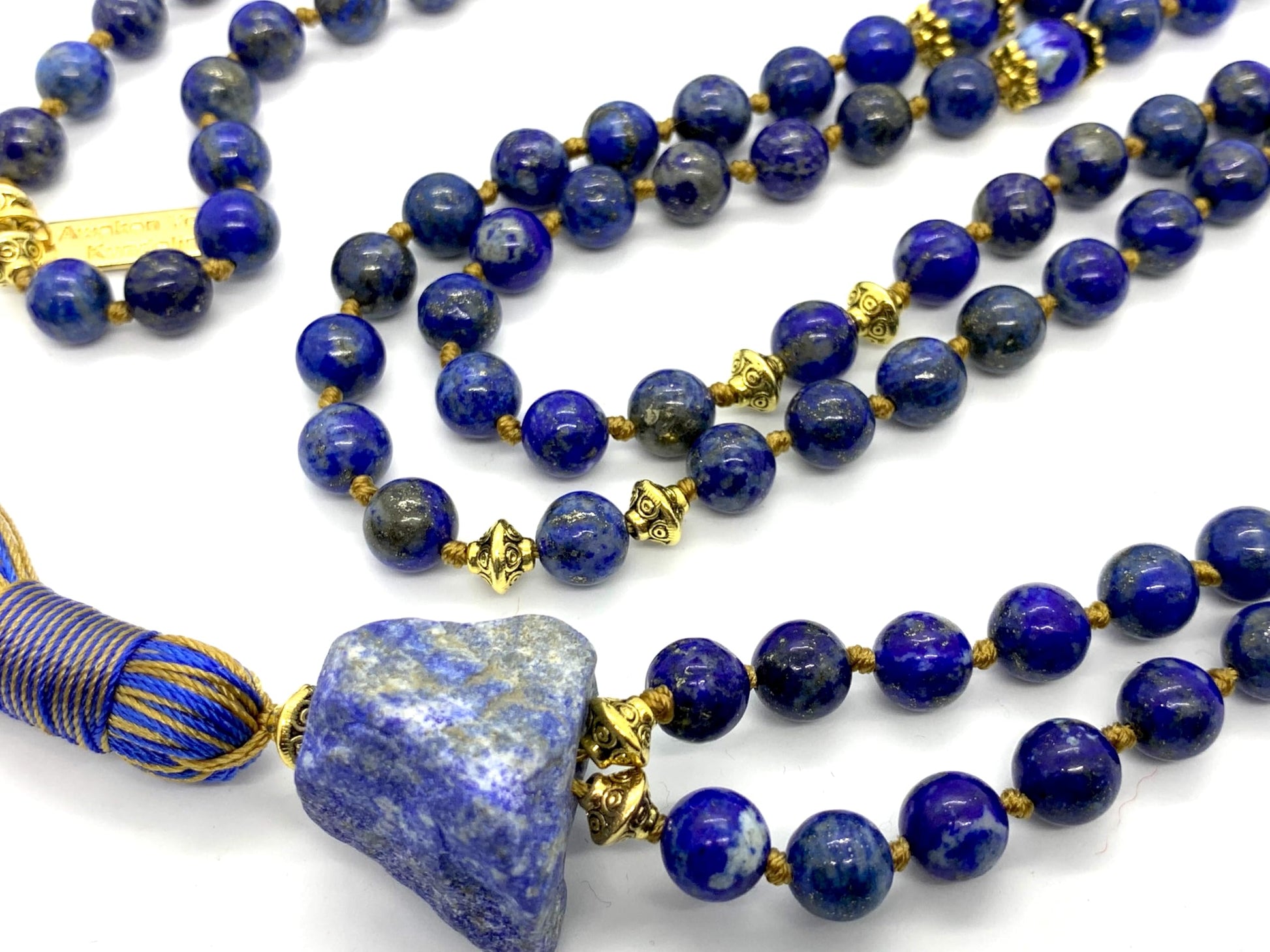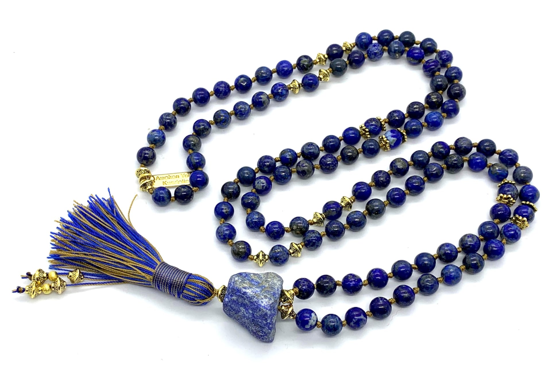 The Hand-Knotted Lapis Lazuli Mala Necklace from the SATYA Collection by Awaken Your Kundalini is a sacred adornment for truth, wisdom, and inner vision. Carefully crafted with 108 hand-knotted 8mm beads, this mala is both a spiritual tool and an elegant piece of gemstone jewelry. It is designed for meditation, mantra recitation, and daily wear, carrying the timeless vibration of Lapis Lazuli — the Stone of Truth and Wisdom.
