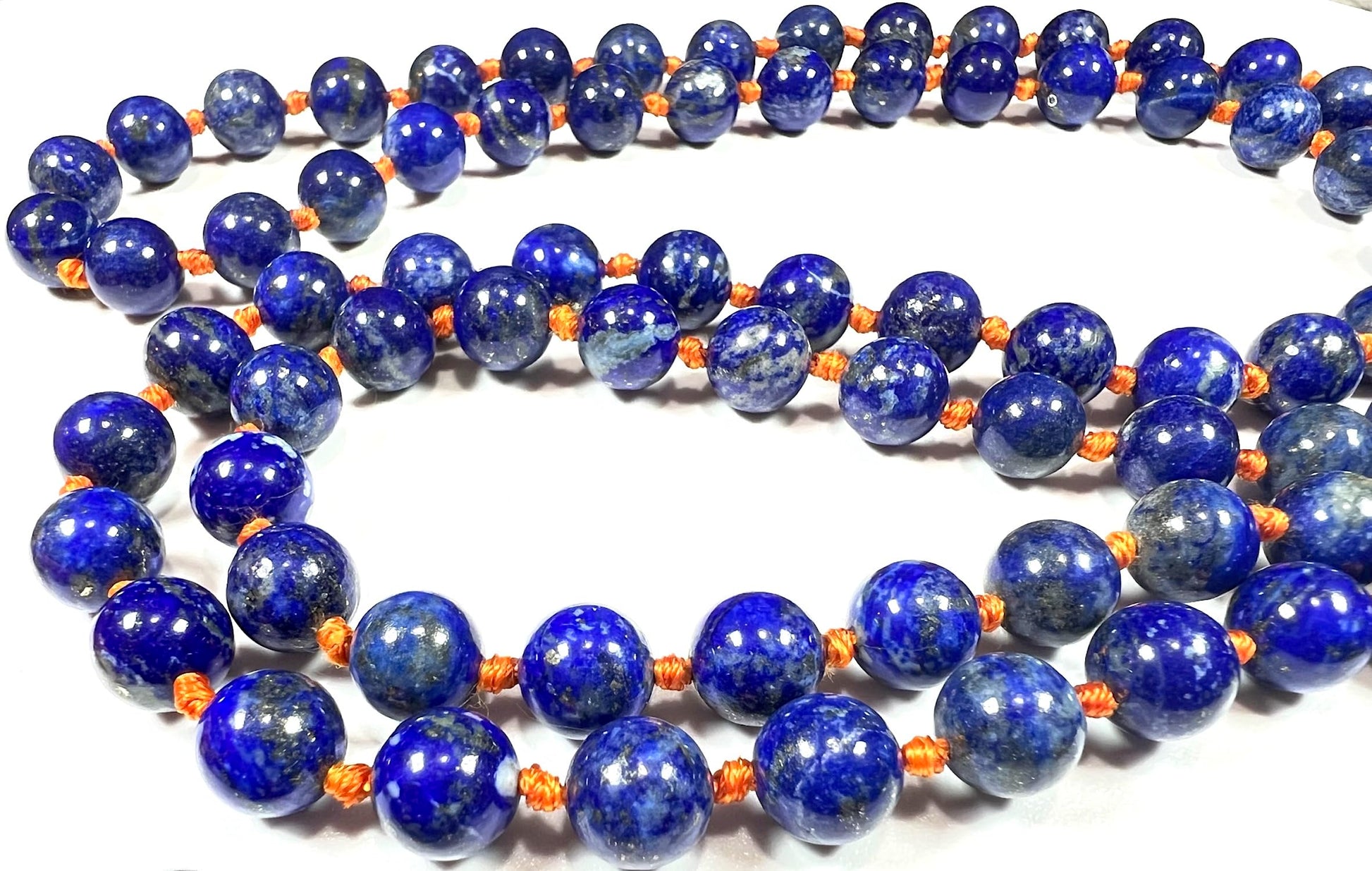 - This isn't just a necklace, it's a portal to inner wisdom! Hand-Knotted Perfection: Meticulously crafted for durability and spiritual connection. Inspiring Lapis Lazuli: Known for its wisdom-enhancing and calming properties. Throat Chakra Alignment: Promotes clear communication and self-expression. 108+1 Beads: Traditional mala design for spiritual practices.