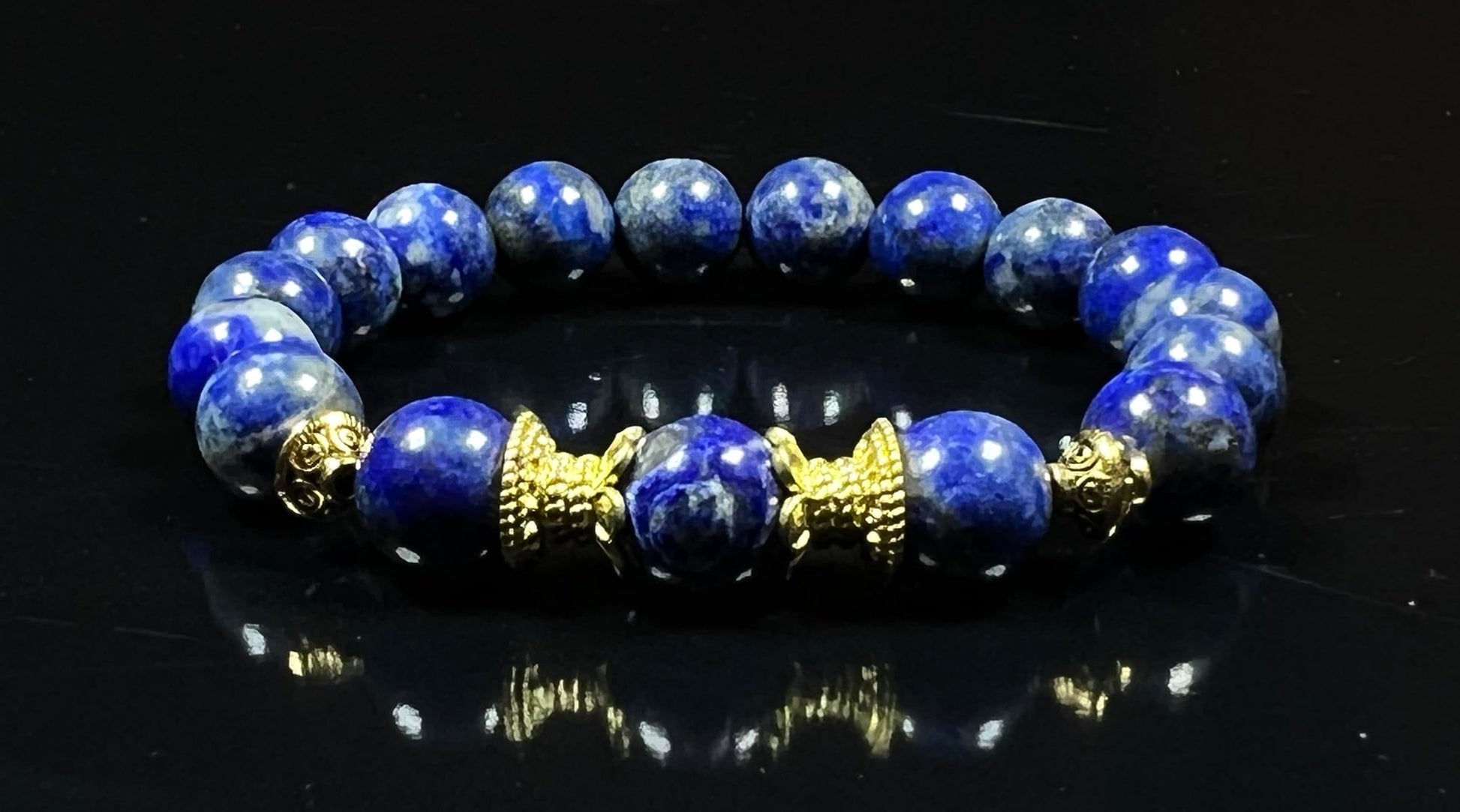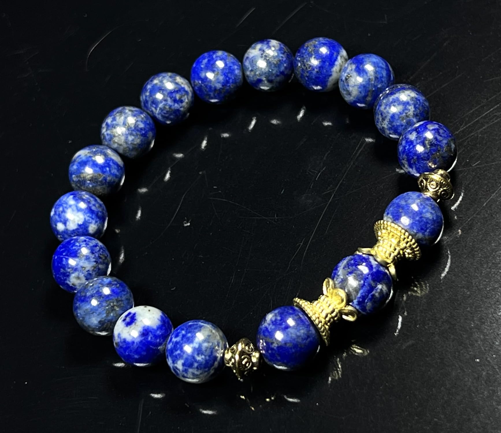 The Lapis Lazuli Stretch Bracelet from the SATYA Collection by Awaken Your Kundalini is crafted with natural 10mm Lapis Lazuli beads, designed to enhance wisdom, insight, and spiritual vision. Stretchable and comfortable, it carries the celestial vibration of Lapis Lazuli, making it perfect for meditation, healing, and daily wear.