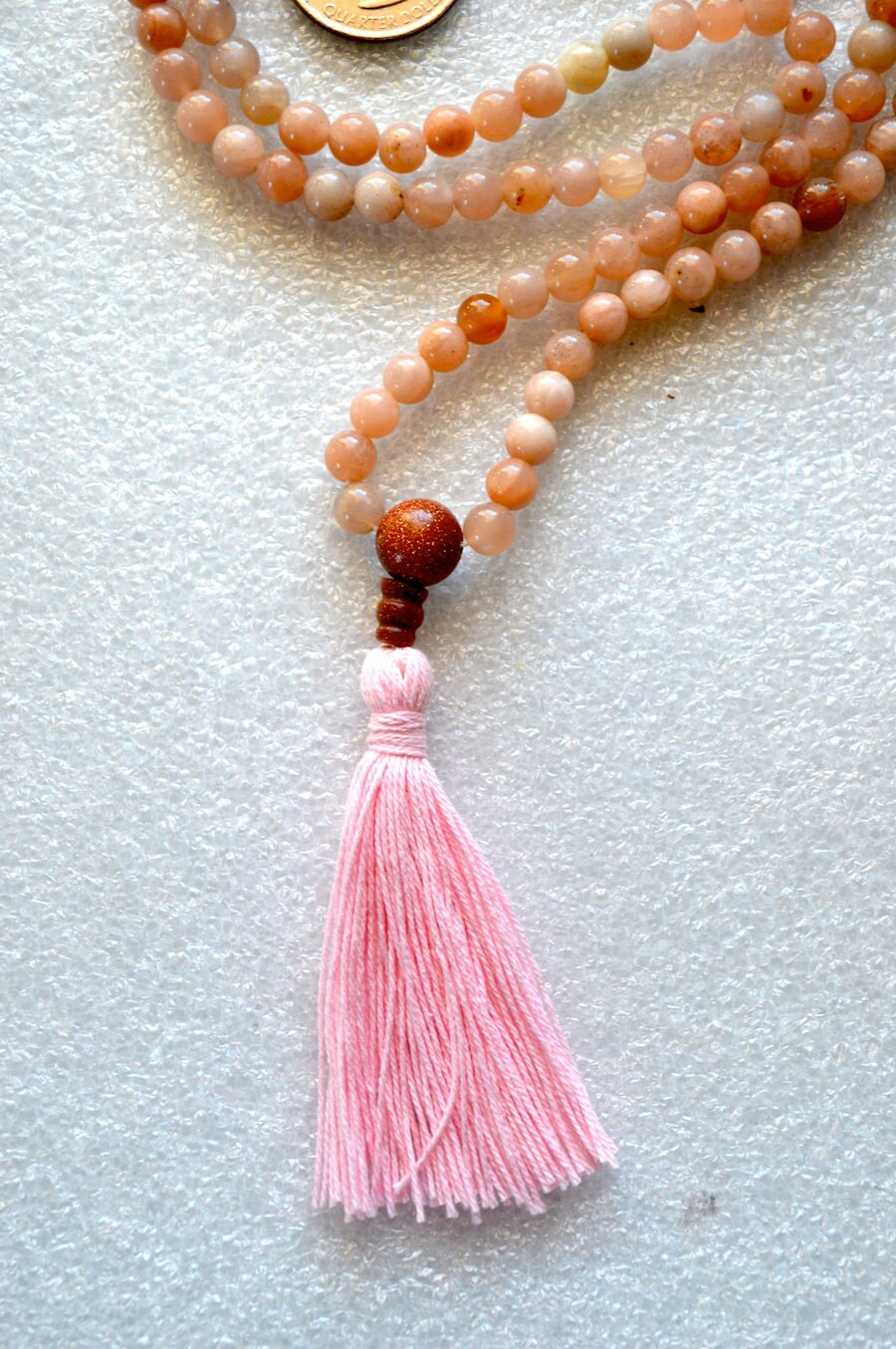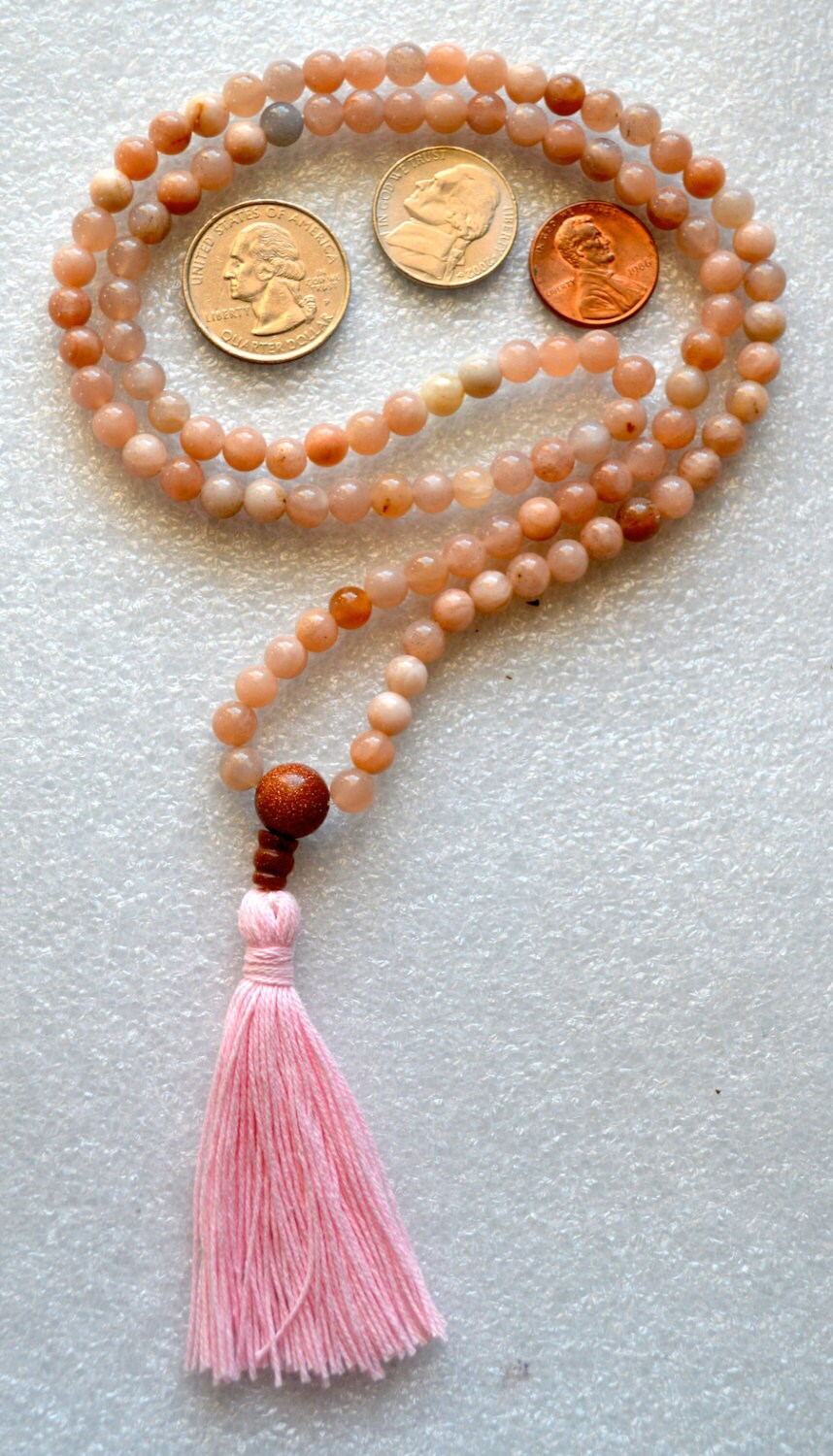 Moonstone Natural Flower Handmade Mala Beads Necklace -Blessed Karma Nirvana Meditation 8 mm 108 Prayer Beads For Awakening Chakra Kundalini