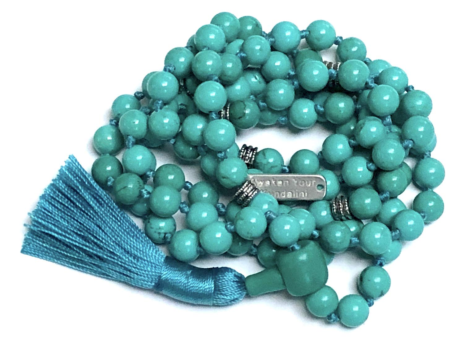 Natural Turquoise Gemstone Mala Necklace, Boho Style, Handmade Jewelry, Healing Properties, Communication