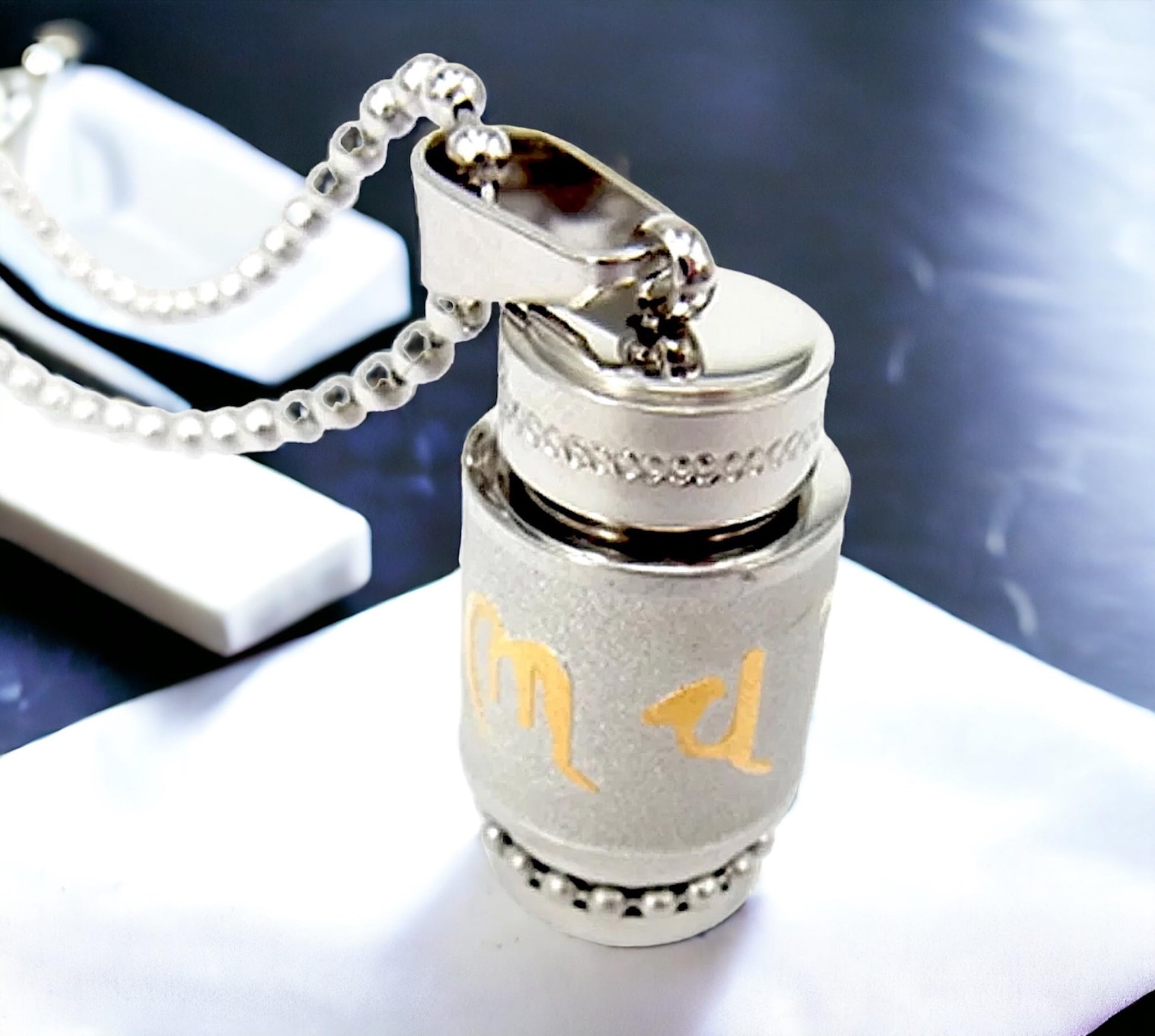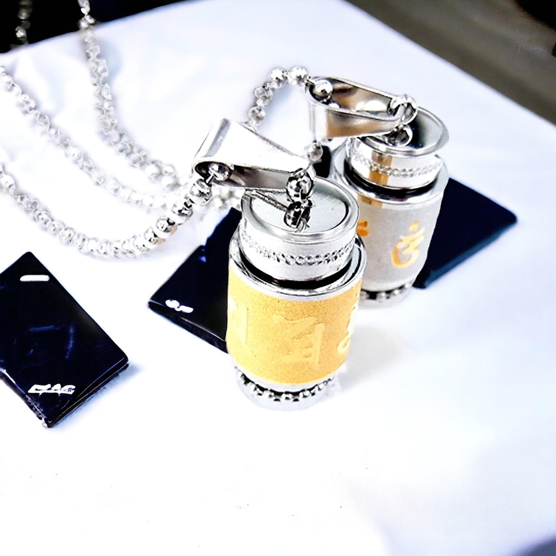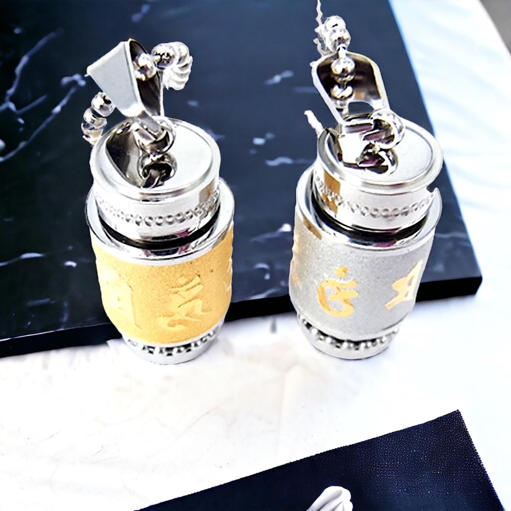 - Discover inner peace with our handmade Buddhist Column Pendant featuring the sacred mantra "Om Mani Padme Hum." Crafted from stainless steel with a silver finish, this pendant is a beautiful expression of spiritual connection. The mantra is a powerful symbol of compassion and enlightenment. This versatile pendant can be styled with various chains to suit your personal taste. Its compact size, measuring approximately 33.5x13mm, makes it a discreet yet meaningful accessory.