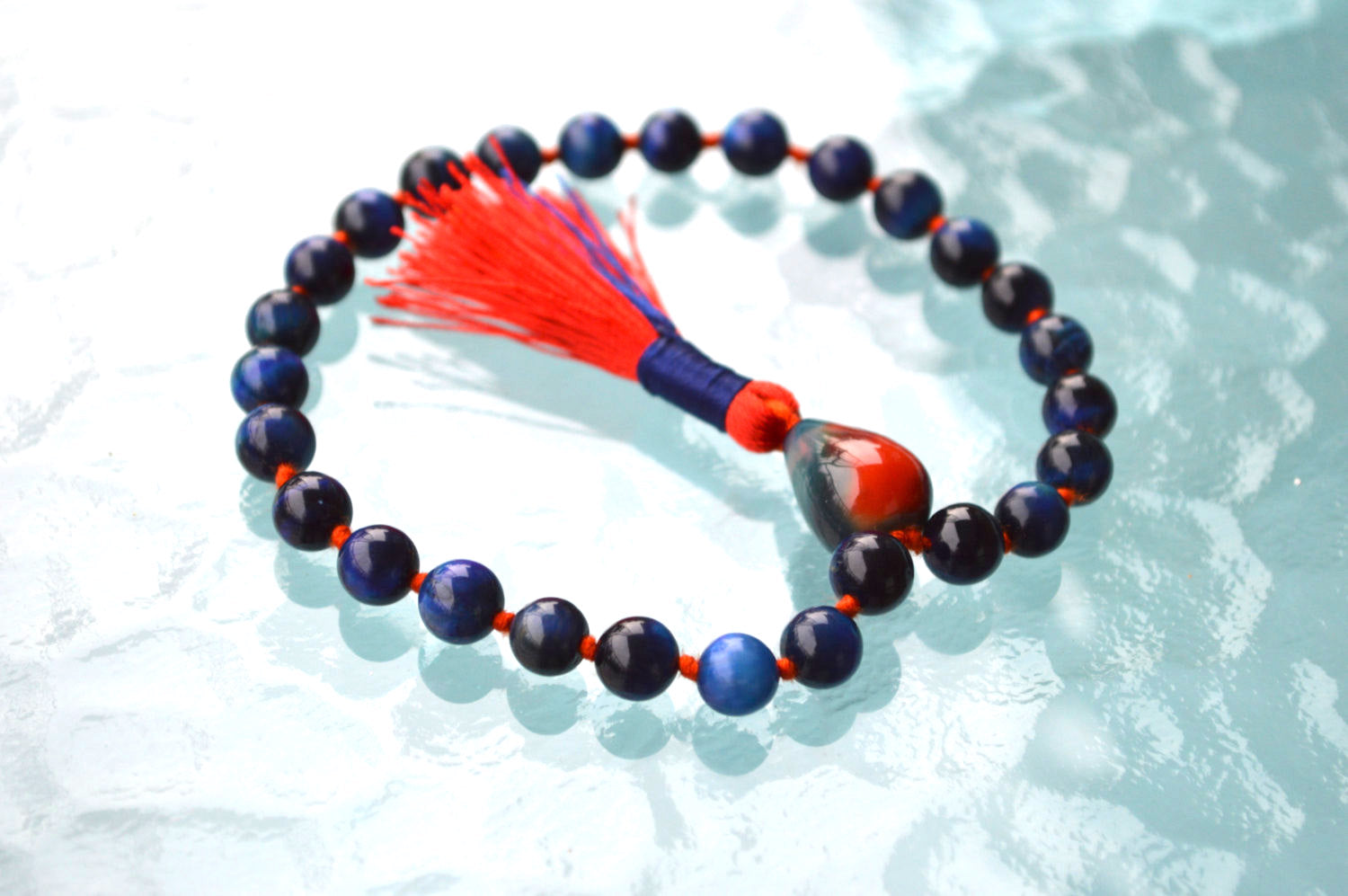 Use a soft, dry cloth to gently wipe down your beads. Avoid harsh chemicals or soaking in water, especially for porous materials like rudraksha or wood. For gemstone beads, use a lightly dampened cloth and dry immediately.