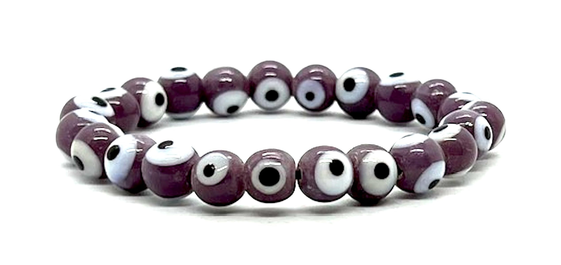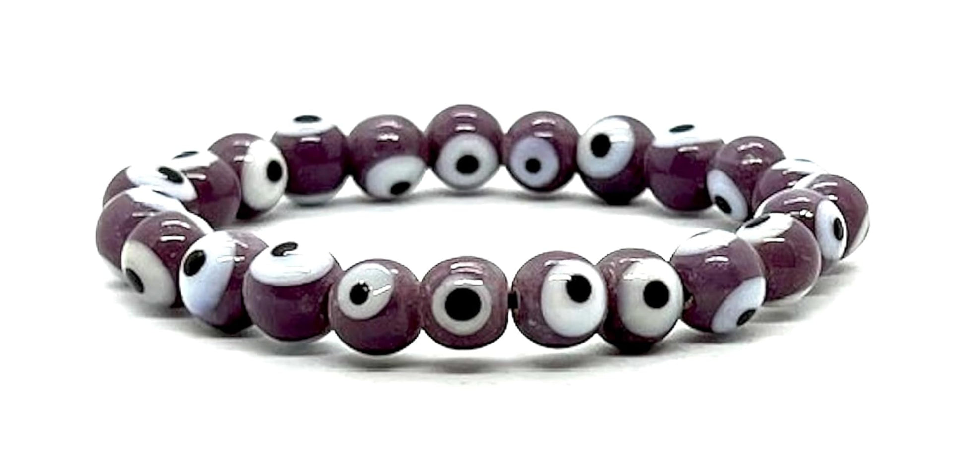 - Stretch Bracelet for Comfort & Style: This bracelet is made with a durable stretch cord for a comfortable and stylish fit on most wrists. Product Specifications: Material: Genuine Brown Beads (8mm), Evil Eye Charm. Size: Approximately 7.5-inch circumference (one size fits most). Style: Stretch Bracelet.
