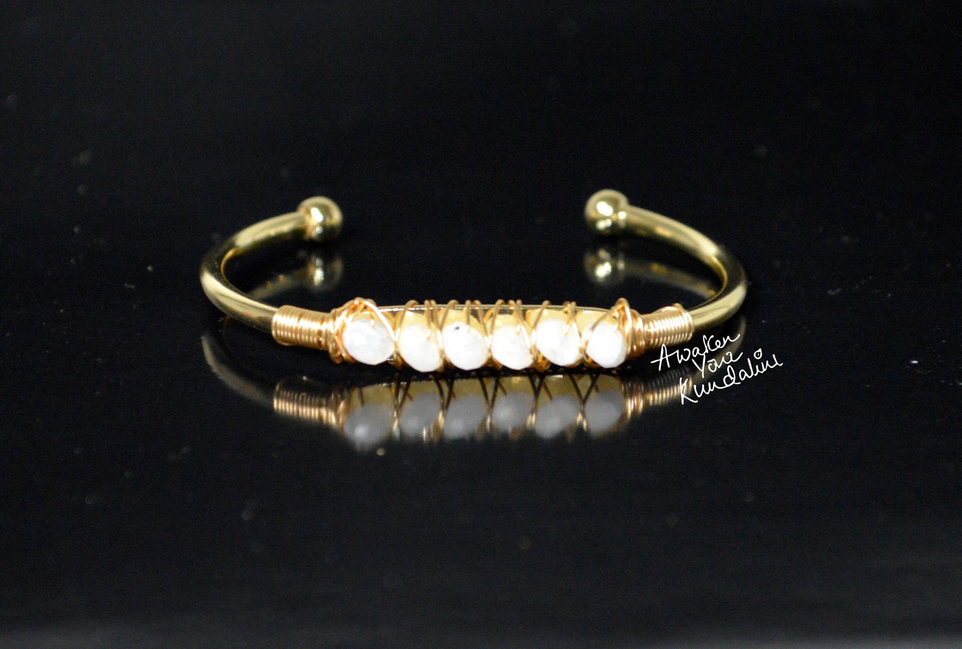 Moonstone, known as the Stone of New Beginnings, resonates with the Third Eye Chakra (Ajna) and Crown Chakra (Sahasrara) while connecting deeply to feminine energy. It enhances intuition, nurtures emotional healing, and aligns the spirit with cycles of renewal. The raw, uncut form of Moonstone preserves its natural brilliance and vibrational purity, making this cuff both powerful and authentic.
