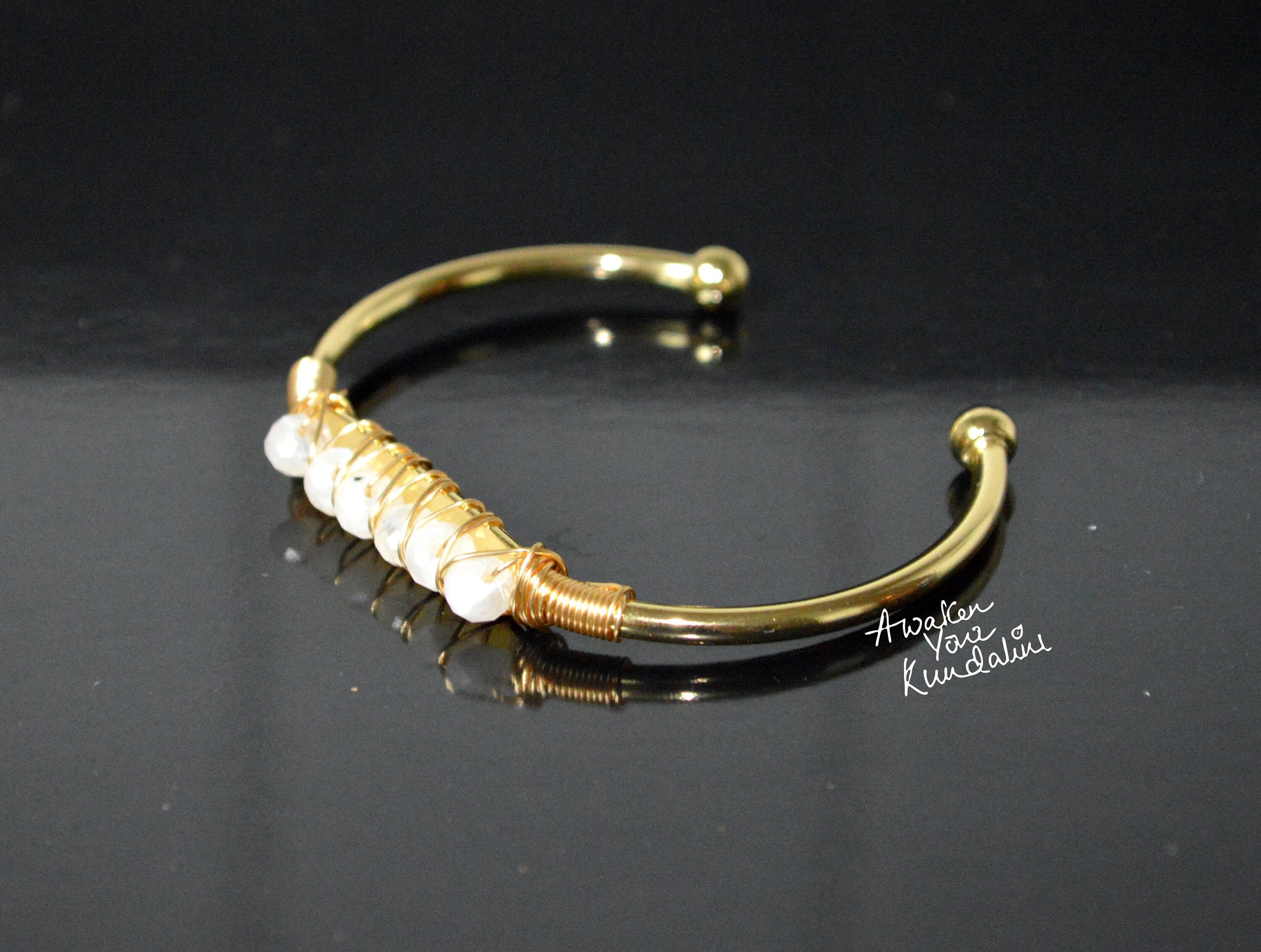 The Raw Moonstone Cuff Bracelet from the LUMA Collection by Awaken Your Kundalini is a luminous statement piece featuring a natural raw Moonstone crystal set in an elegant adjustable cuff bangle. With its iridescent glow and sacred vibration, this bracelet embodies divine light, intuition, and emotional balance.