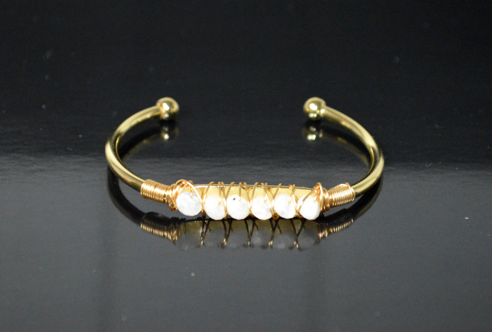 Raw Moonstone Cuff Bracelet | Adjustable Gold Plated Bangle | LUMA Collection
