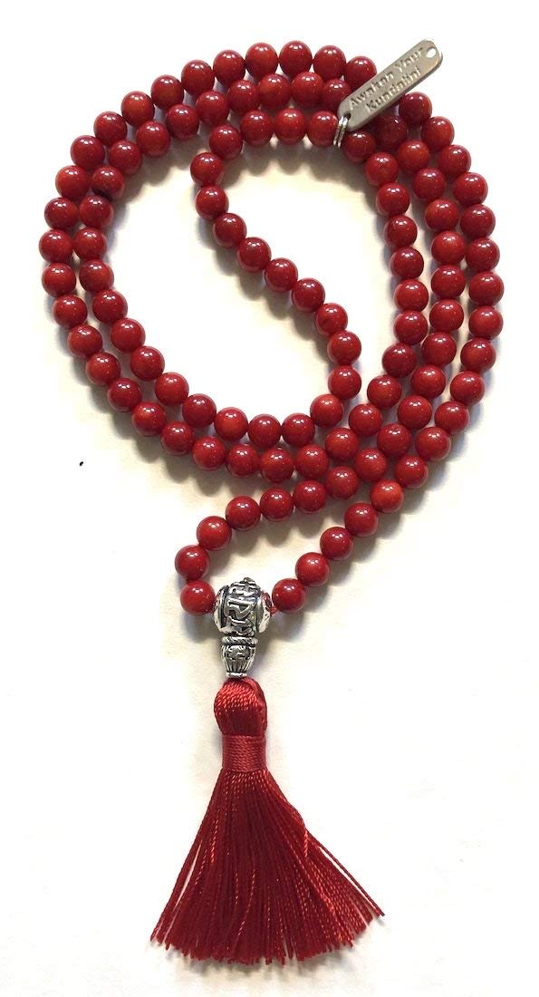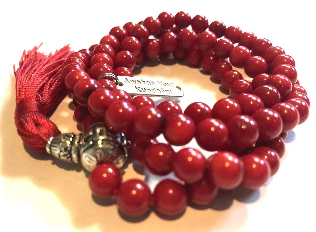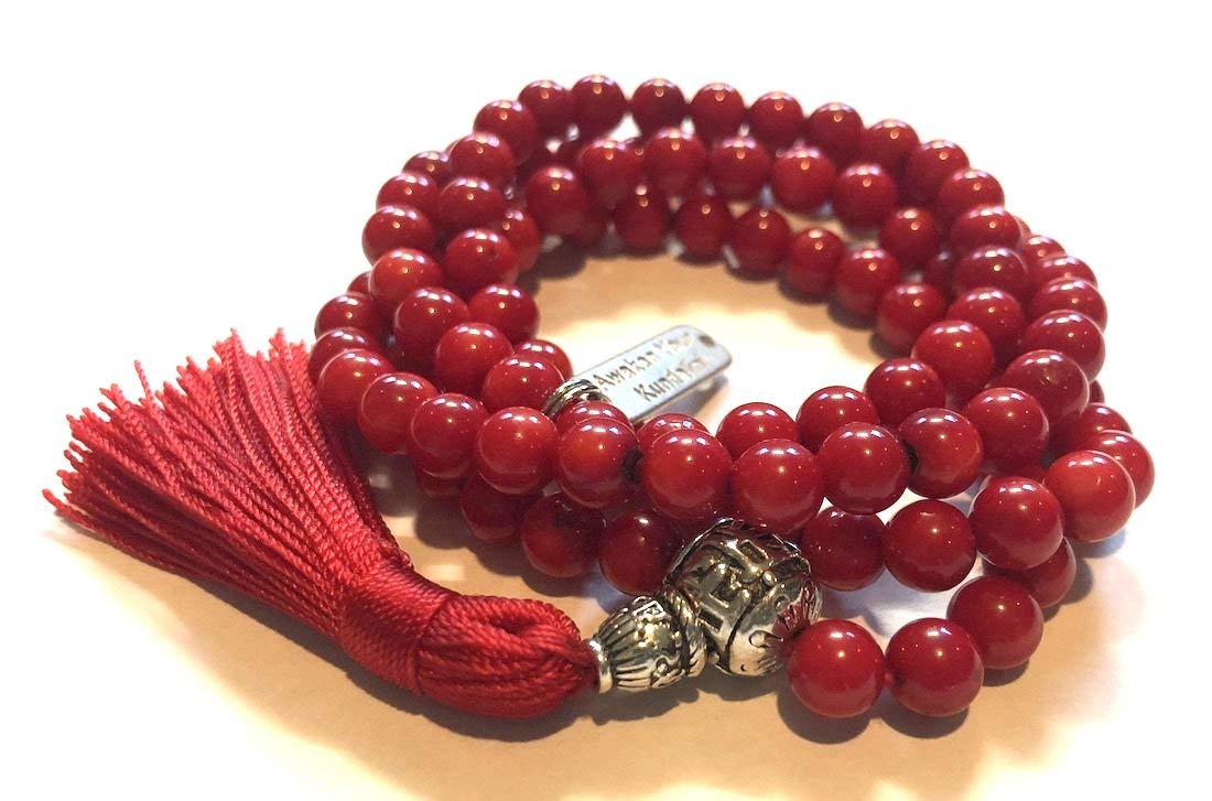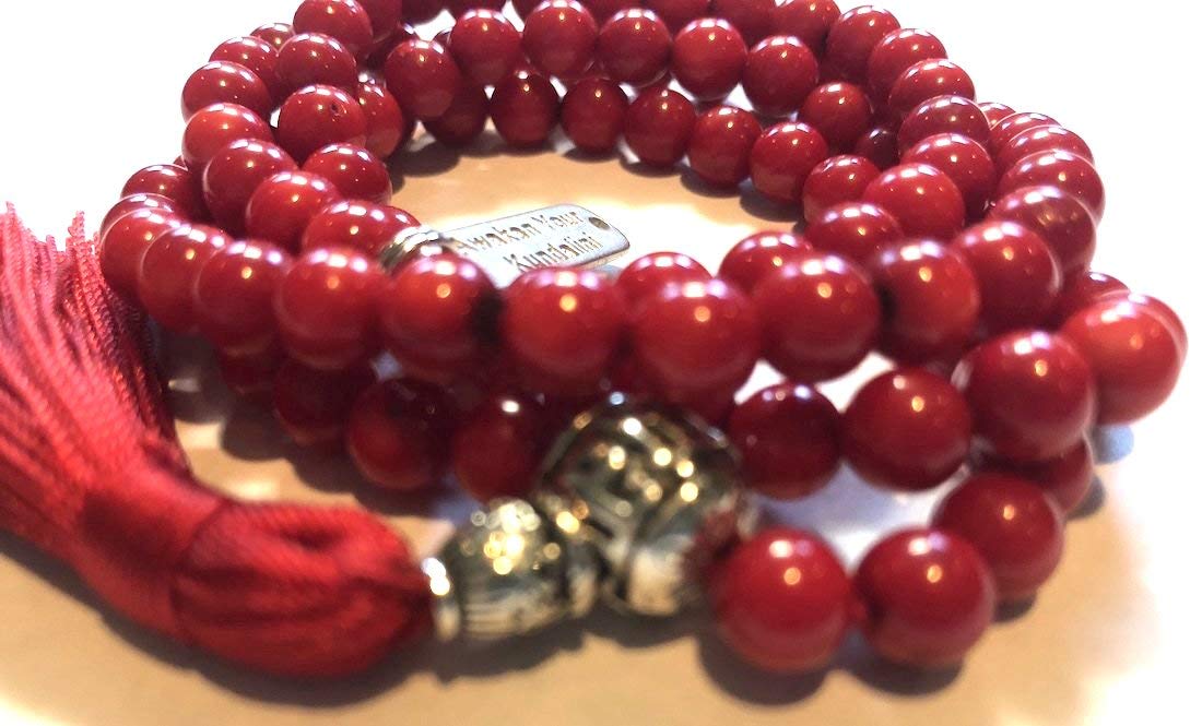Red coral prayer beads japa mala necklace 6-7mm handmade 108+1 yoga meditation beads. Buddhist karma rosary for nirvana chanting om awakening chakra kundalini - w/Velvet Pouch
