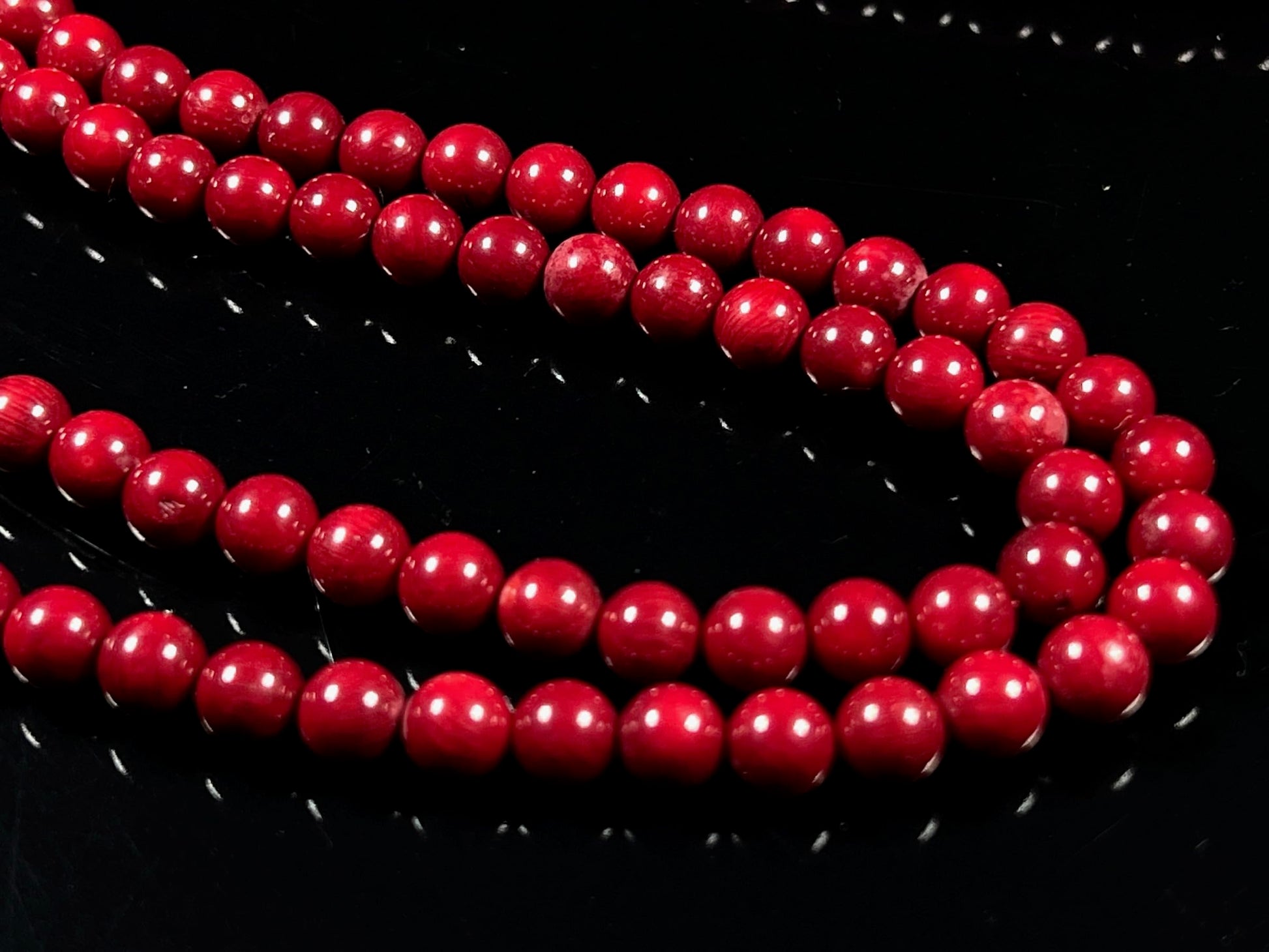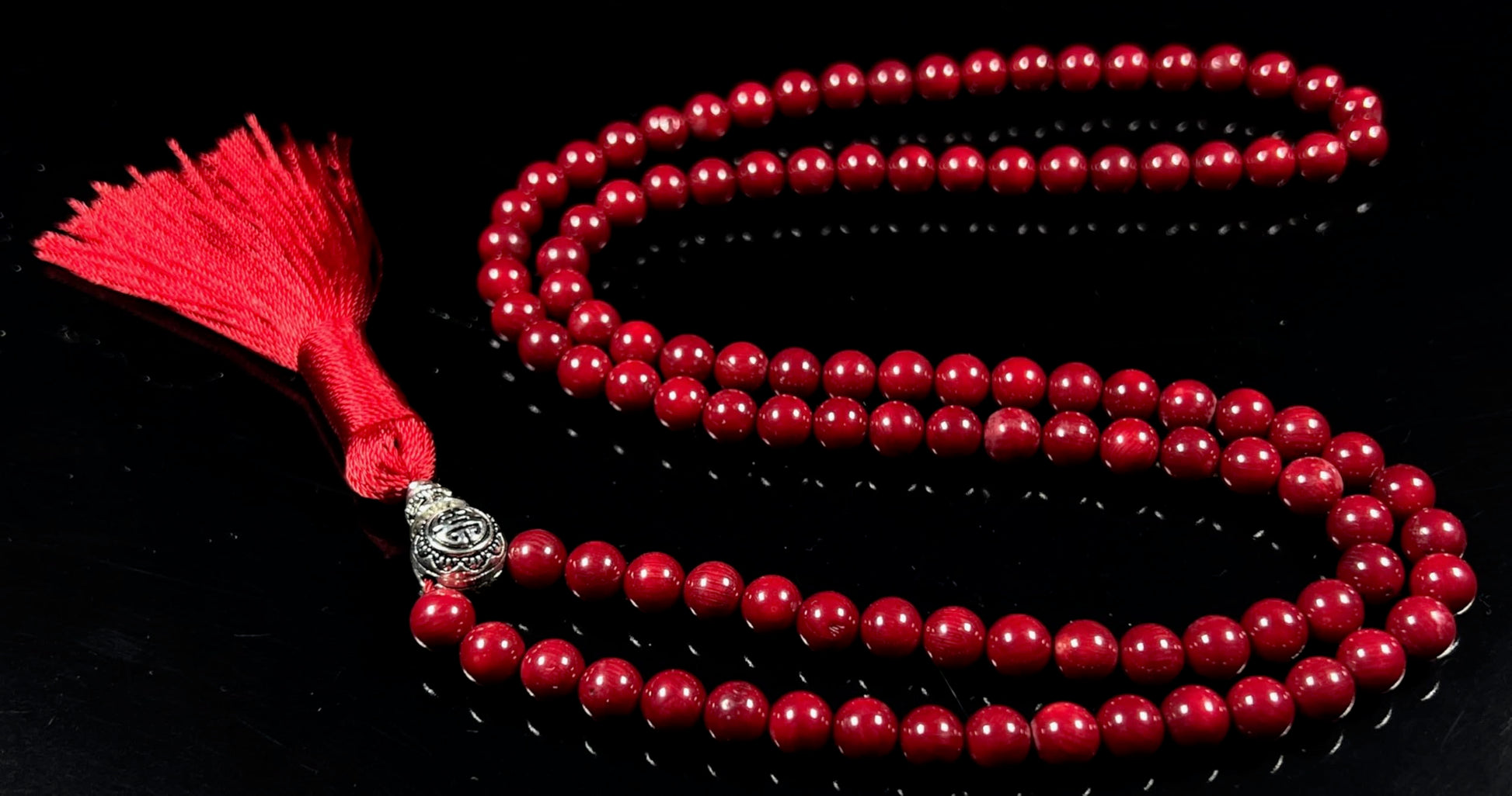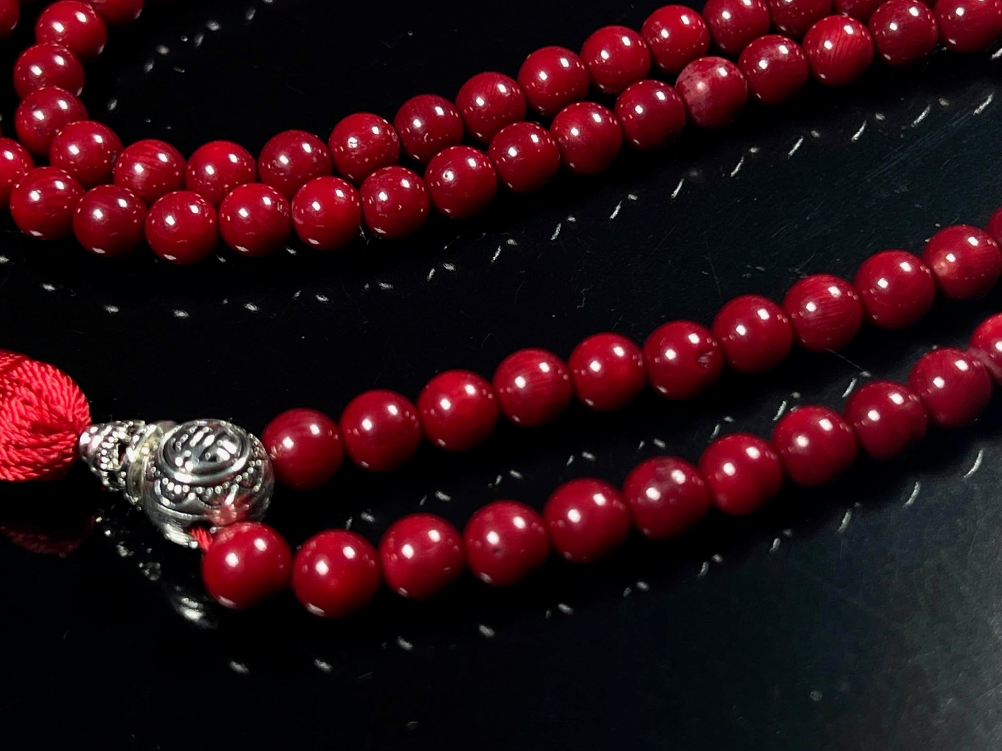 Red coral prayer beads japa mala necklace 6-7mm handmade 108+1 yoga meditation beads. Buddhist karma rosary for nirvana chanting om awakening chakra kundalini - w/Velvet Pouch