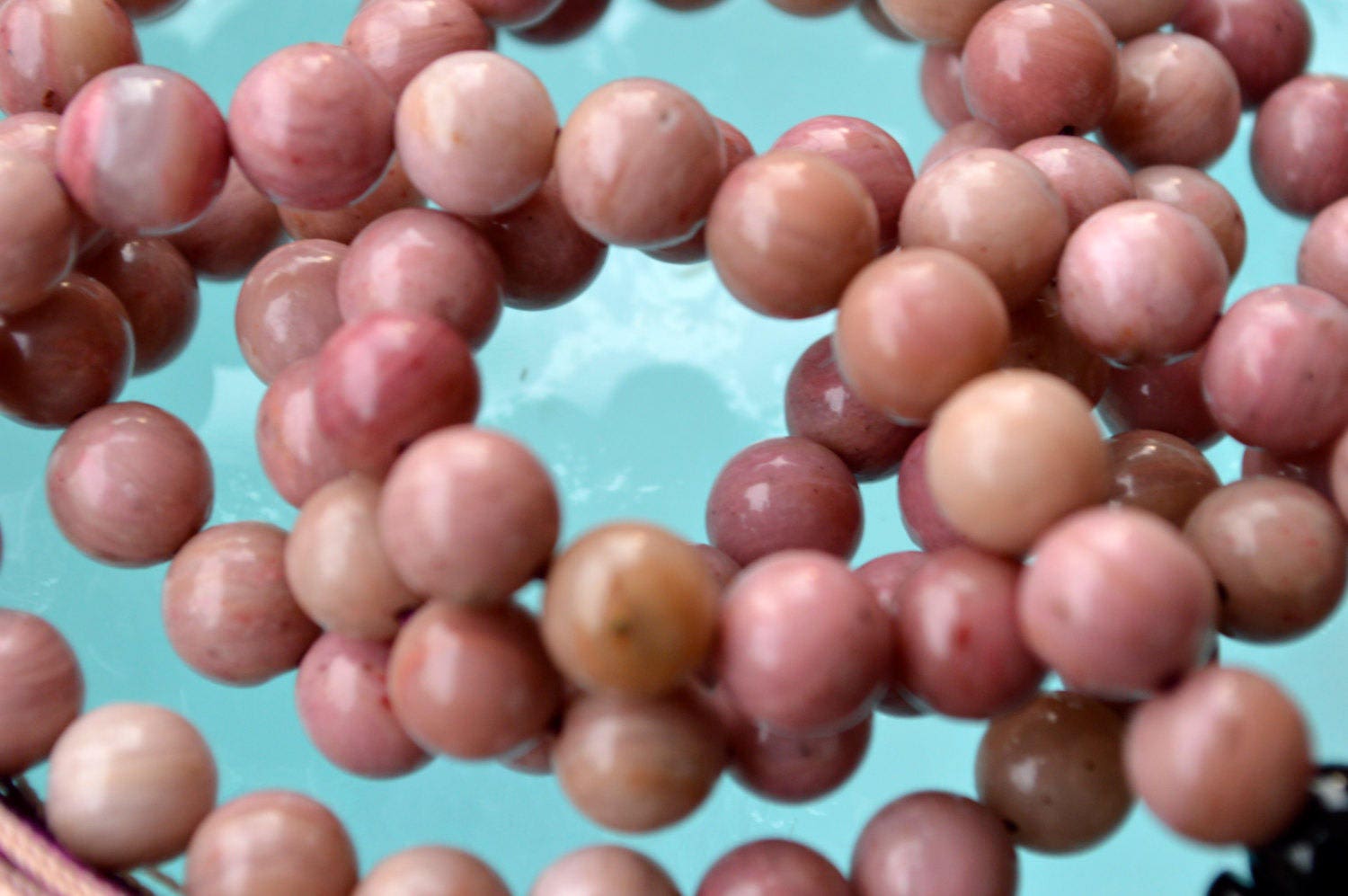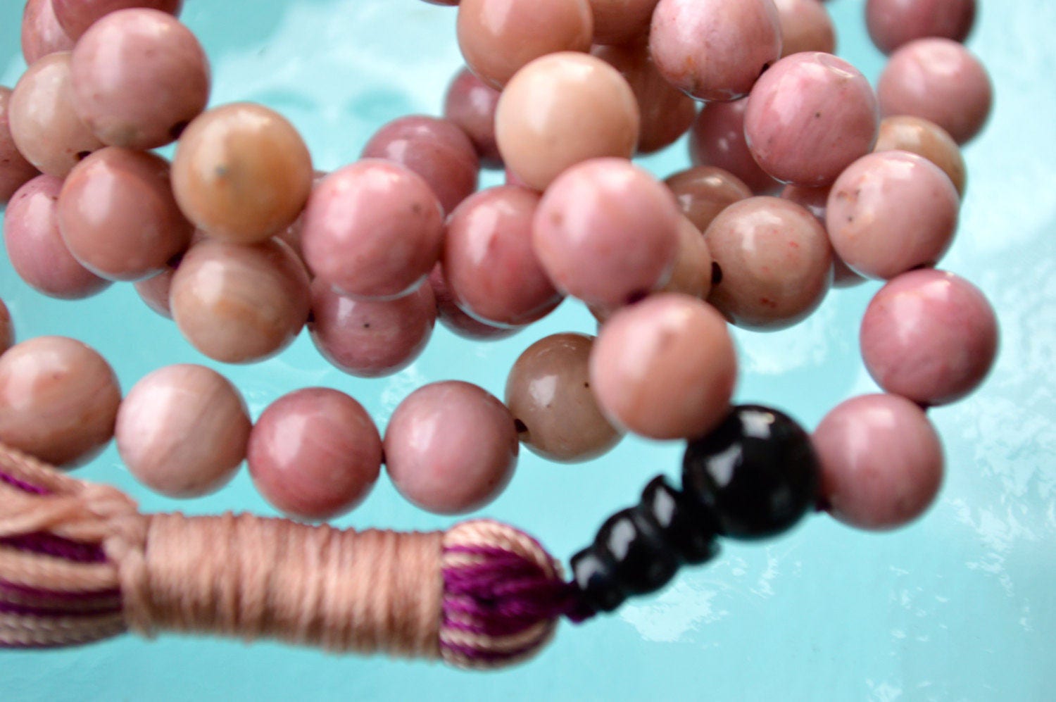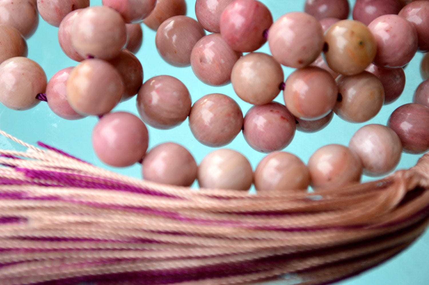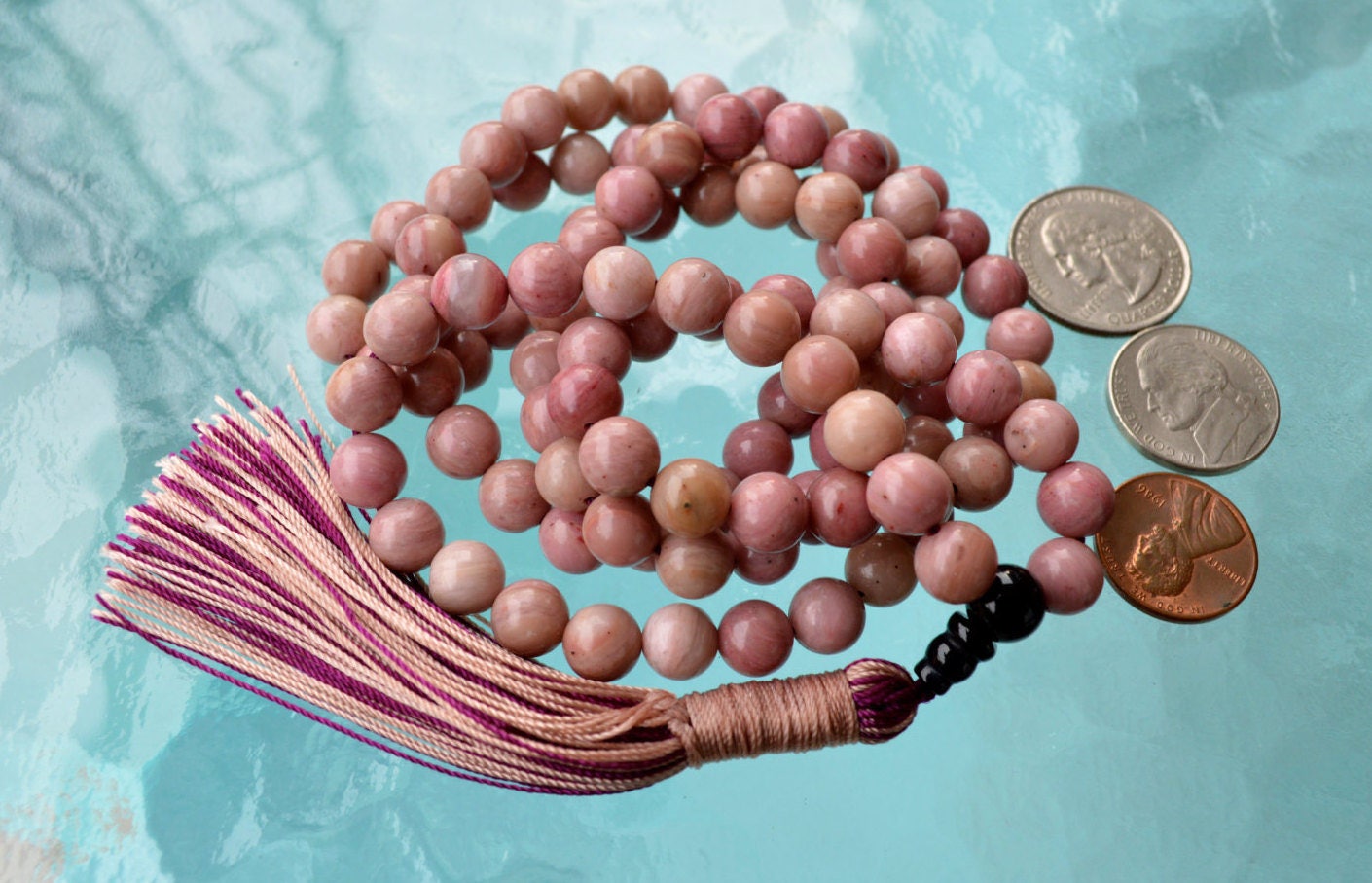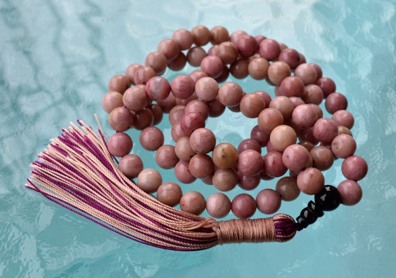 Awaken Your Kundalini RAREST FORM OF RHODONITE PRAYER (108+1) 8 MM BEADS JAAP JAPA MALA ROSARY FOR POSITIVE ENERGY, HEALING, REMOVING INNER DOSHAS, CHANTING AUM OM, NIRVANA, BHAKTI, AWAKENING OF CHAKRAS KUNDALINI THROUGH YOGA MEDITATION-ONLY TWO MALAS AVAILABLE