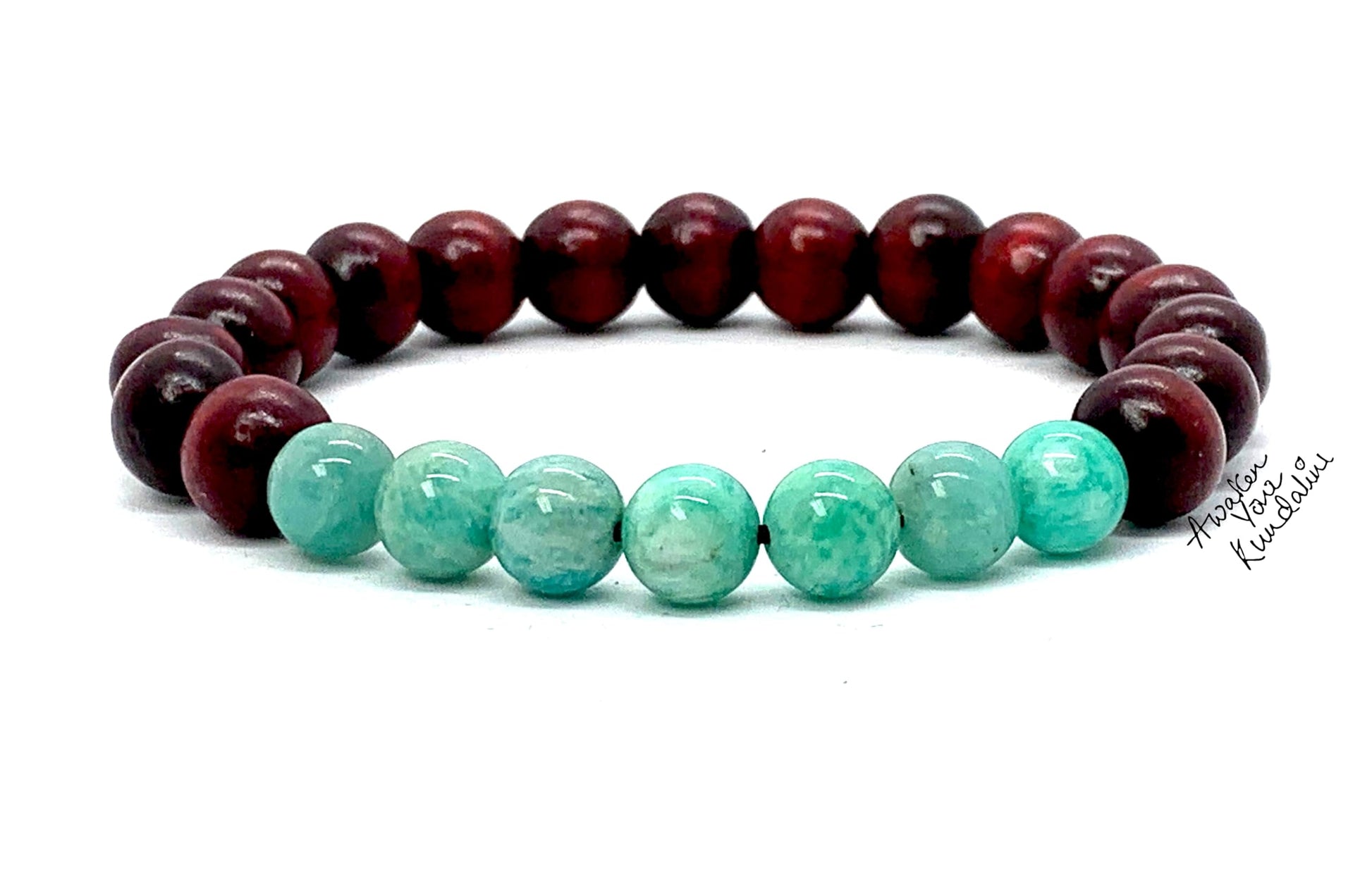 The Rosewood & Amazonite Stretch Bracelet from the ARANYA Collection by Awaken Your Kundalini blends the grounding and devotional energy of Rosewood with the soothing, truth-centered vibration of Amazonite. Together, they create a bracelet designed for peace, balance, and alignment of the heart and spirit.