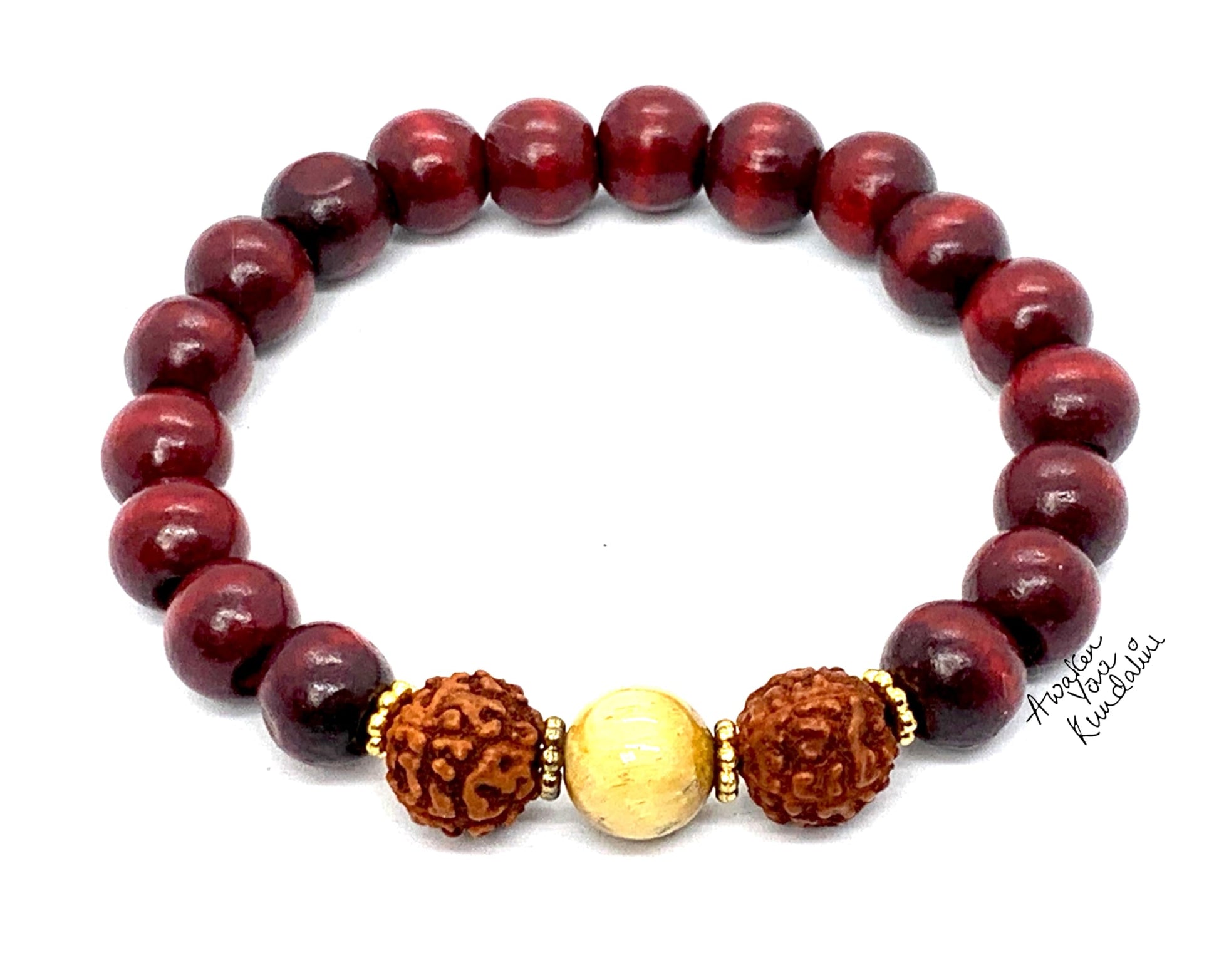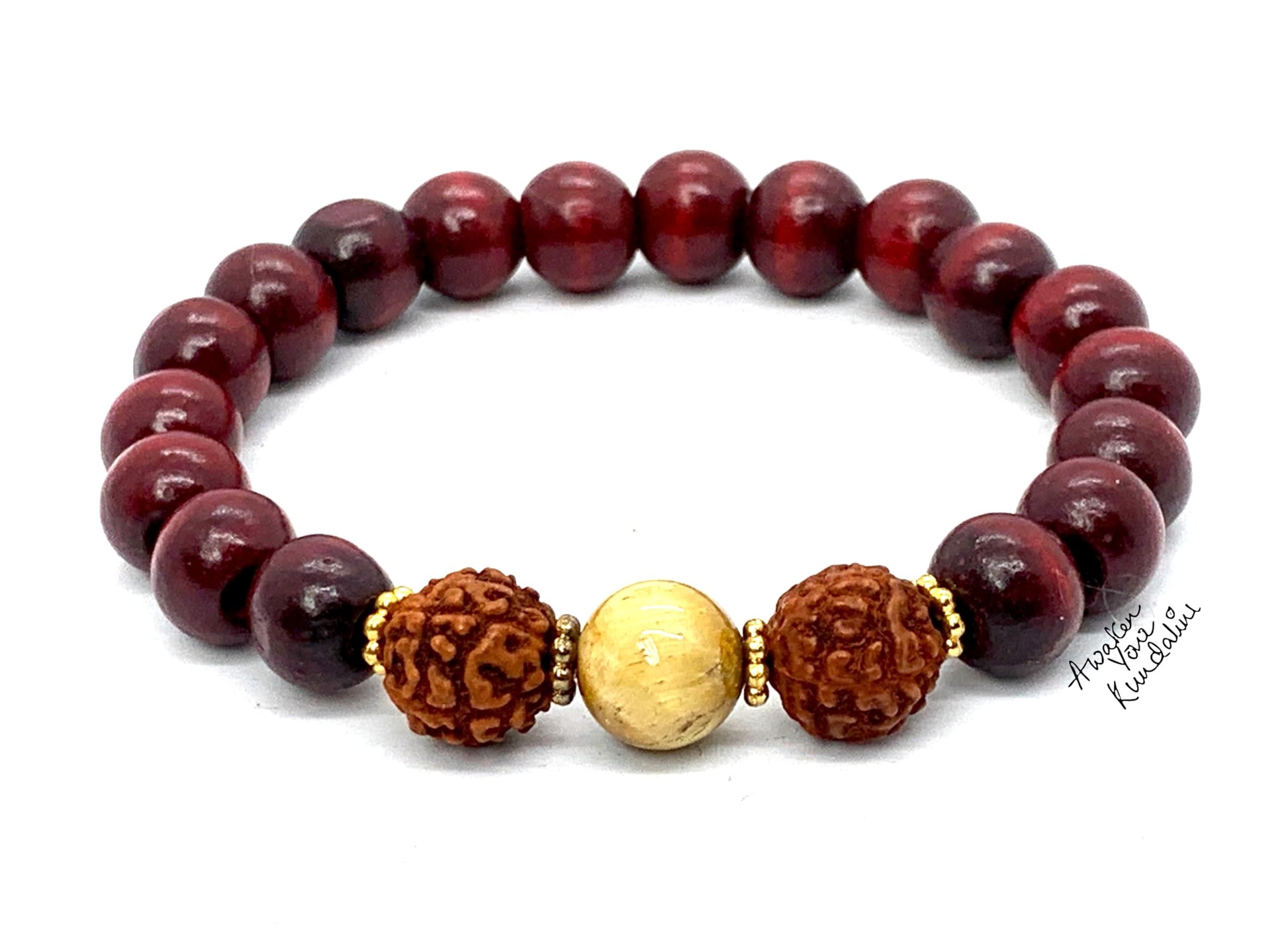 The Rosewood with Tiger’s Eye & Rudraksha Bracelet from the ARANYA Collection by Awaken Your Kundalini is a powerful blend of grounding, courage, and spiritual protection. Crafted with natural Rosewood beads, radiant Tiger’s Eye, and authentic 5 Mukhi Rudraksha, this bracelet channels the combined strength of forest, stone, and sacred seed.