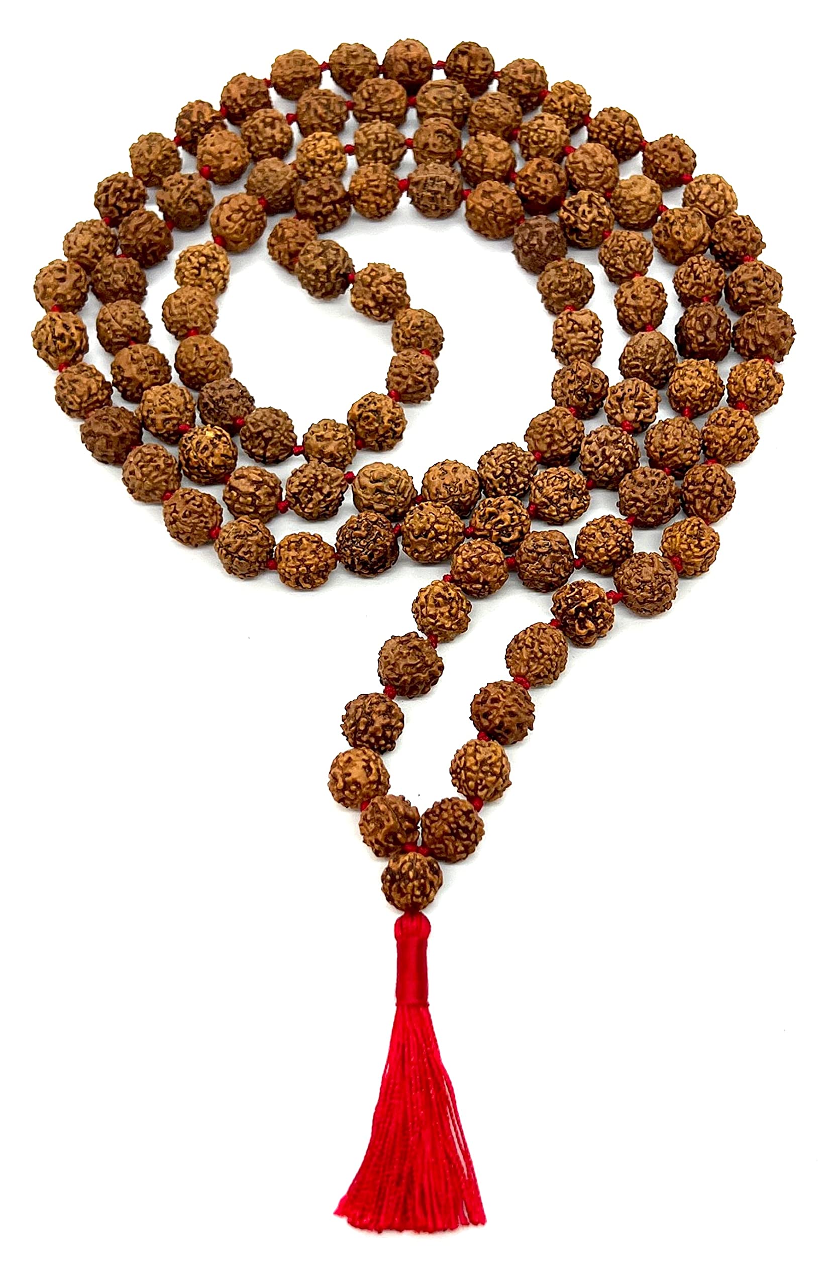 - Product Details: Material: Natural 5 Mukhi Rudraksha. Bead Size: 10mm. Length: Standard Mala Length. Birthstone: July. Astrological Sign: Leo. Chakra Association: Heart Chakra. Design: Hand Knotted Mala Necklace.