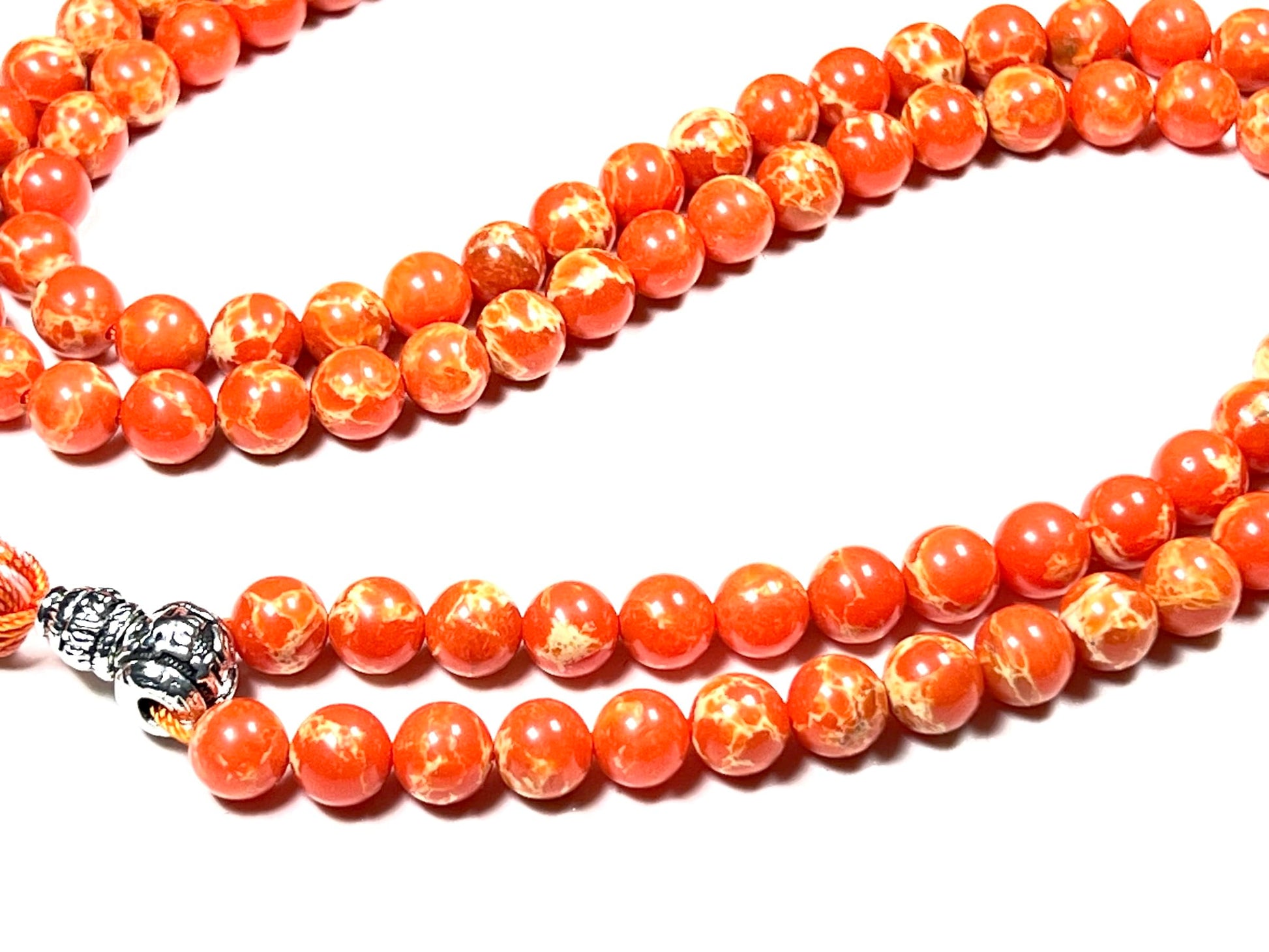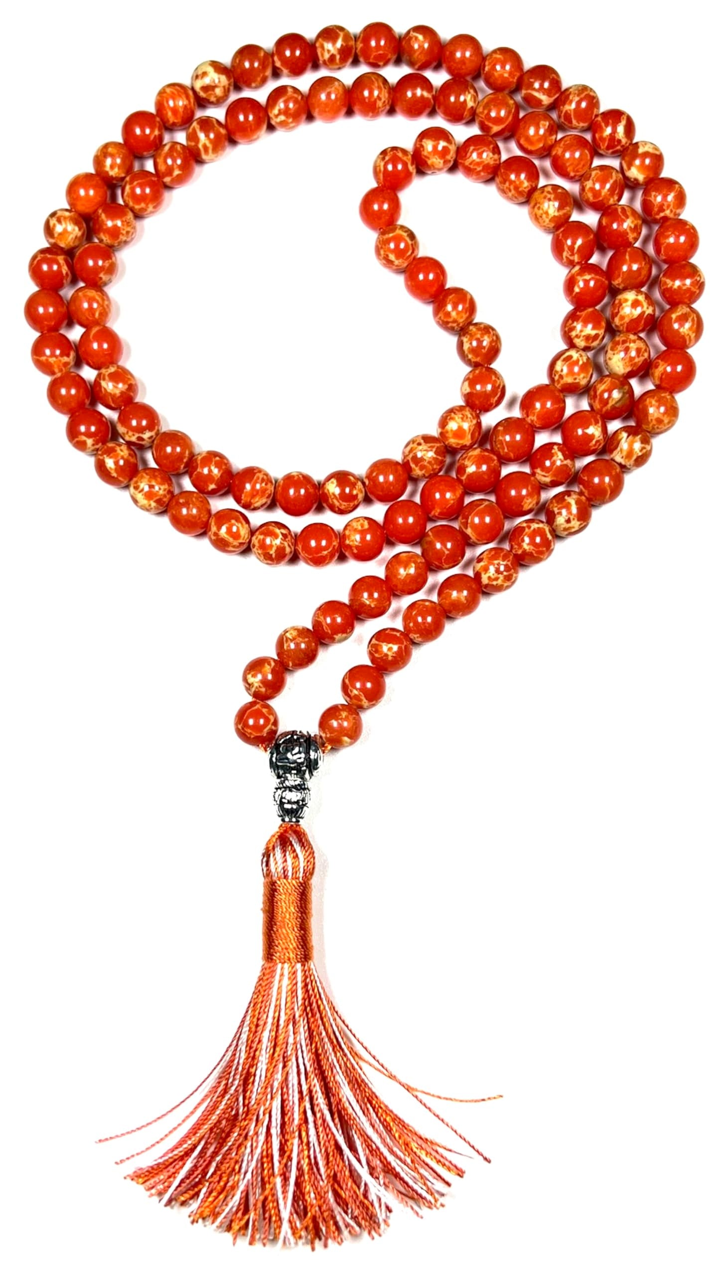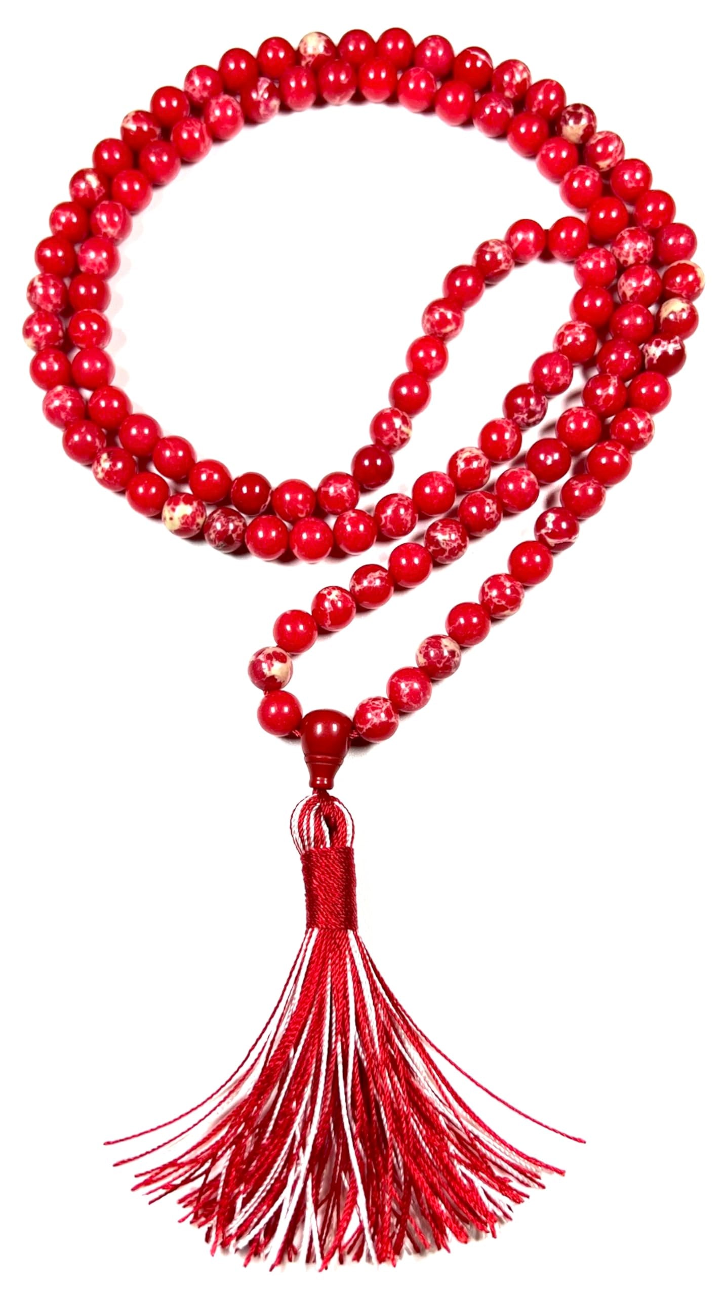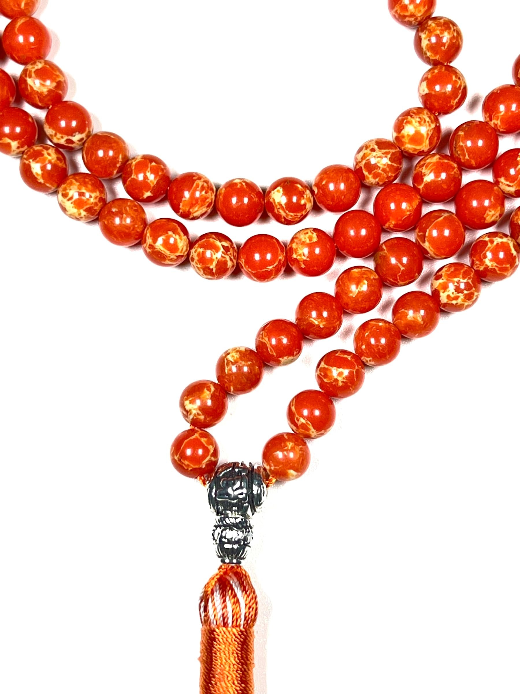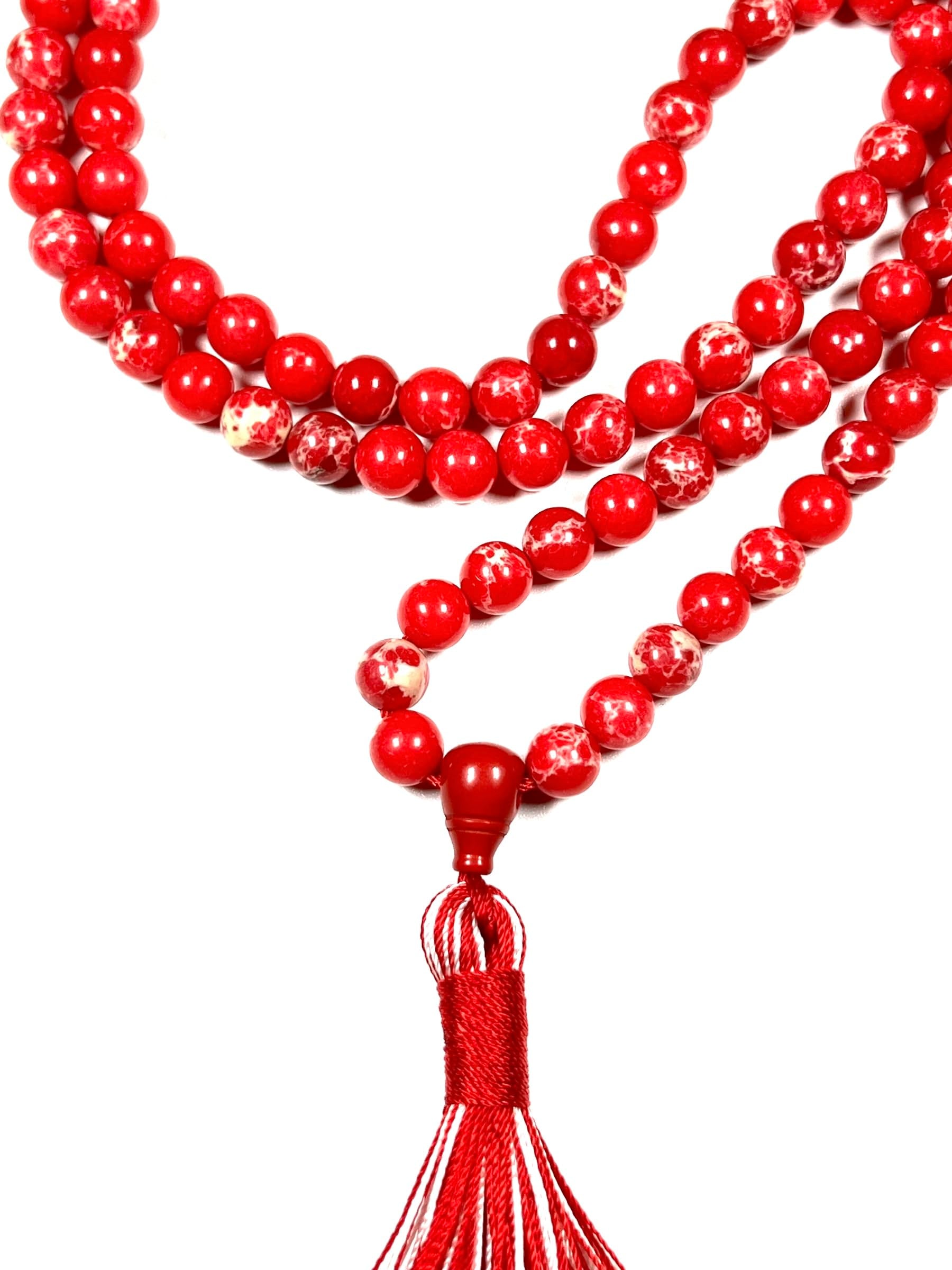 The Tide & Stone Mala Necklace by Awaken Your Kundalini AYK is a strand of 108 hand knotted 8mm Sea Sediment Jasper gemstones created as both a spiritual mala and a luxury necklace