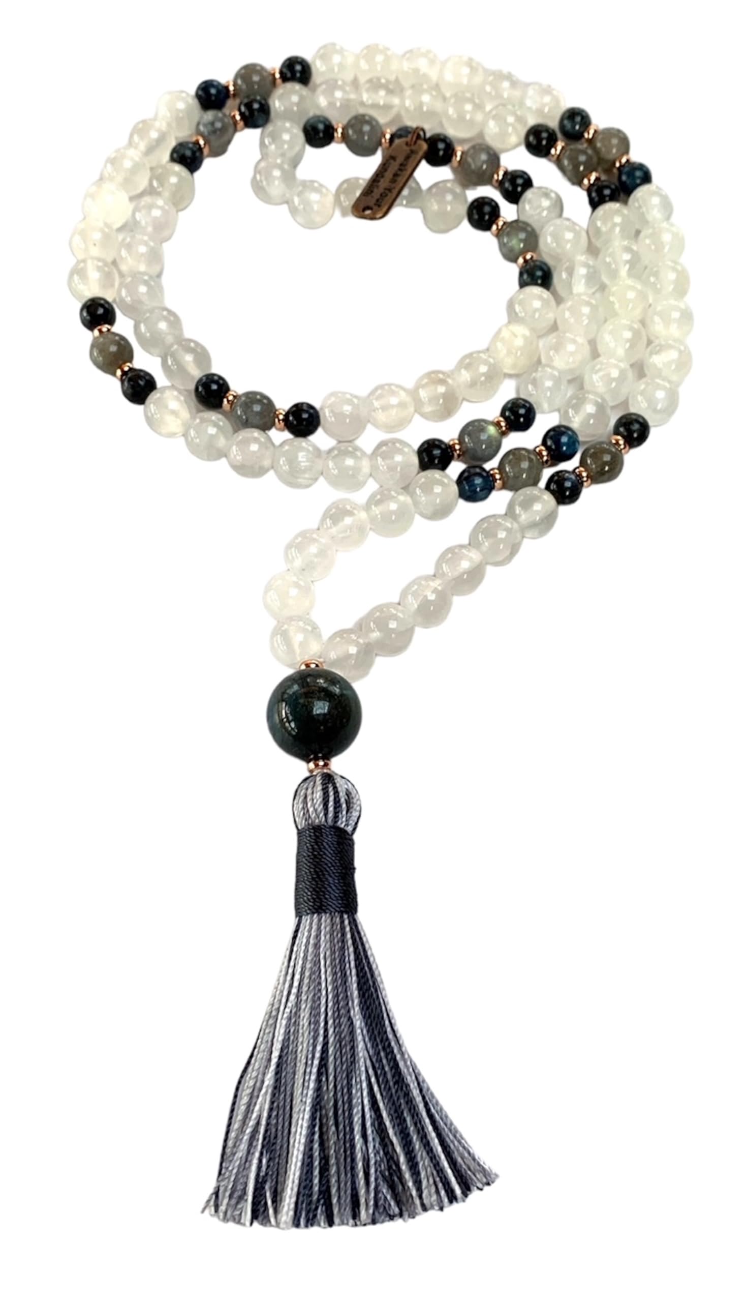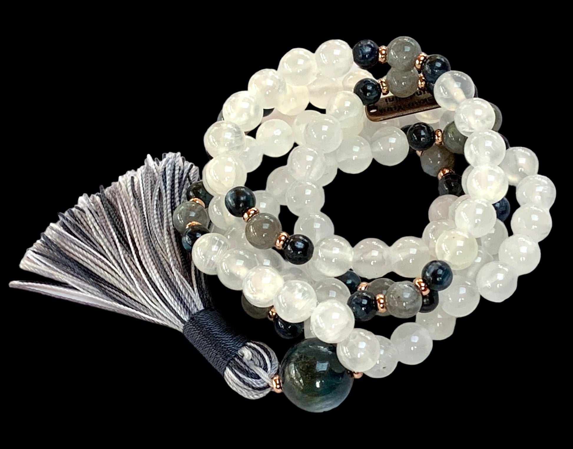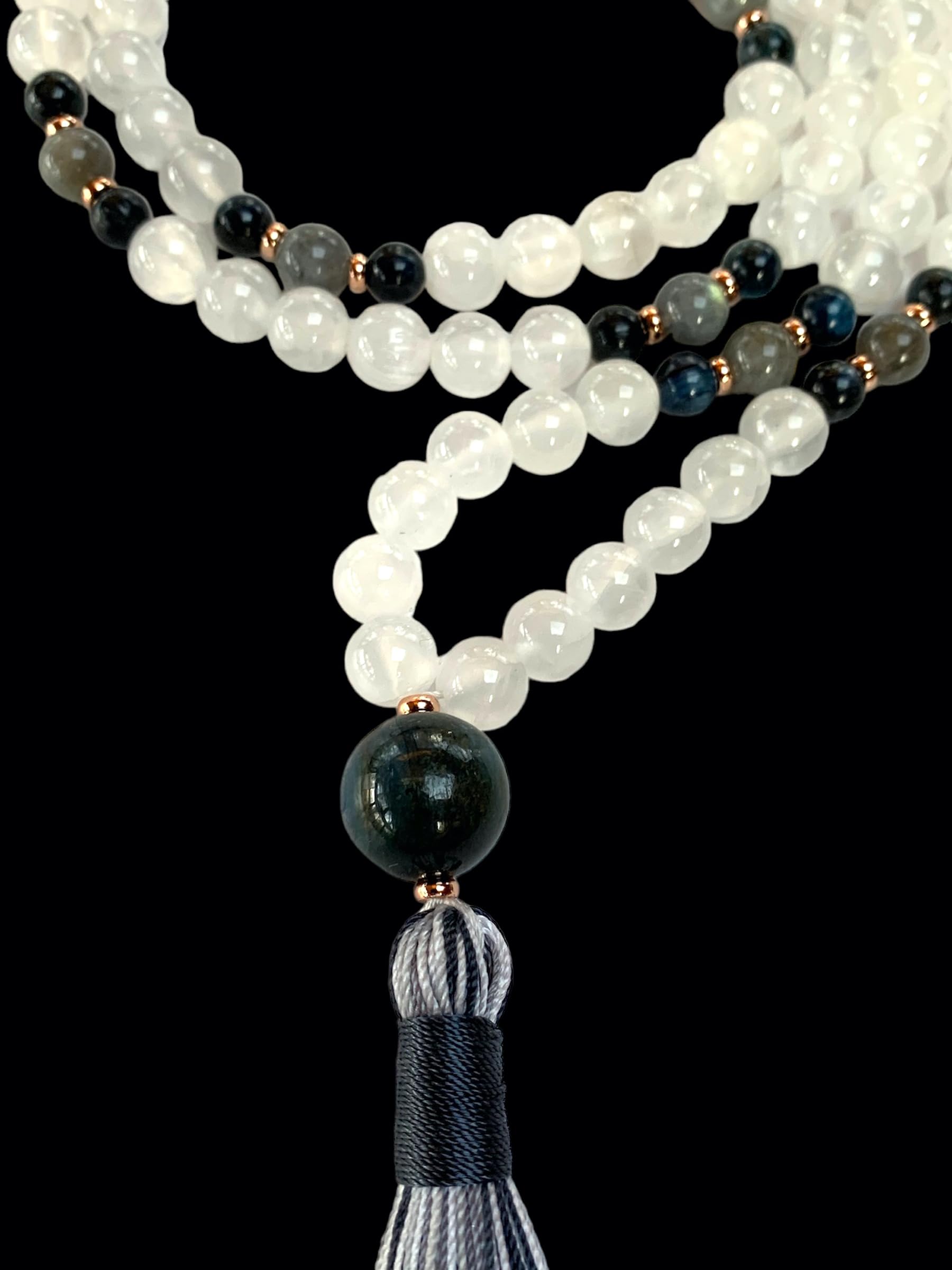 Selenite, Blue Kyanite & Labradorite Mala Necklace | 108 Beads | SHASHI & ALIGN Collection