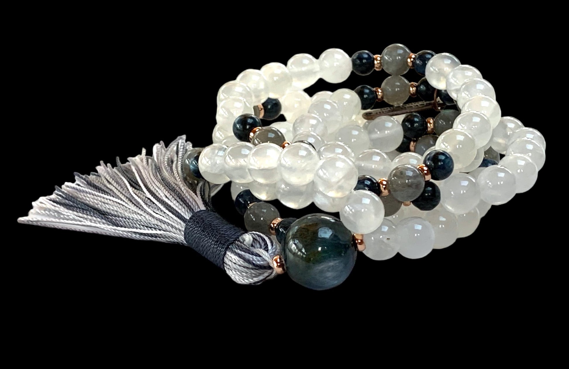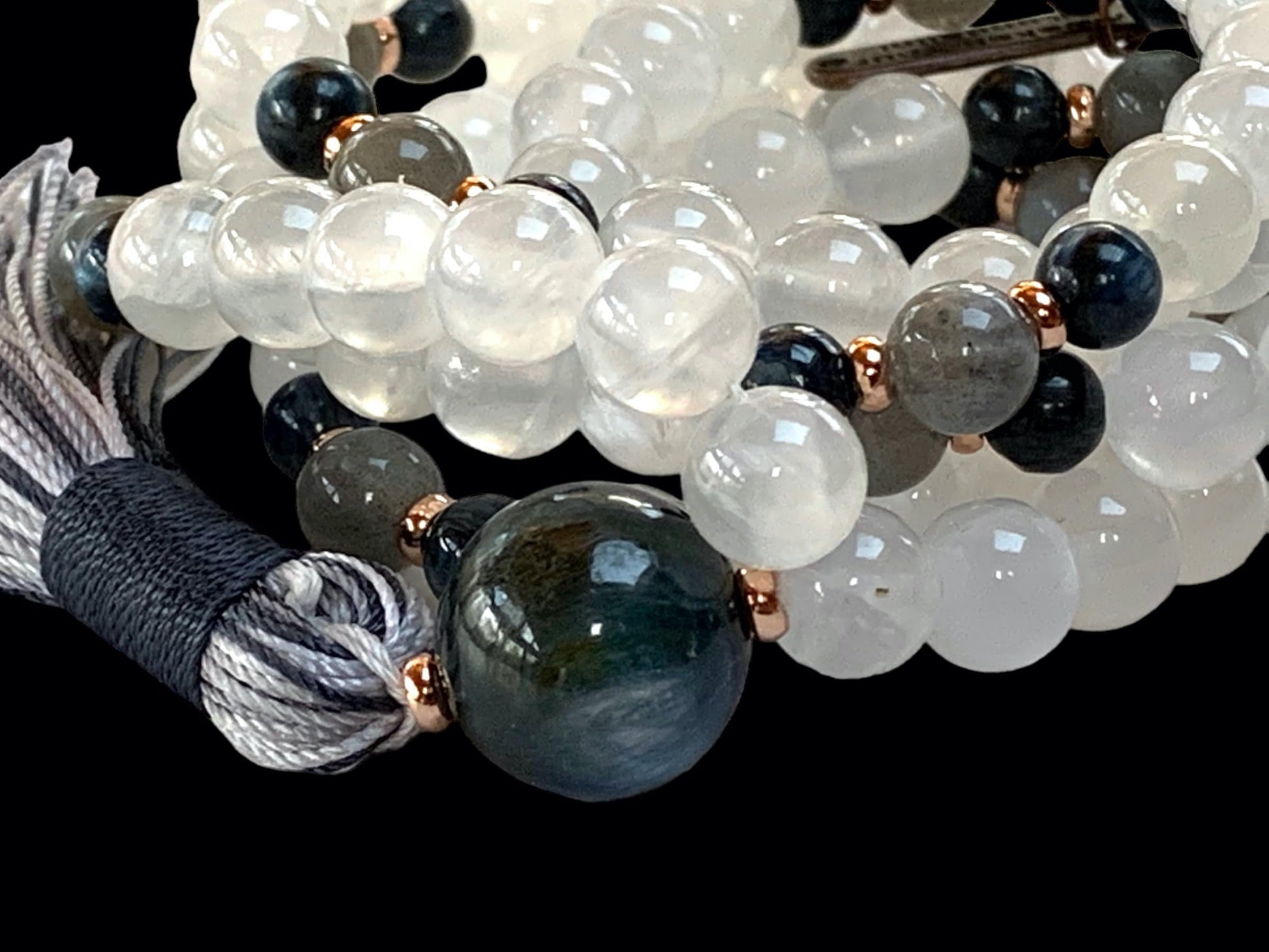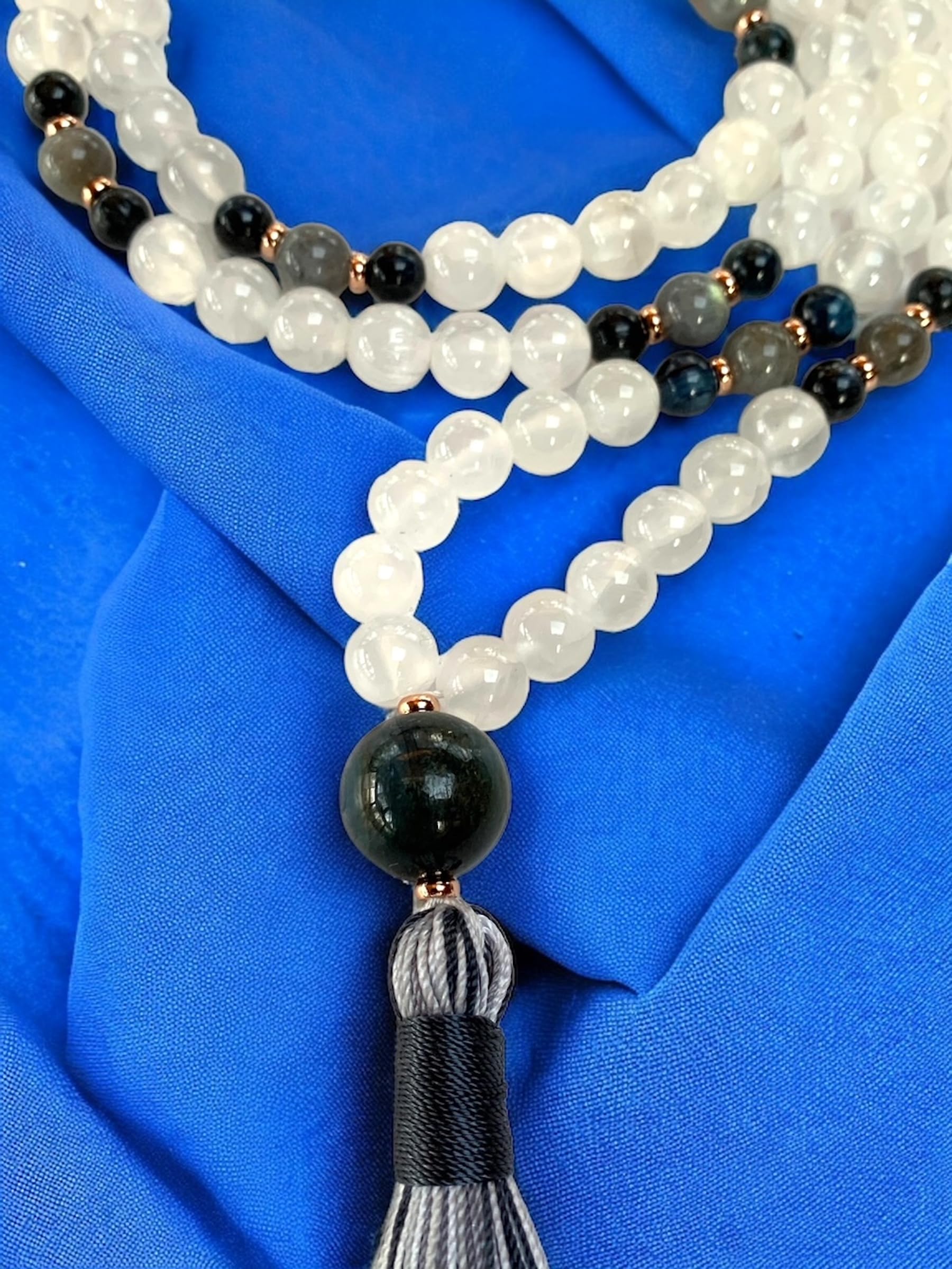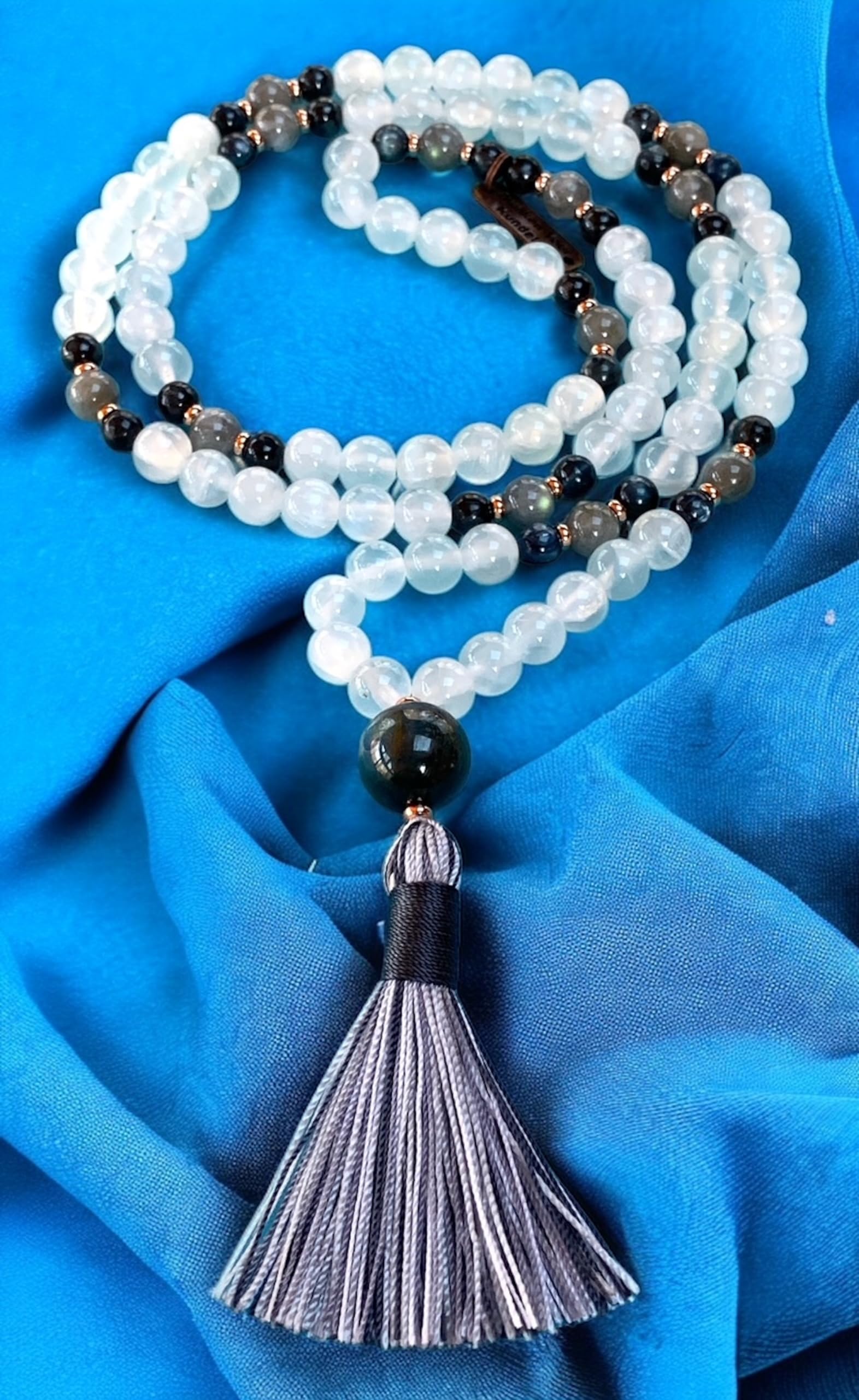 Selenite, Blue Kyanite & Labradorite Mala Necklace | 108 Beads | SHASHI & ALIGN Collection
