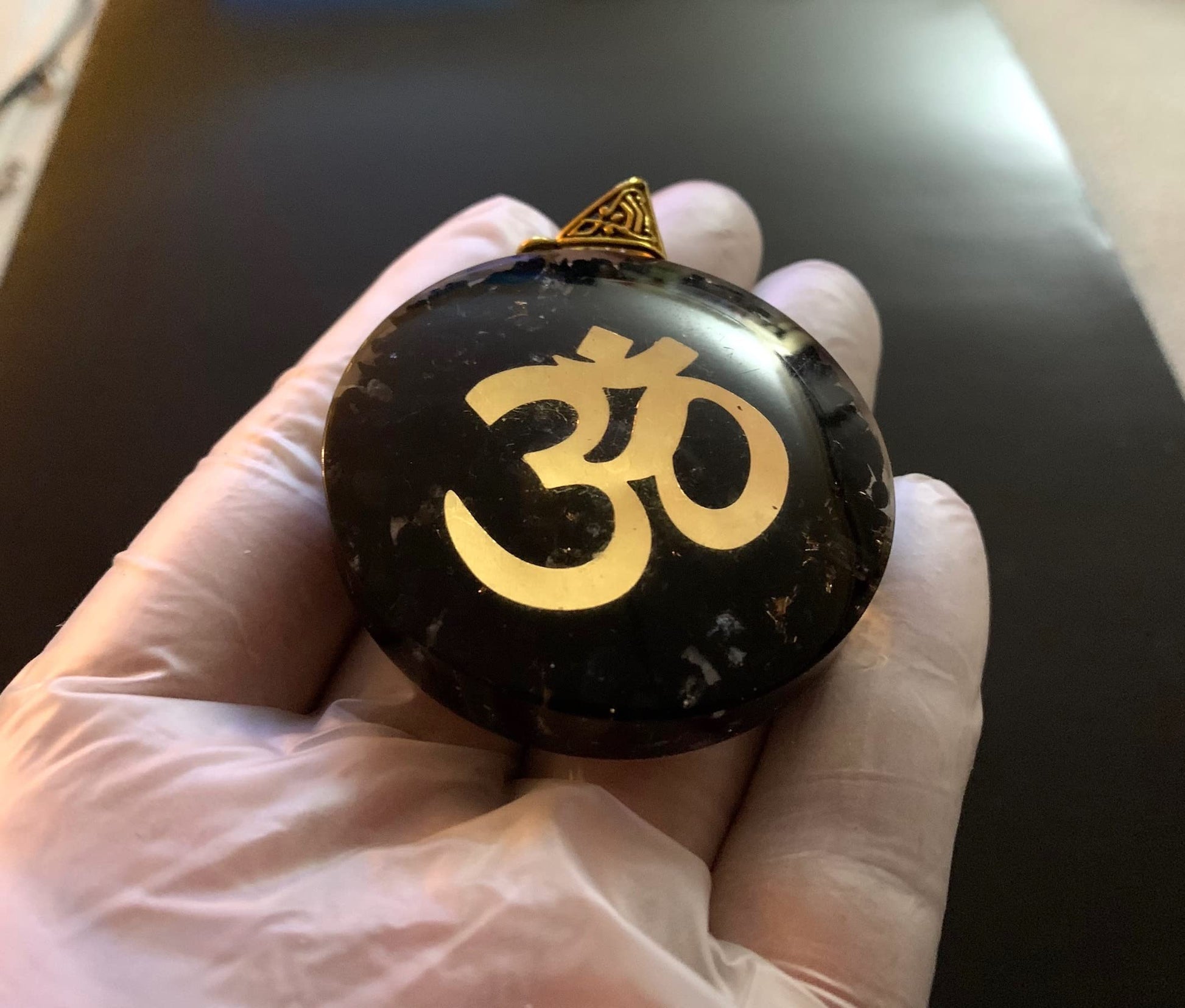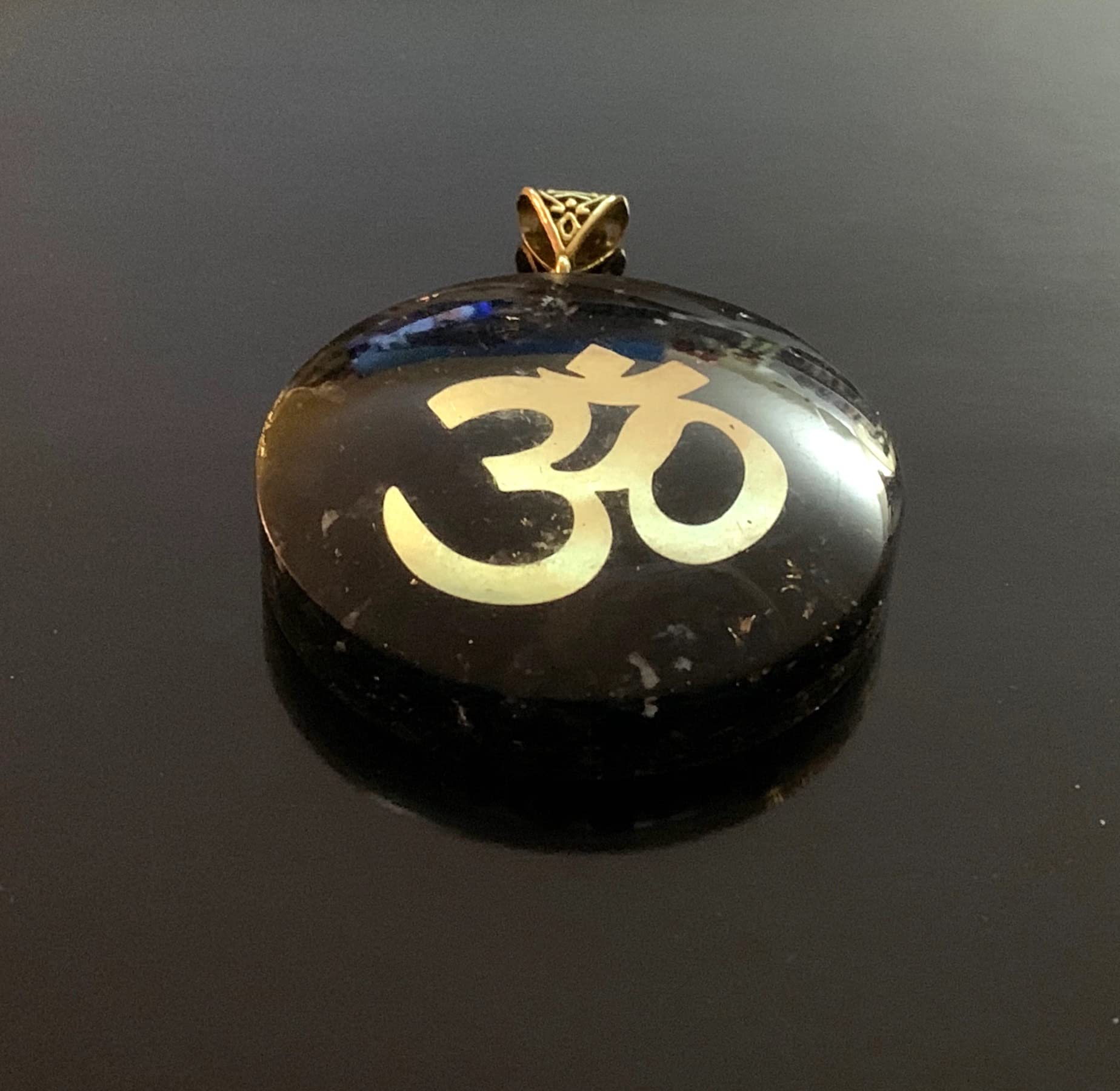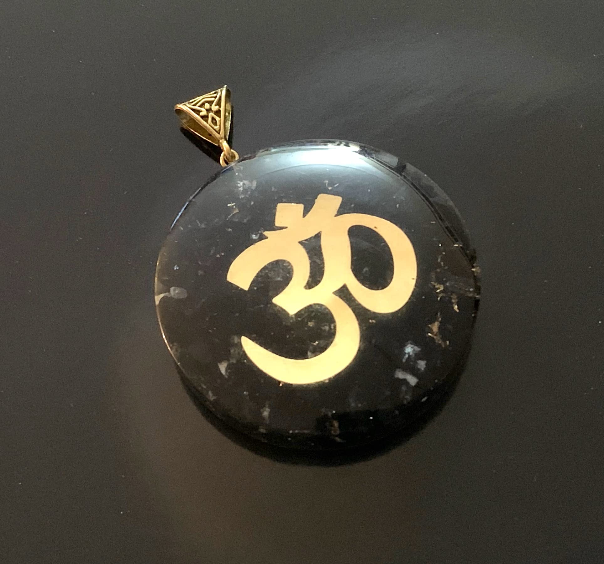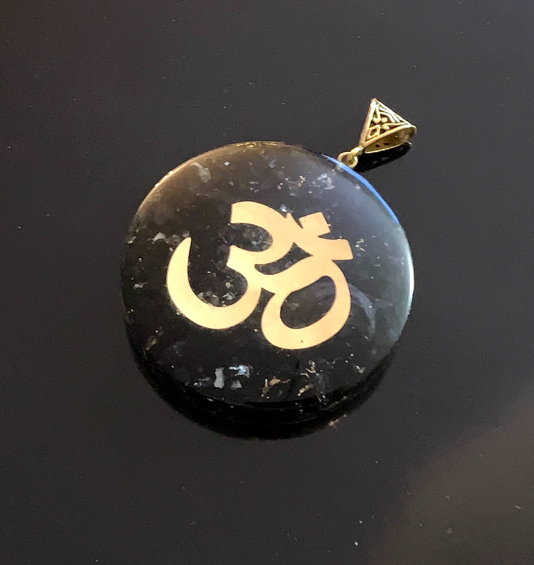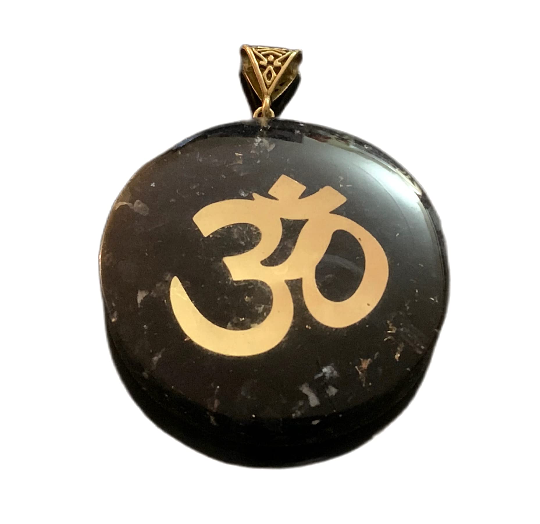 - This isn't just a necklace, it's an energetic shield! Handcrafted Shungite Pendant: Each piece unique, radiating natural beauty. Powerful Om Symbol: Promotes balance, harmony, and manifestation. Grounding Orgone Energy: Enhances vitality and protection. Approx. 2 Inch Diameter: A striking statement piece.