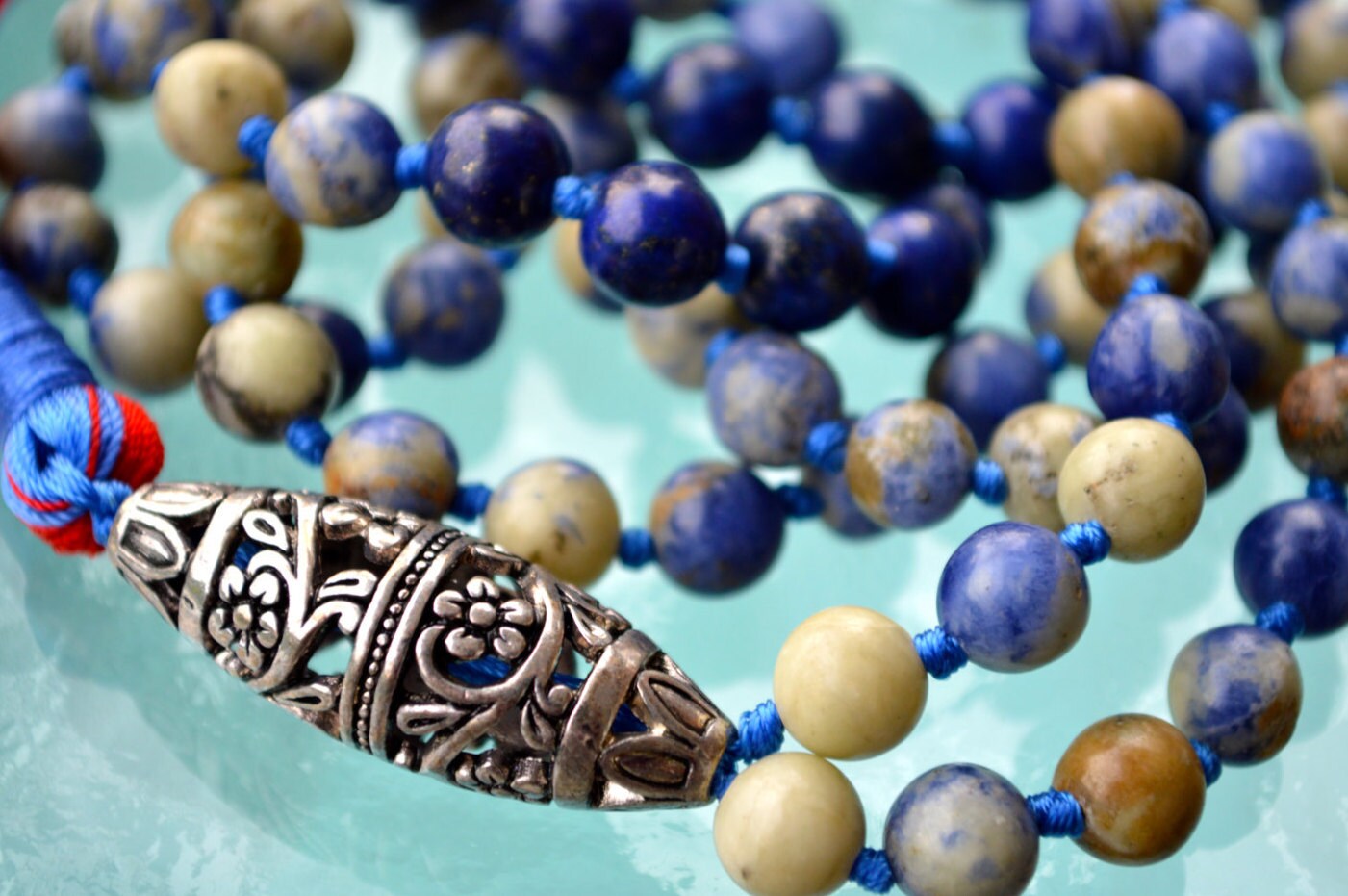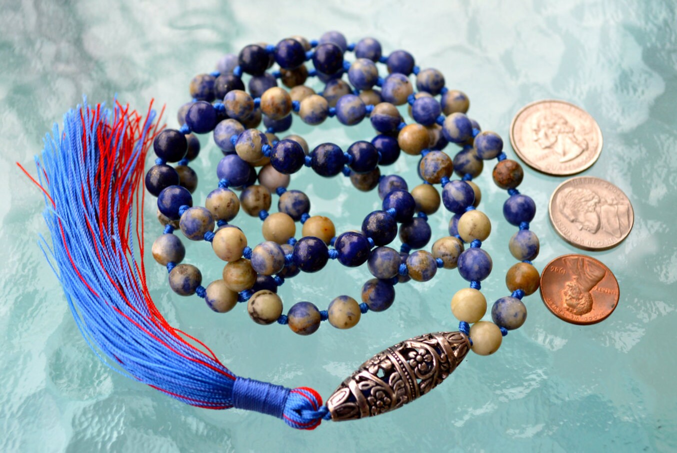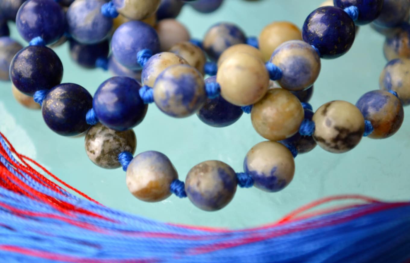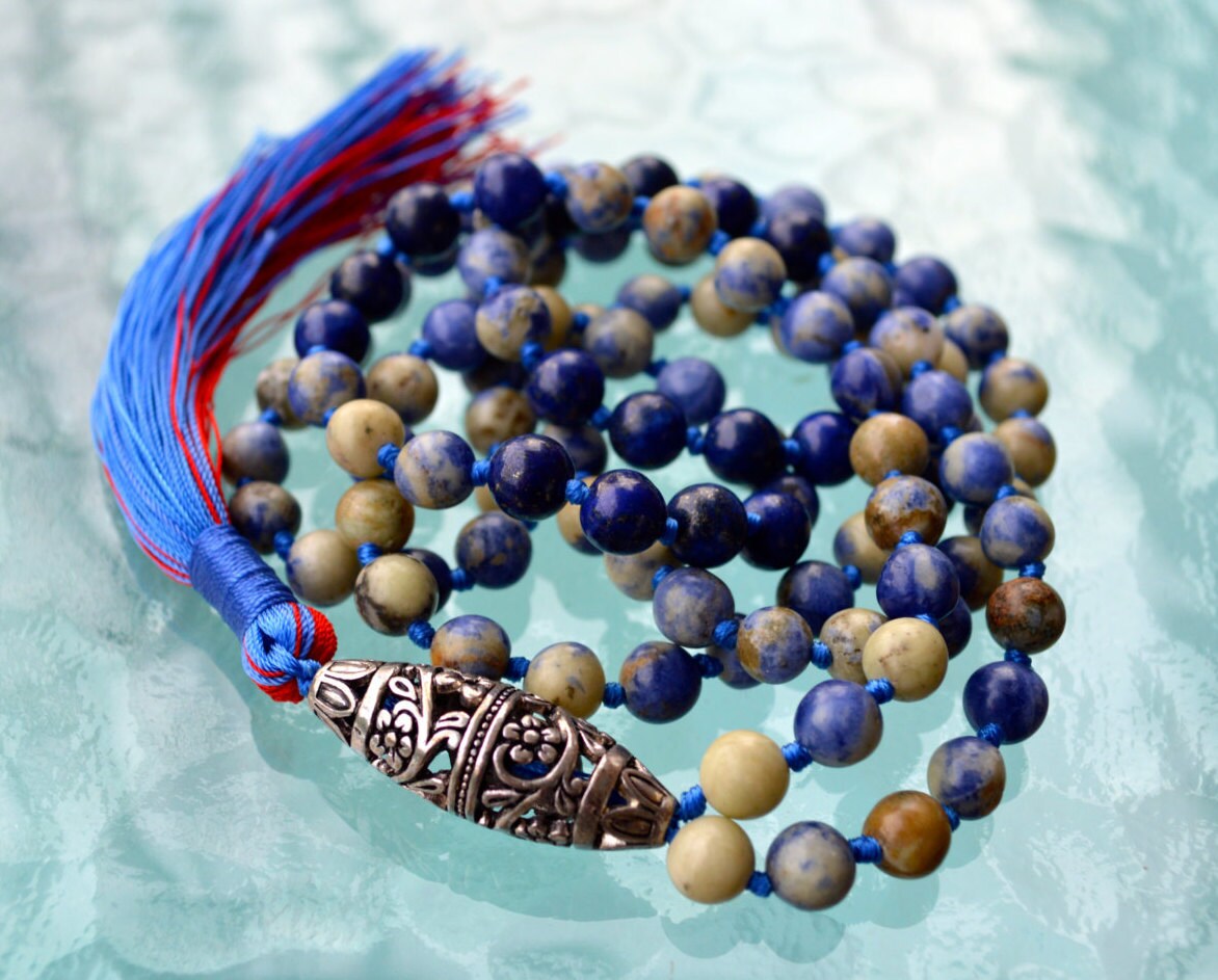 Sodalite 108 Hand Knotted Mala Buddhist Beads Necklace - Energized Karma Nirvana Meditation 8mm Prayer Beads For Awakening Chakra Kundalini
