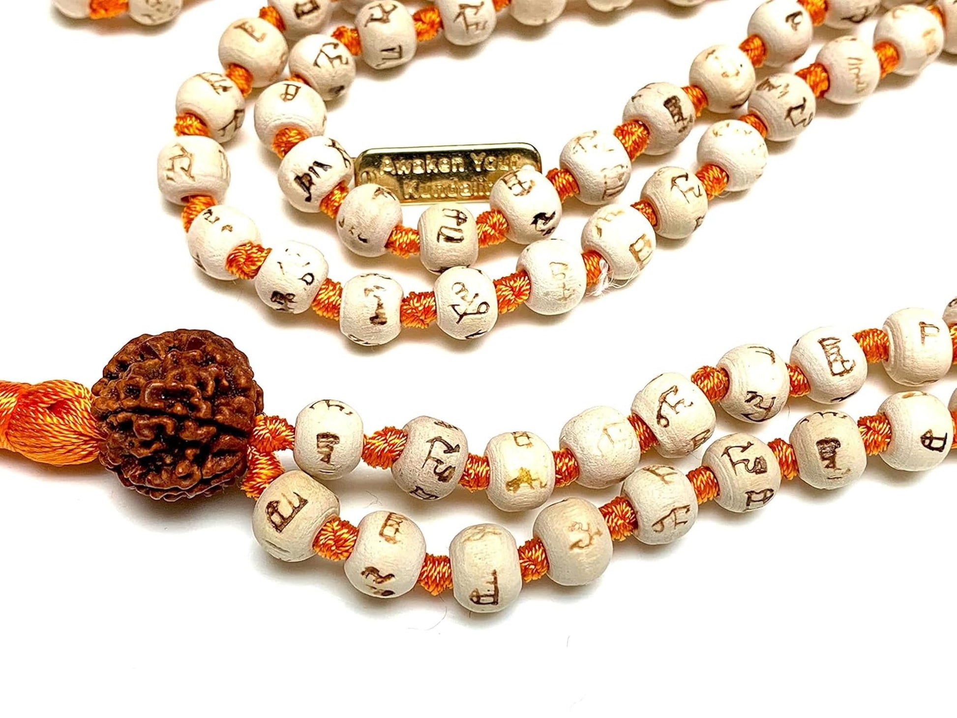 Spiritual Harmony Tulsi Mala Necklace with Rudraksha Guru Bead - Cancer Sun Sign - Heart & Sacral Chakra Balance - Orange
