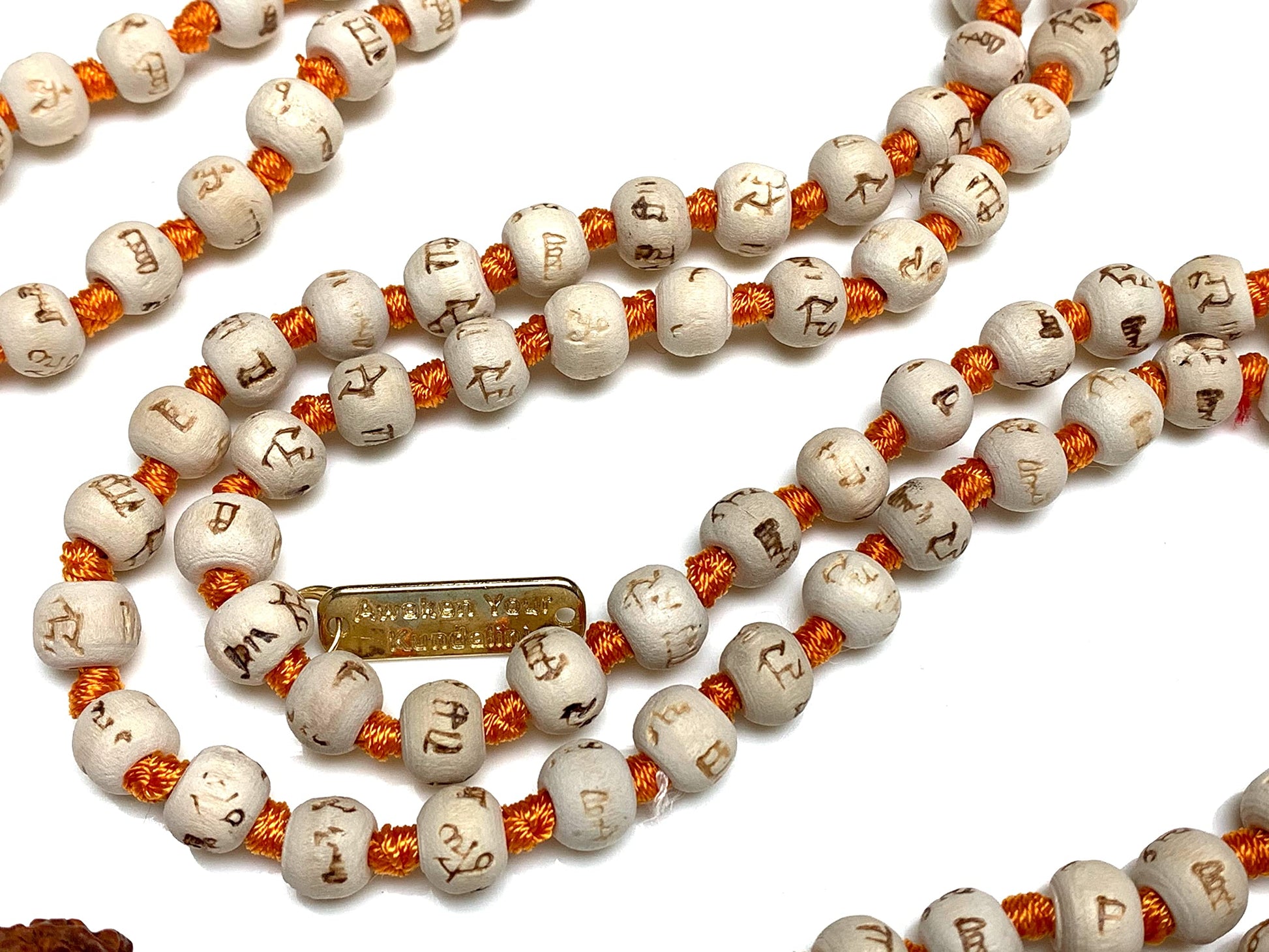 Spiritual Harmony Tulsi Mala Necklace with Rudraksha Guru Bead - Cancerian Birthstone - Heart & Sacral Chakra Balance - Orange String