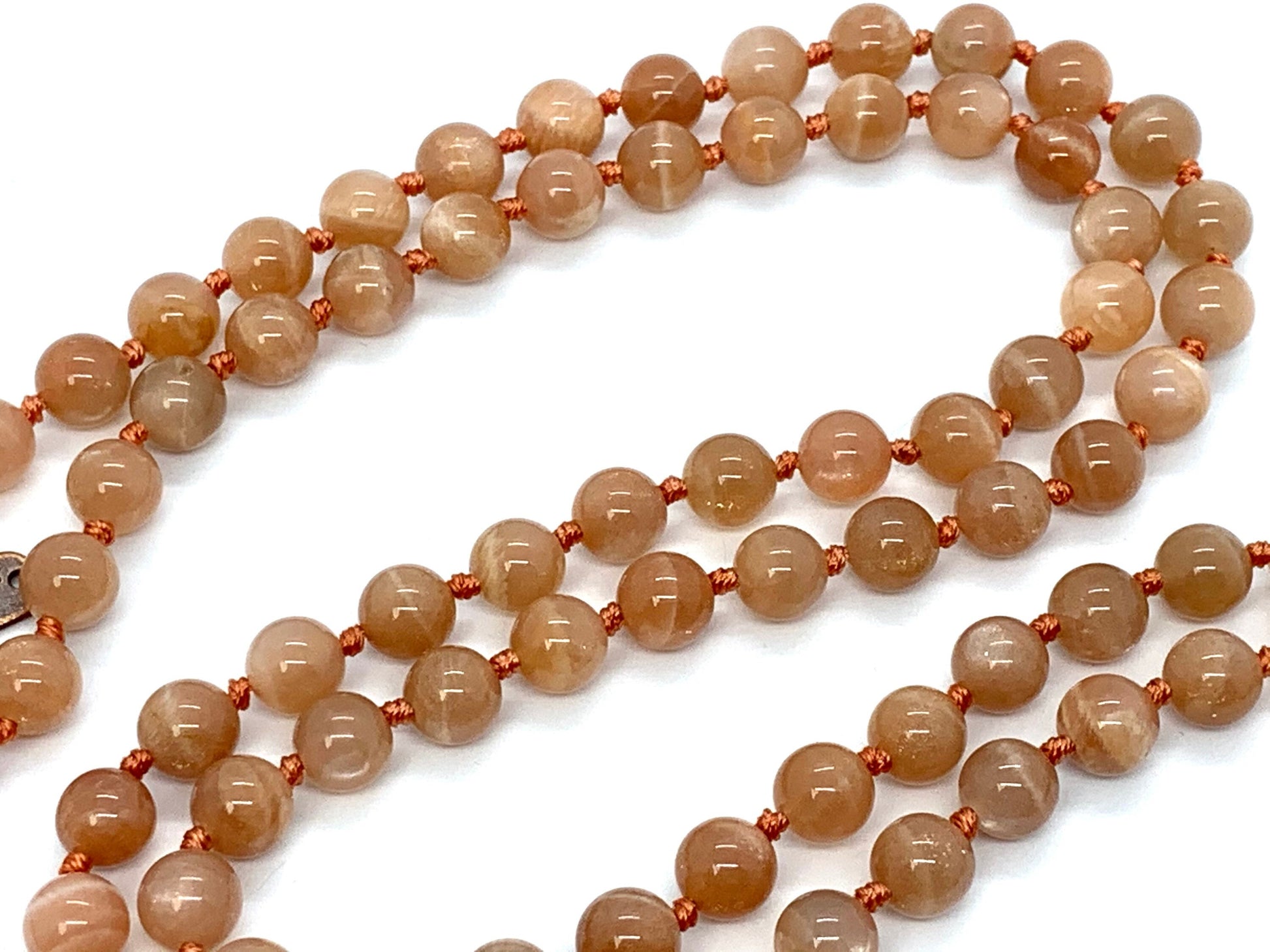 Hand Knotted Sunstone Mala Necklace – Confidence, Joy & Emotional Healing | Sacral Chakra | VESTA Collection