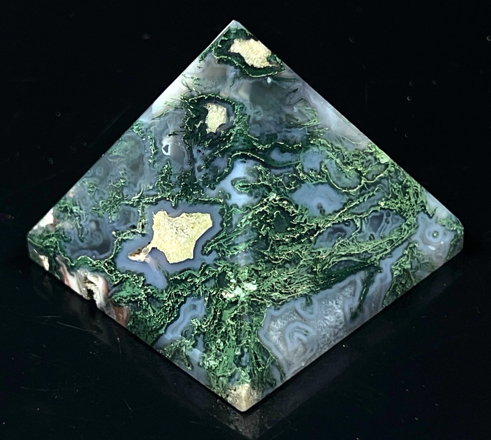Moss Agate Crystal Pyramid | 2-Inch Healing Stone | TATTVA Collection