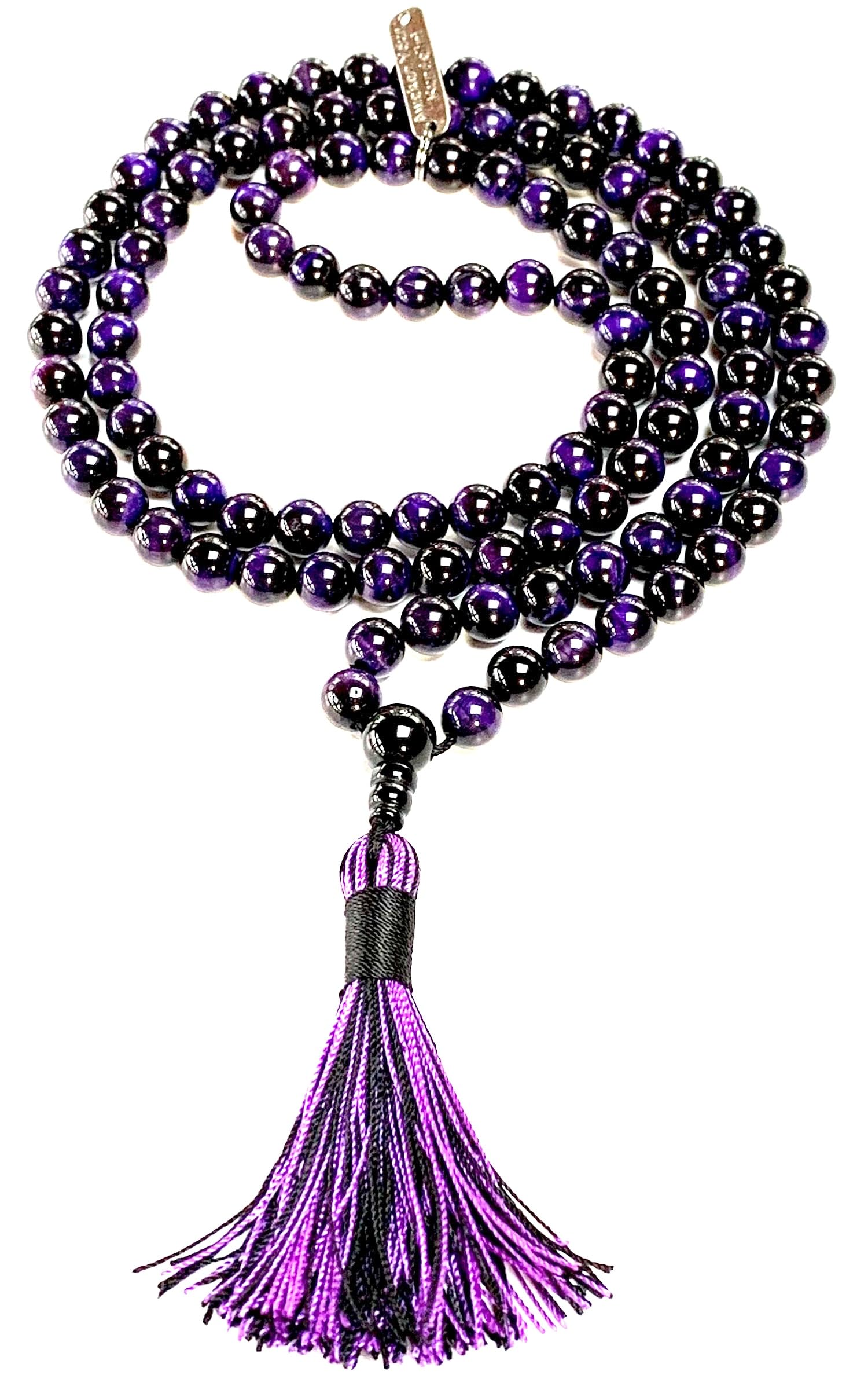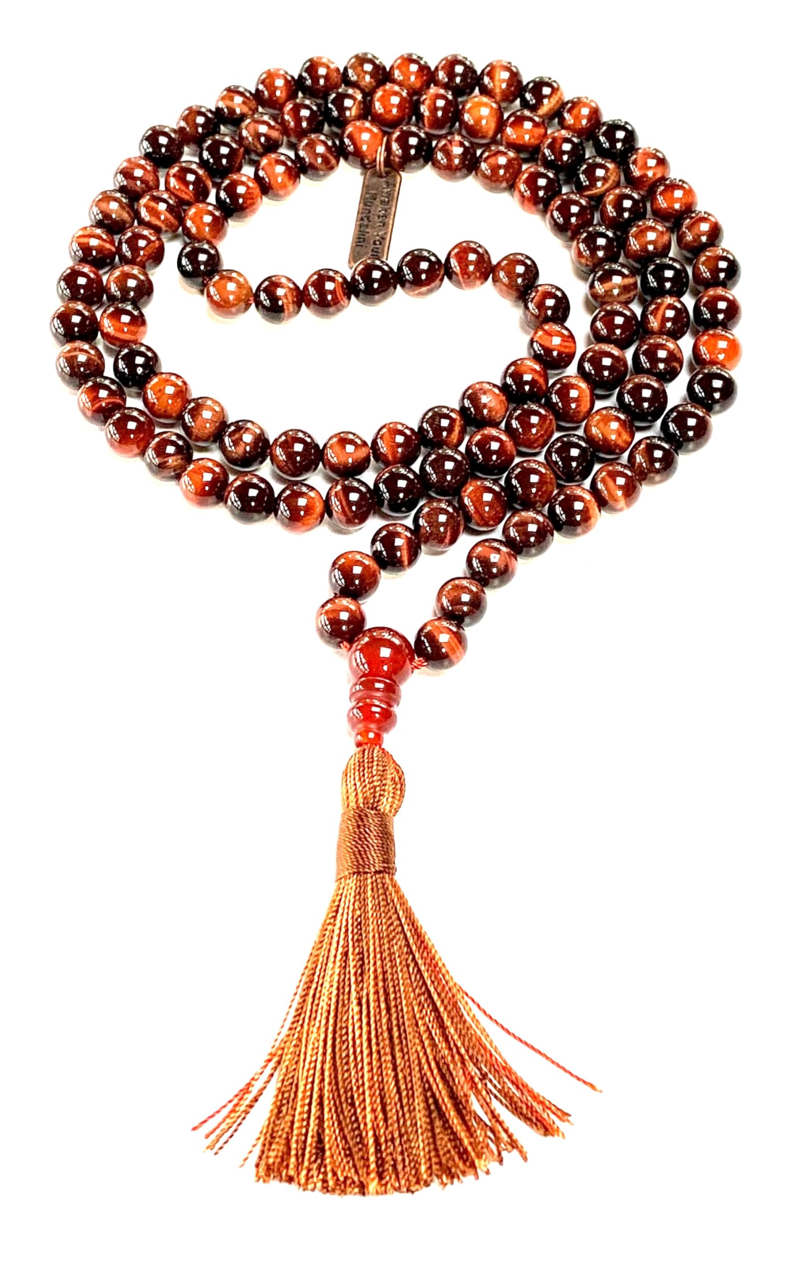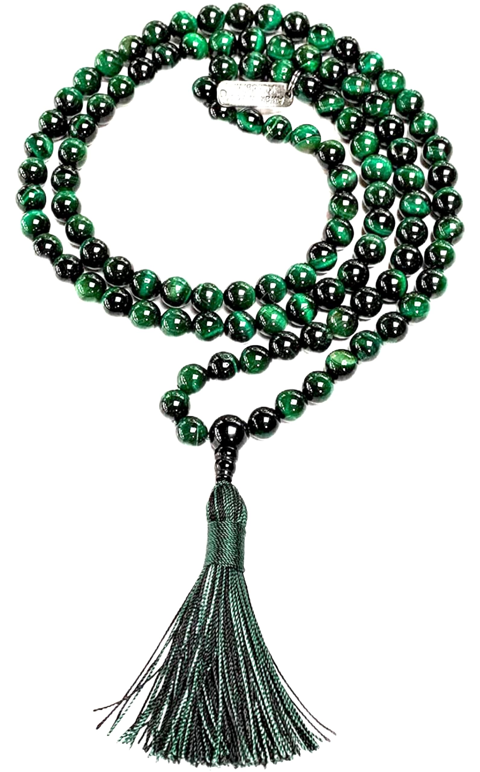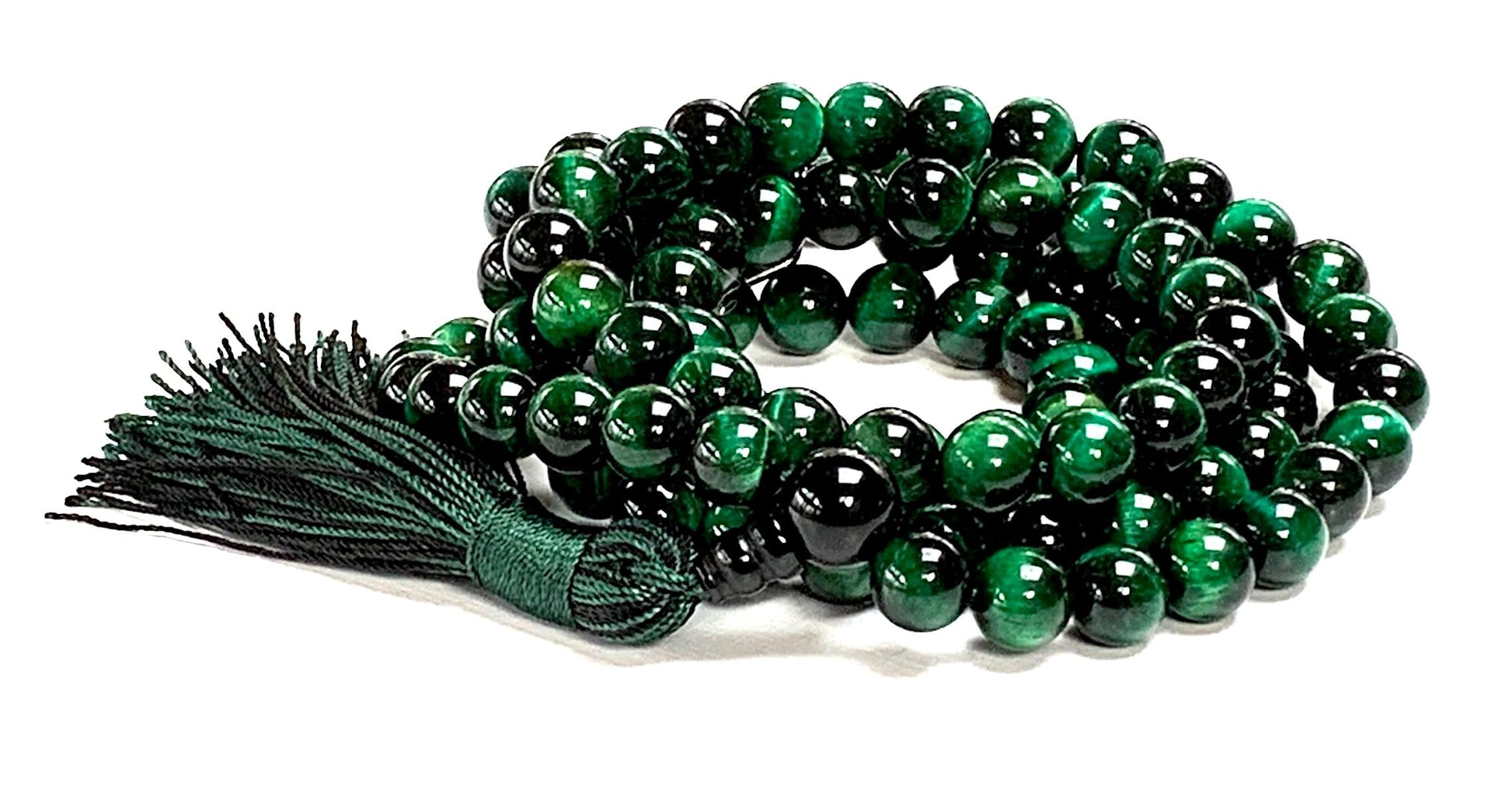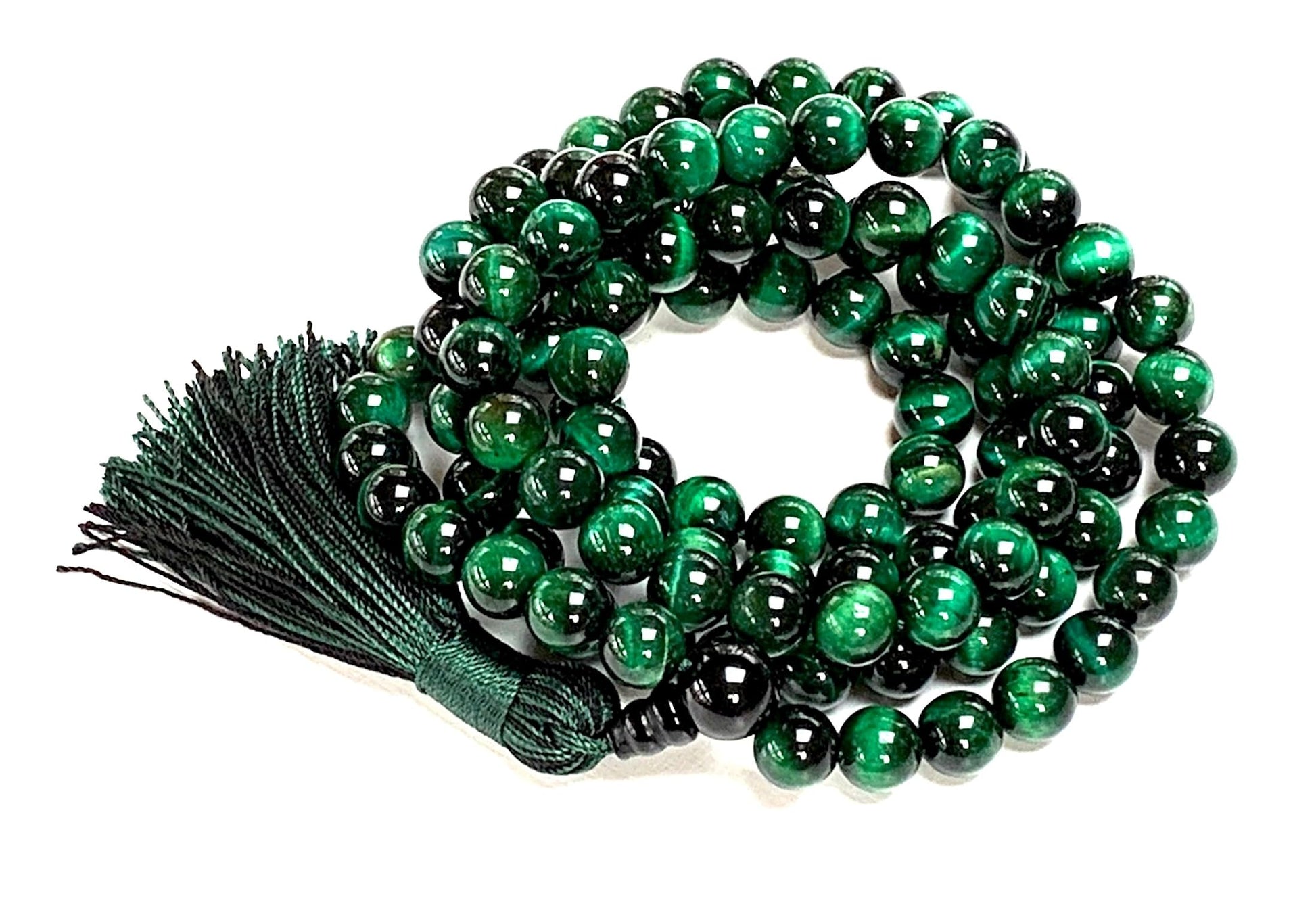 - Elevate your spiritual practice with our Handmade Tiger's Eye Mala Beads Necklace, a stunning piece designed for meditation, mindfulness, and personal adornment. Each 8mm Tiger's Eye bead is carefully selected for its natural beauty and energy, and the necklace is available in a variety of captivating colors—red, blue, black, brown, golden, purple, green, and teal. Handmade with precision and finished with a matching tassel, this mala is a perfect blend of spiritual significance and natural elegance.