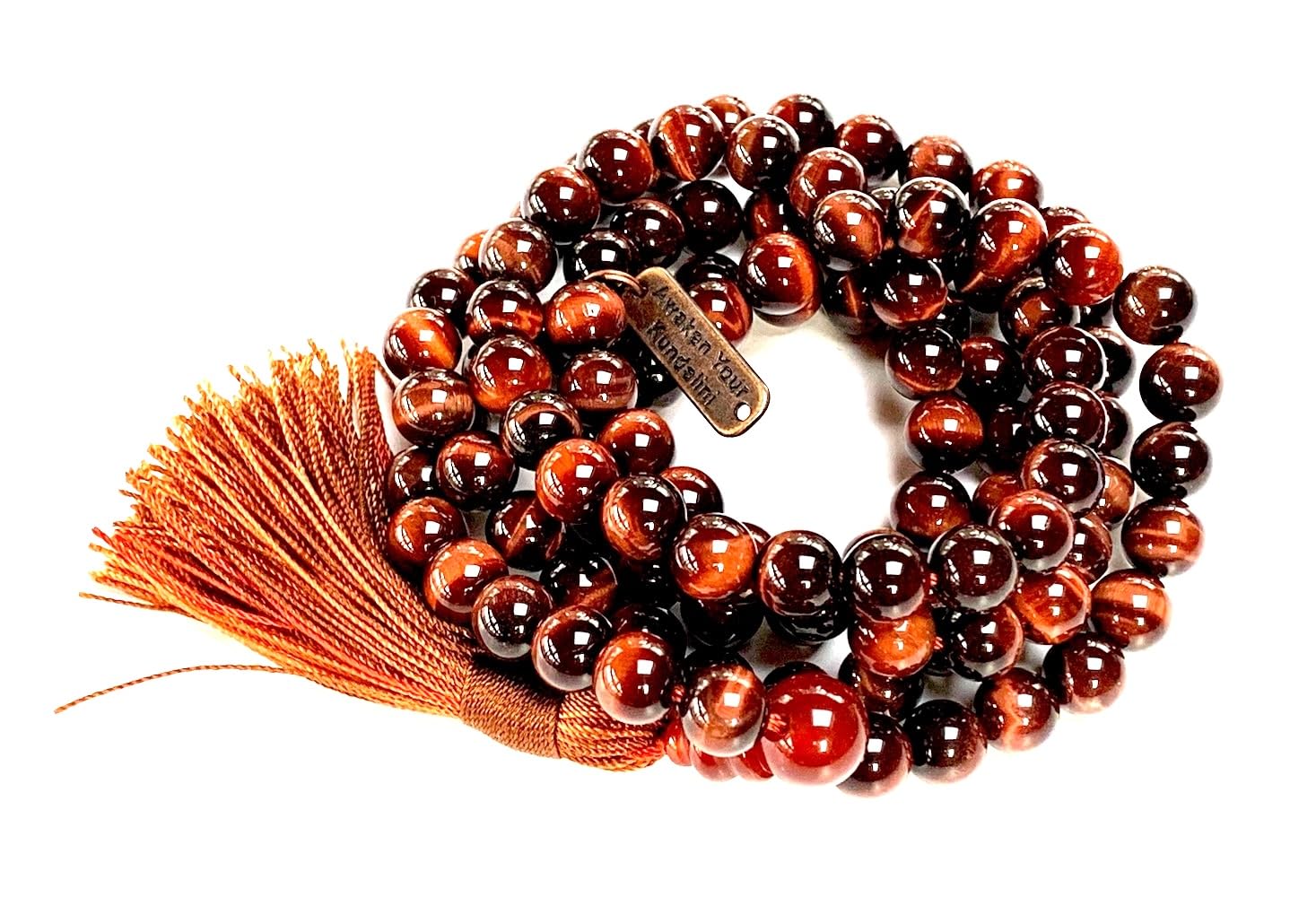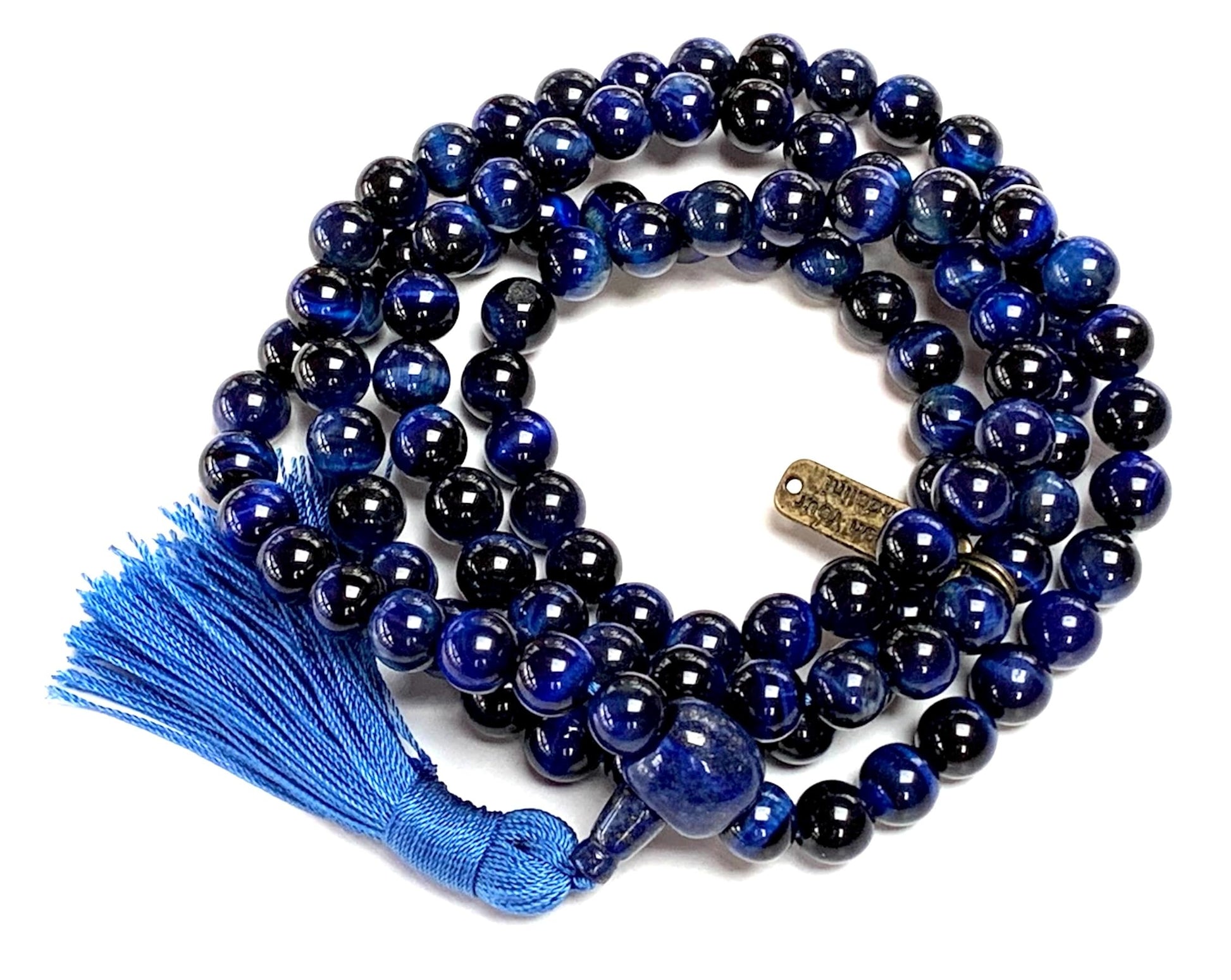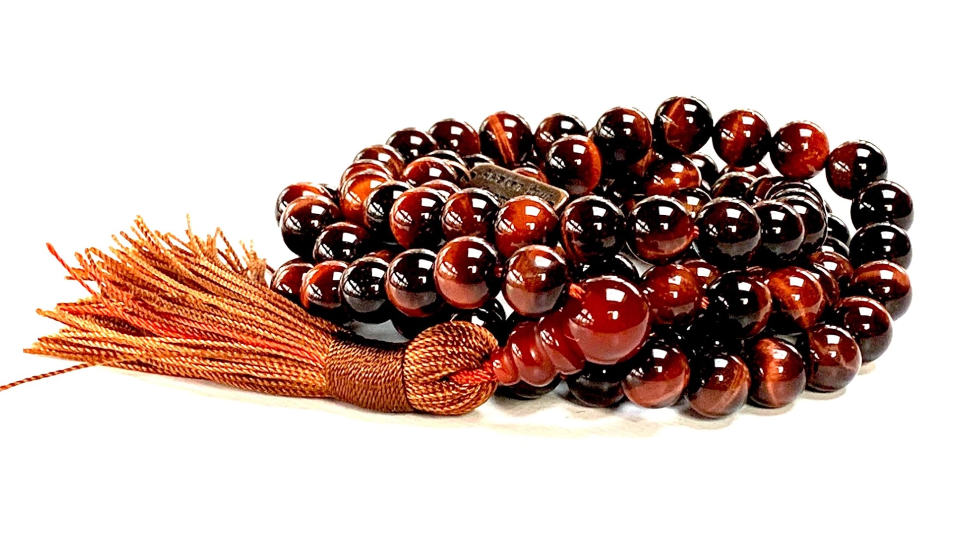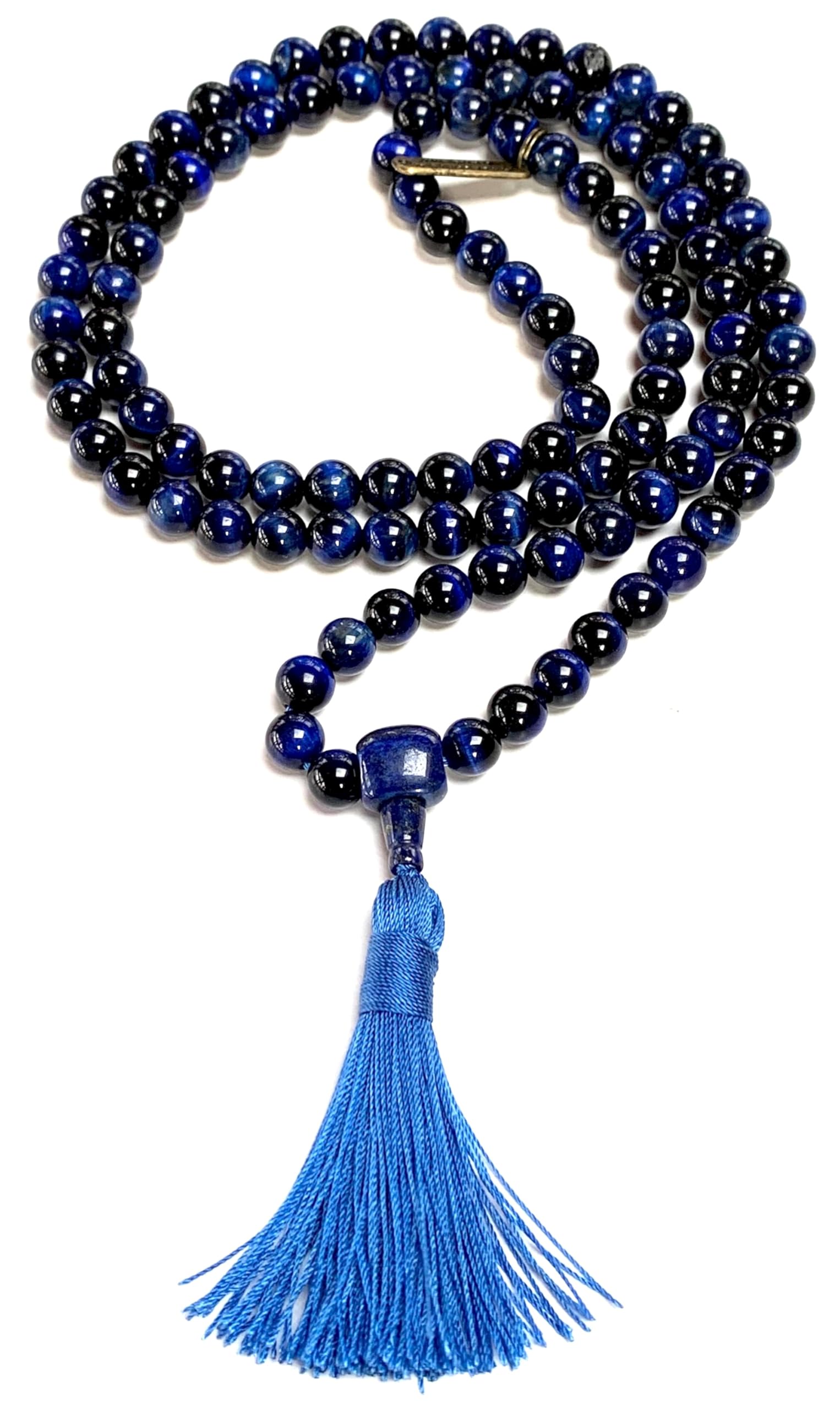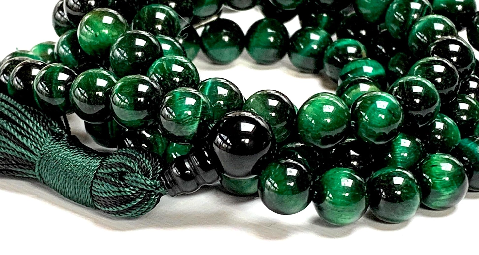 - Elevate your spiritual practice with our Handmade Tiger's Eye Mala Beads Necklace, a stunning piece designed for meditation, mindfulness, and personal adornment. Each 8mm Tiger's Eye bead is carefully selected for its natural beauty and energy, and the necklace is available in a variety of captivating colors—red, blue, black, brown, golden, purple, green, and teal. Handmade with precision and finished with a matching tassel, this mala is a perfect blend of spiritual significance and natural elegance.