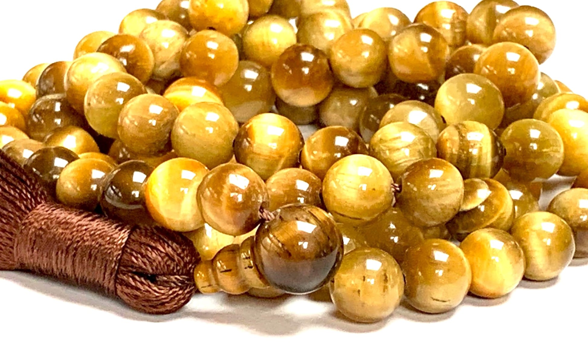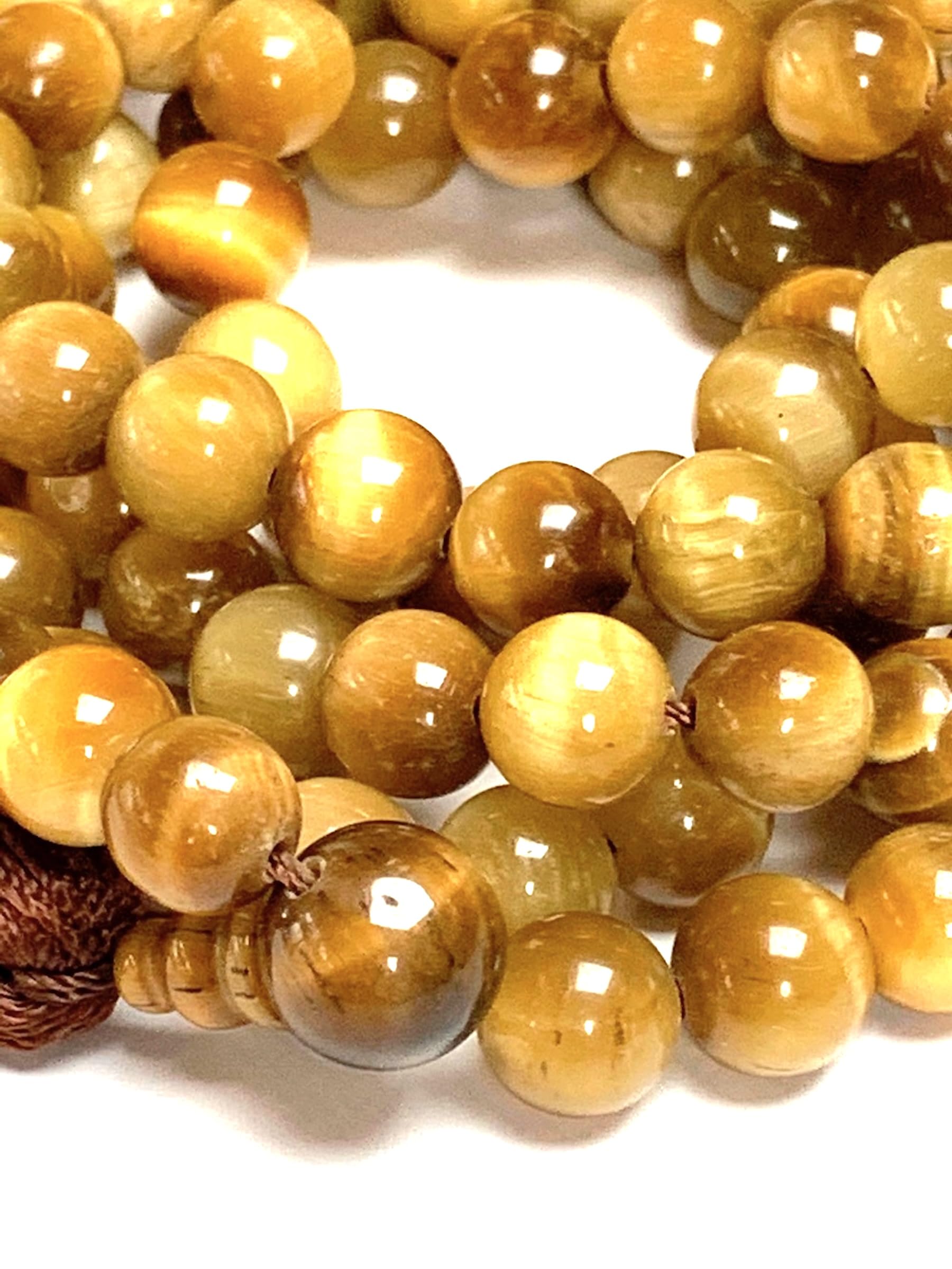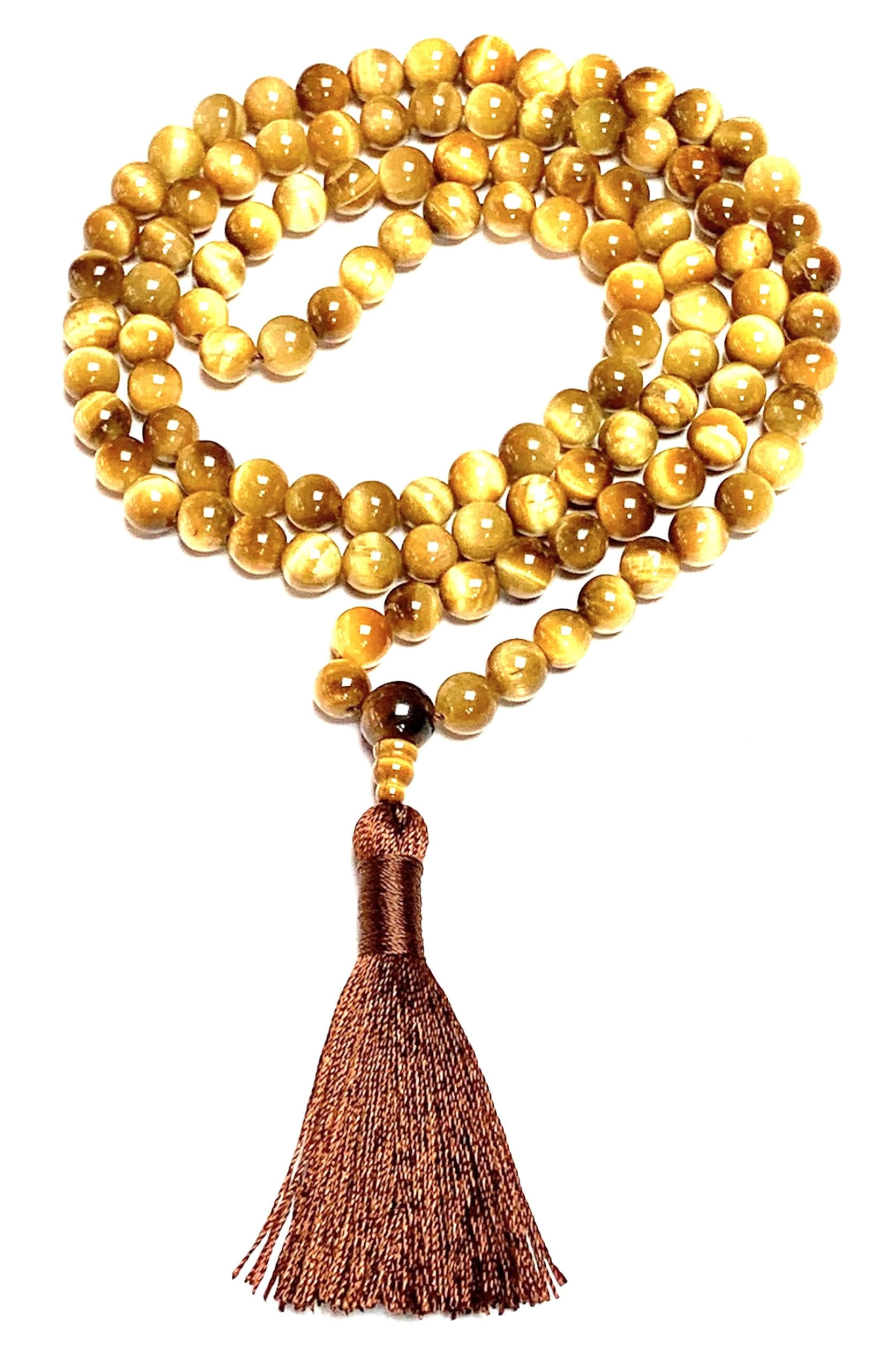 Tiger's Eye Mala Necklace – 8mm 108 Beads – Multicolor Options – Solar Plexus Chakra & Zodiac Birthstones – Meditation Jewelry