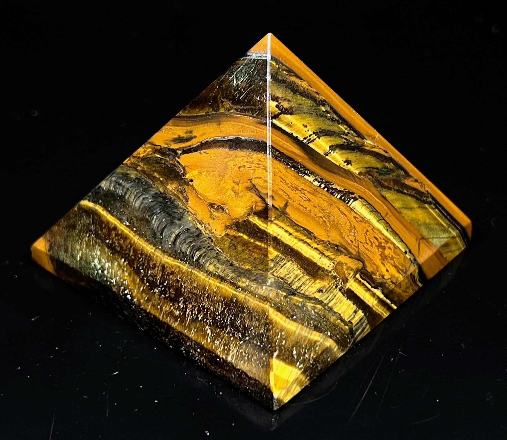 Tiger’s Eye Crystal Pyramid | 2-Inch Power Stone | TATTVA & SOLAR PLEXUS Collection