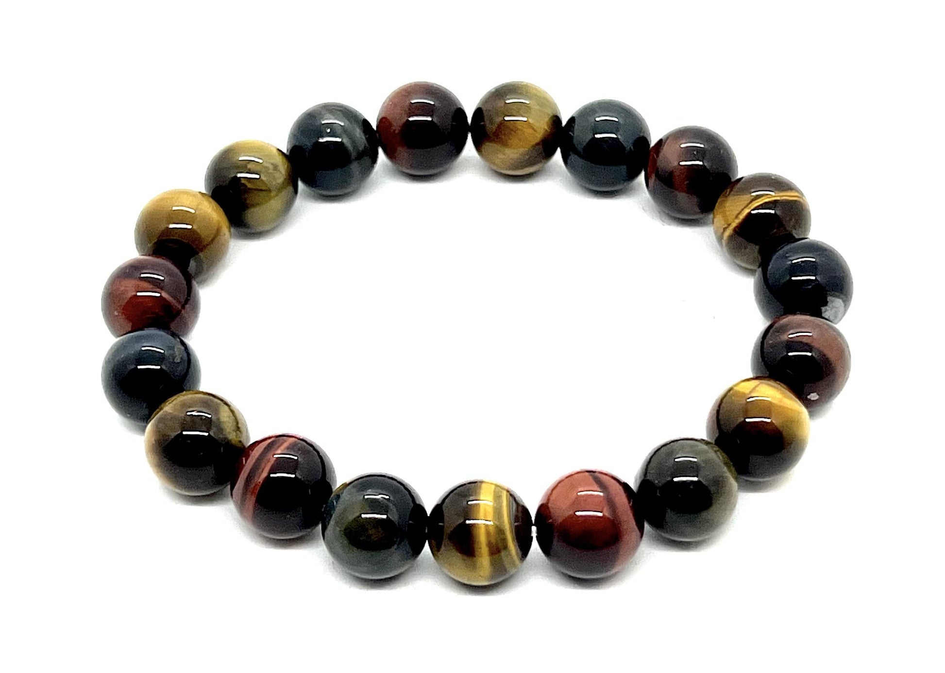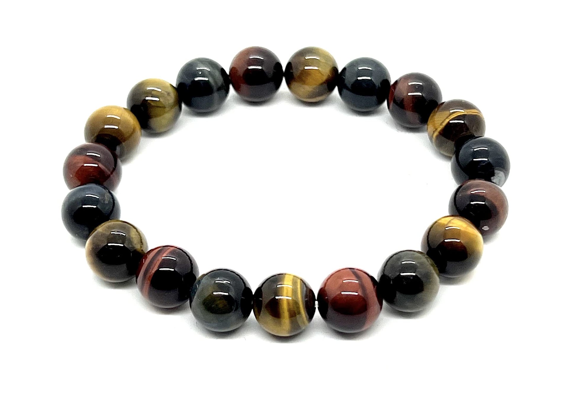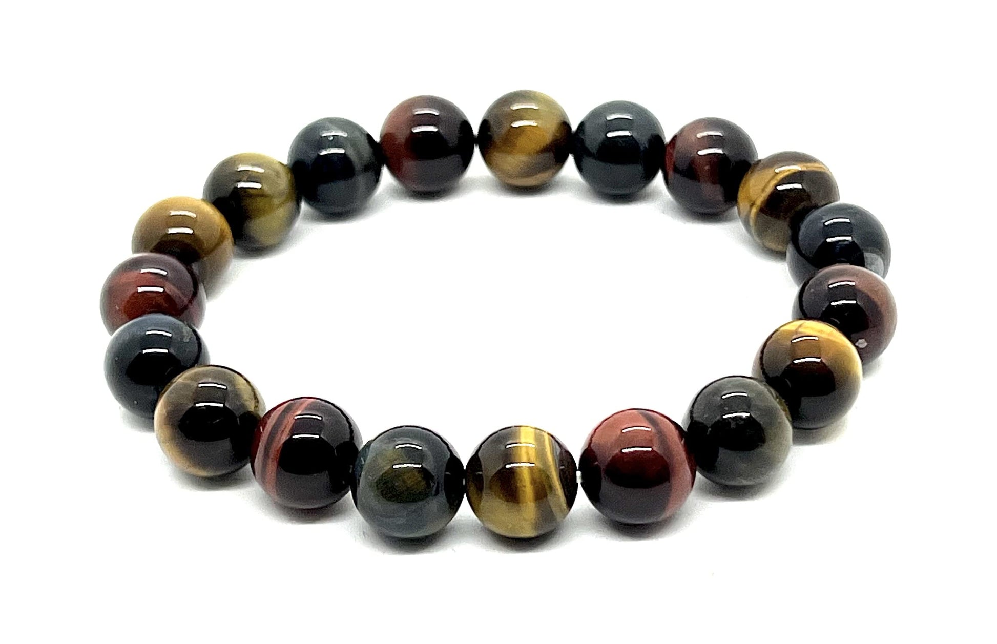 Tiger's Eye Stretch Bracelet (10mm Beads) - Red, Brown & Grey Tones - Embrace Strength & Confidence: Solar Plexus Chakra Balancing - Capricorn & Leo Birthstone