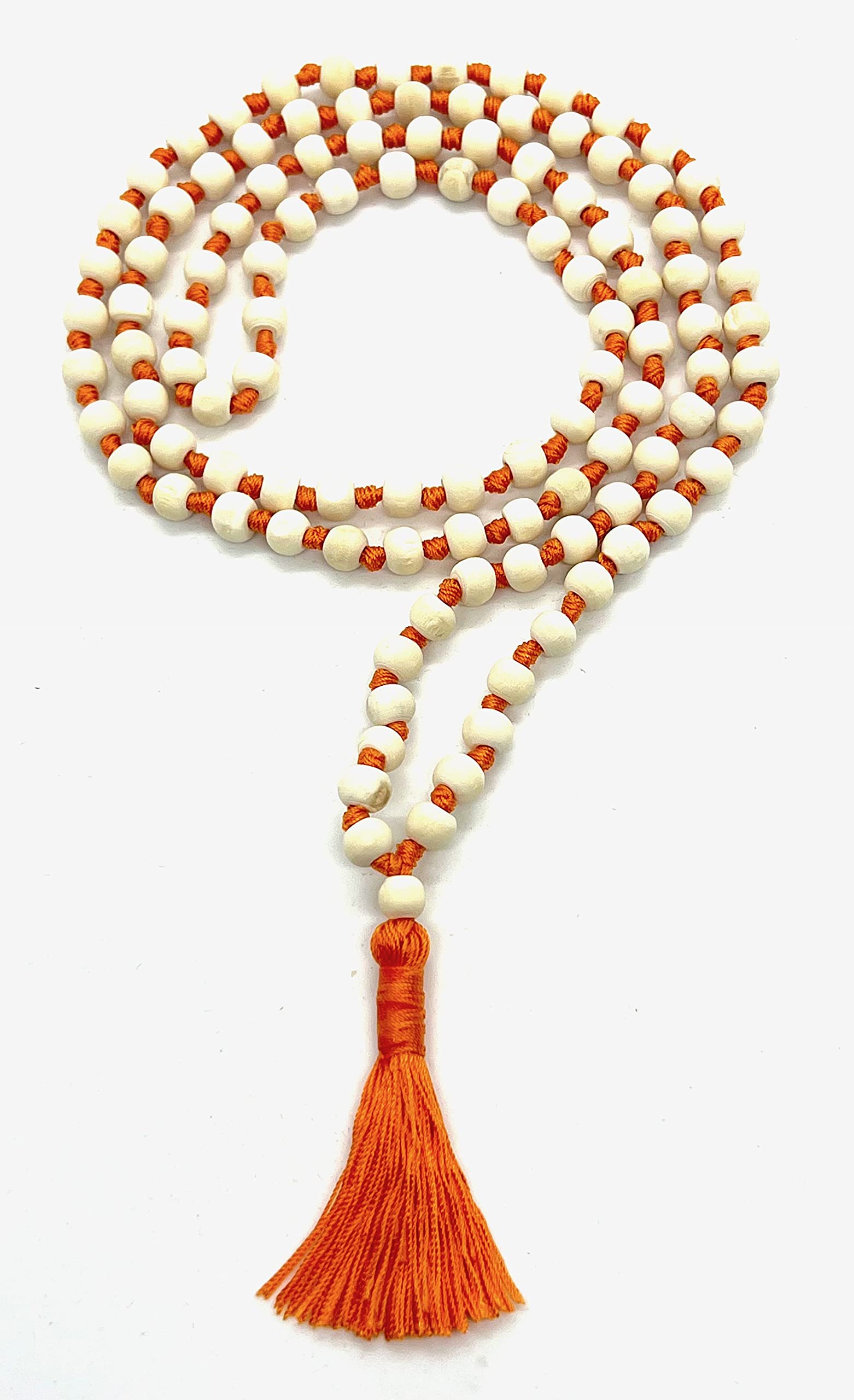 - Style and Significance. Our Hand Knotted 8mm Tulsi Mala Necklace is a fusion of tradition and style. The vibrant orange string, makes this mala stand out as both a spiritual tool and a statement piece. Ideal for meditation, prayer, or daily wear, it is a testament to spiritual elegance.