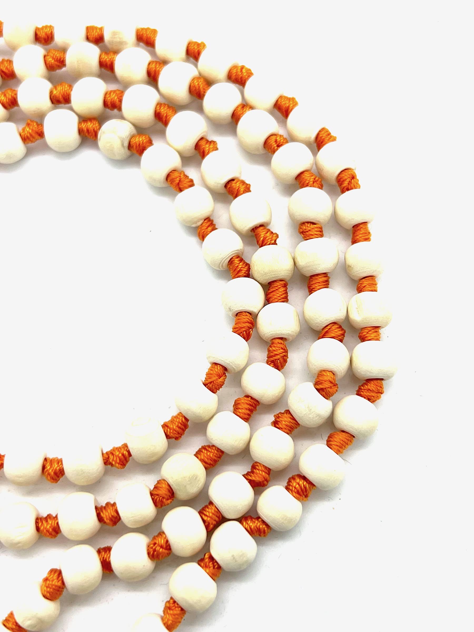 Tulsi Mala Beaded Necklace - Hand Knotted Tulasi Beads - 7 Chakra Mala (Orange String)
