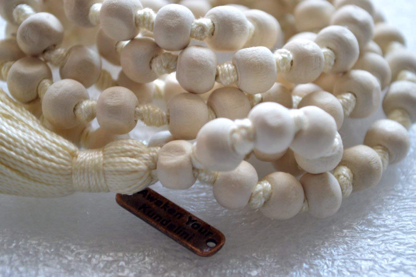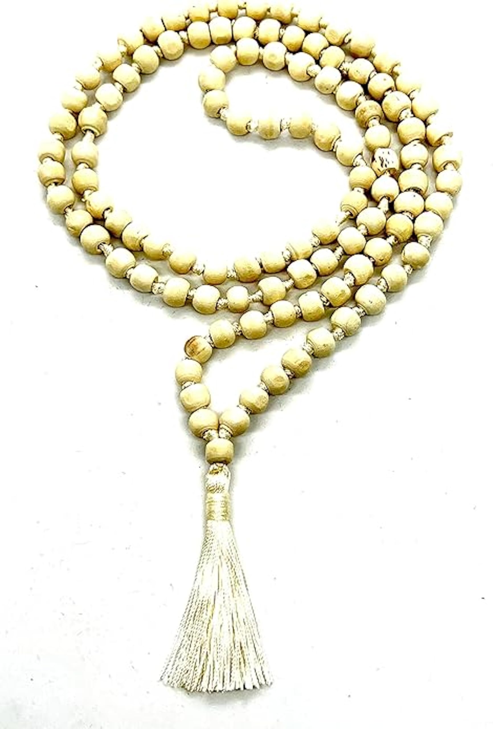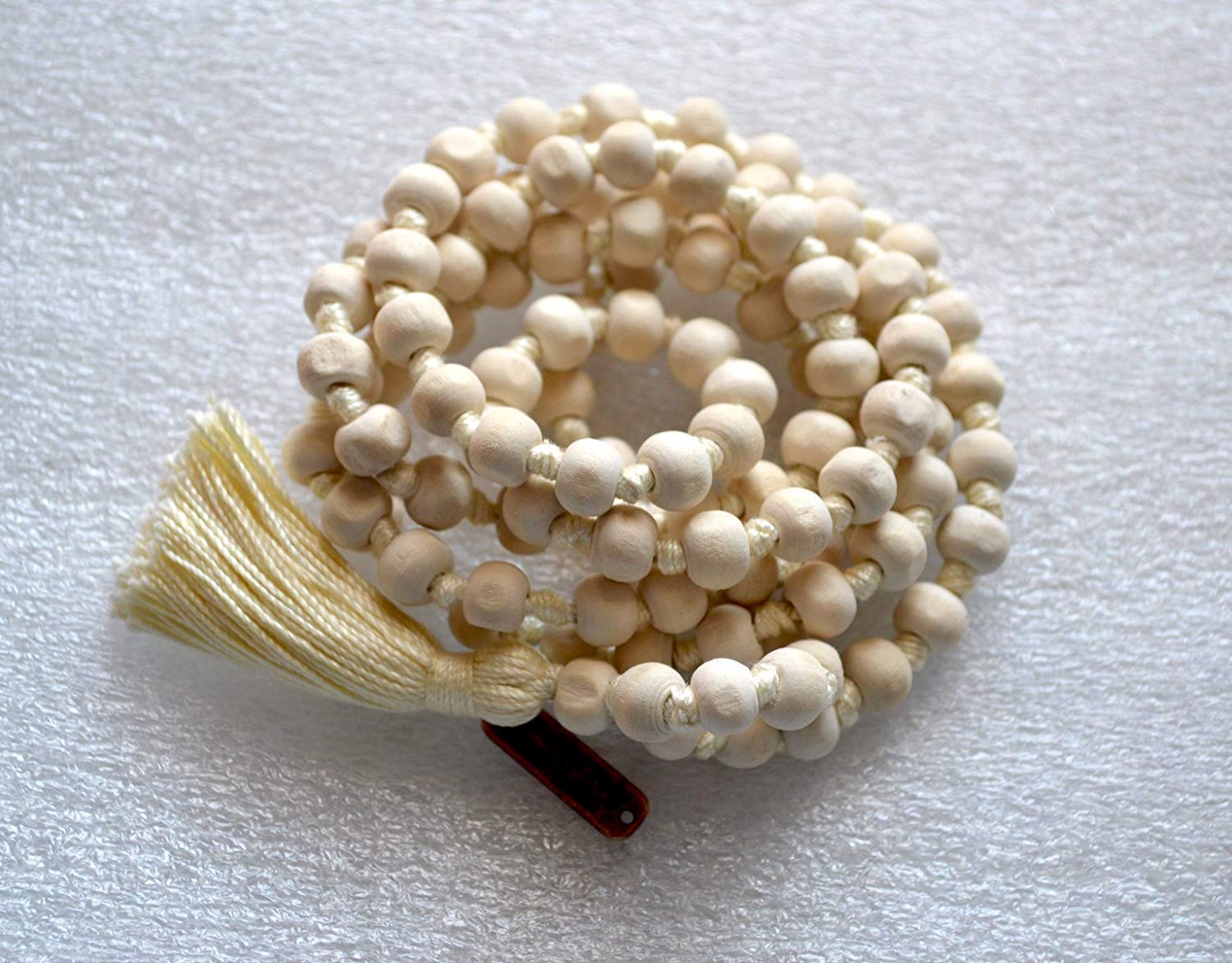 - Style and Significance. Our Hand Knotted 8mm Tulsi Mala Necklace is a fusion of tradition and style. The vibrant white string, makes this mala stand out as both a spiritual tool and a statement piece. Ideal for meditation, prayer, or daily wear, it is a testament to spiritual elegance.