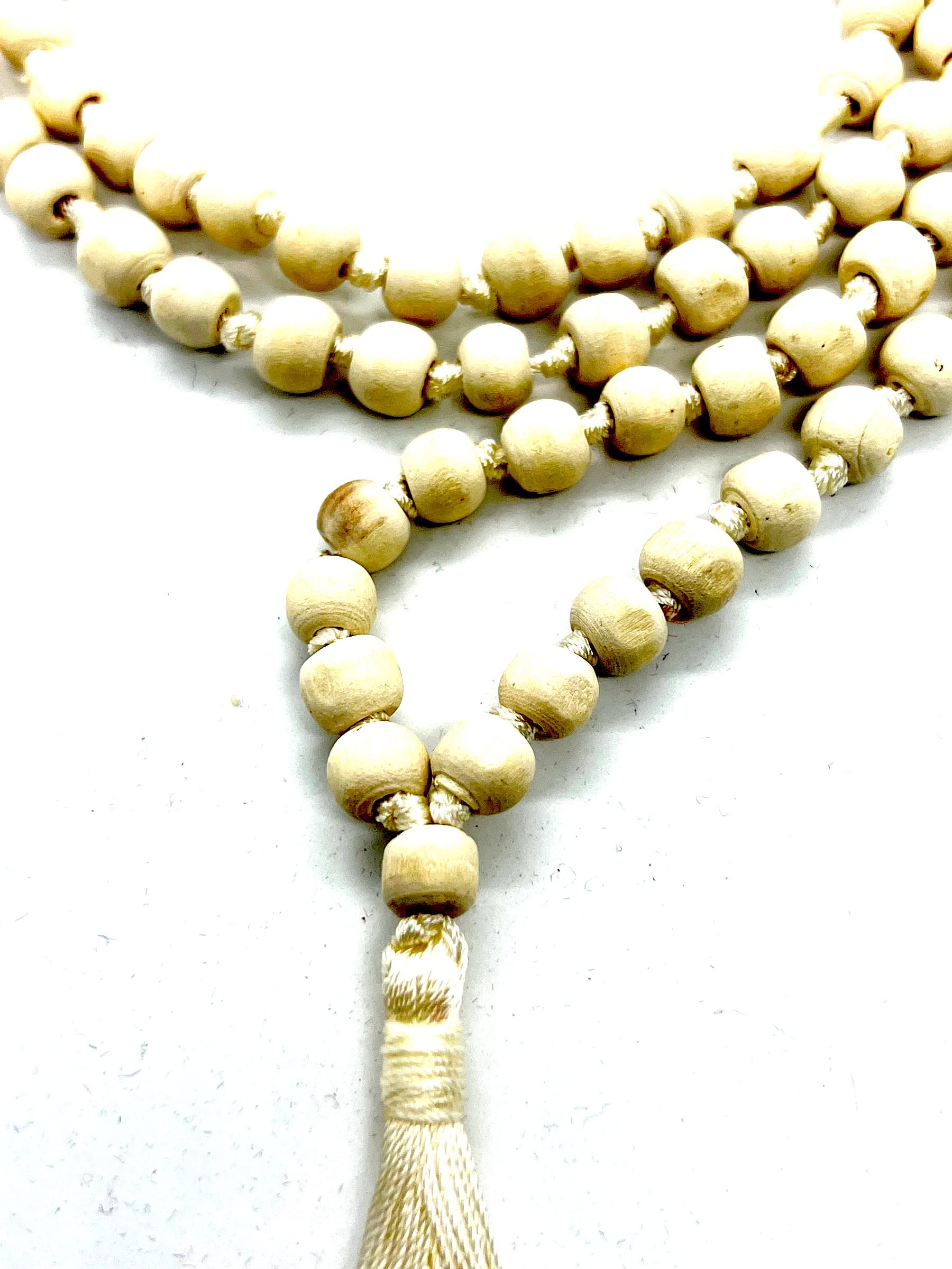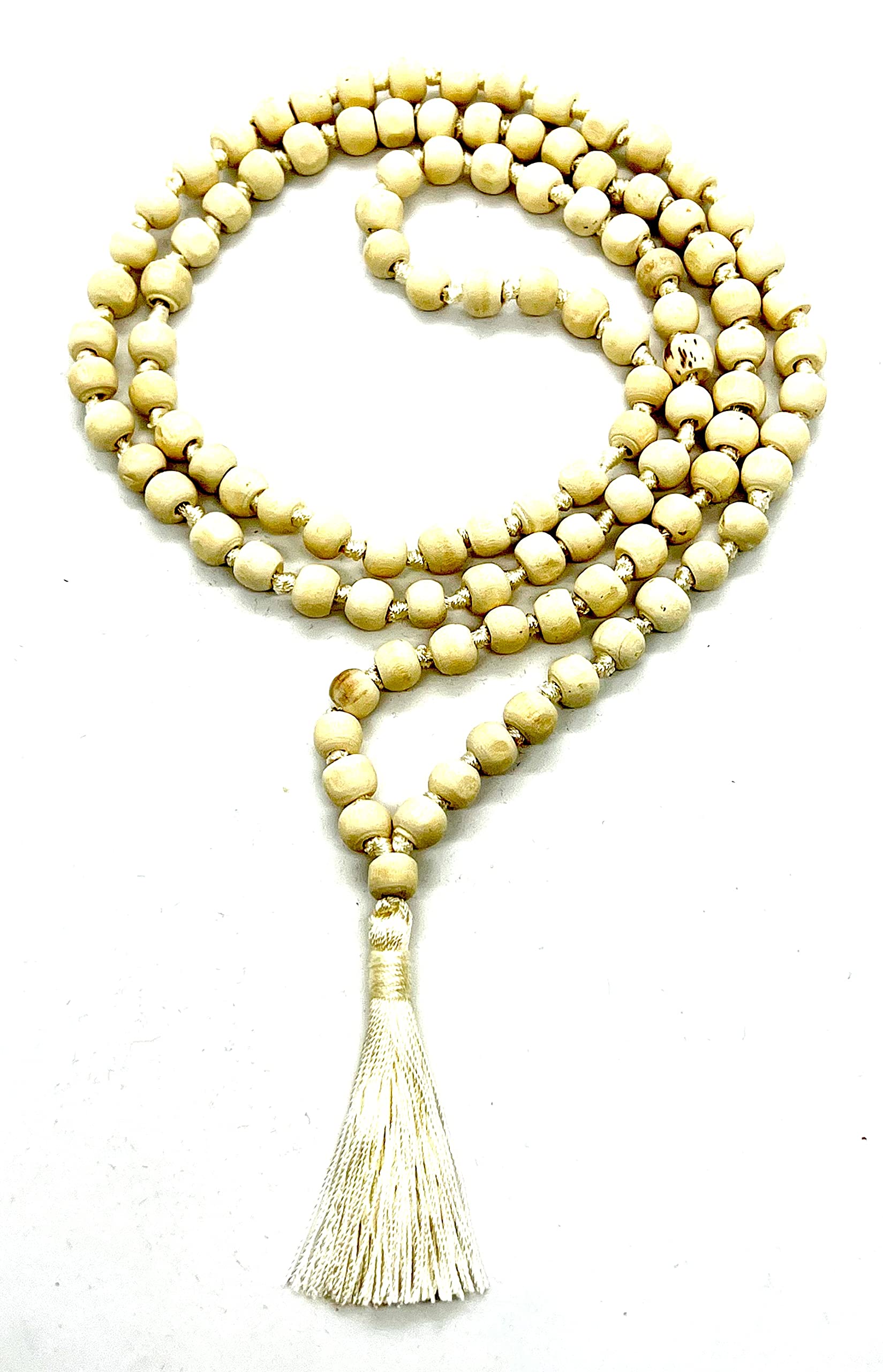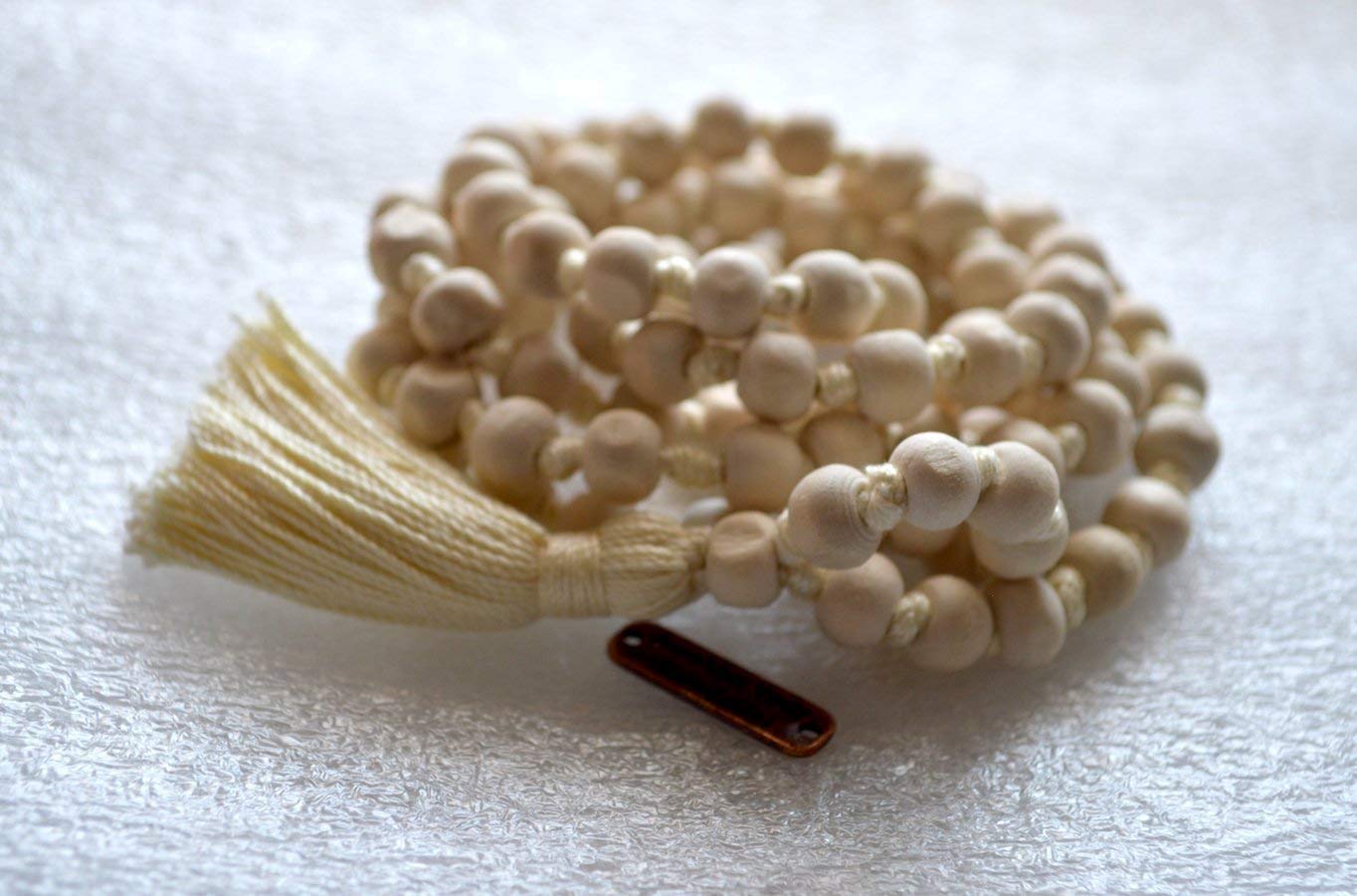 - Style and Significance. Our Hand Knotted 8mm Tulsi Mala Necklace is a fusion of tradition and style. The vibrant white string, makes this mala stand out as both a spiritual tool and a statement piece. Ideal for meditation, prayer, or daily wear, it is a testament to spiritual elegance.
