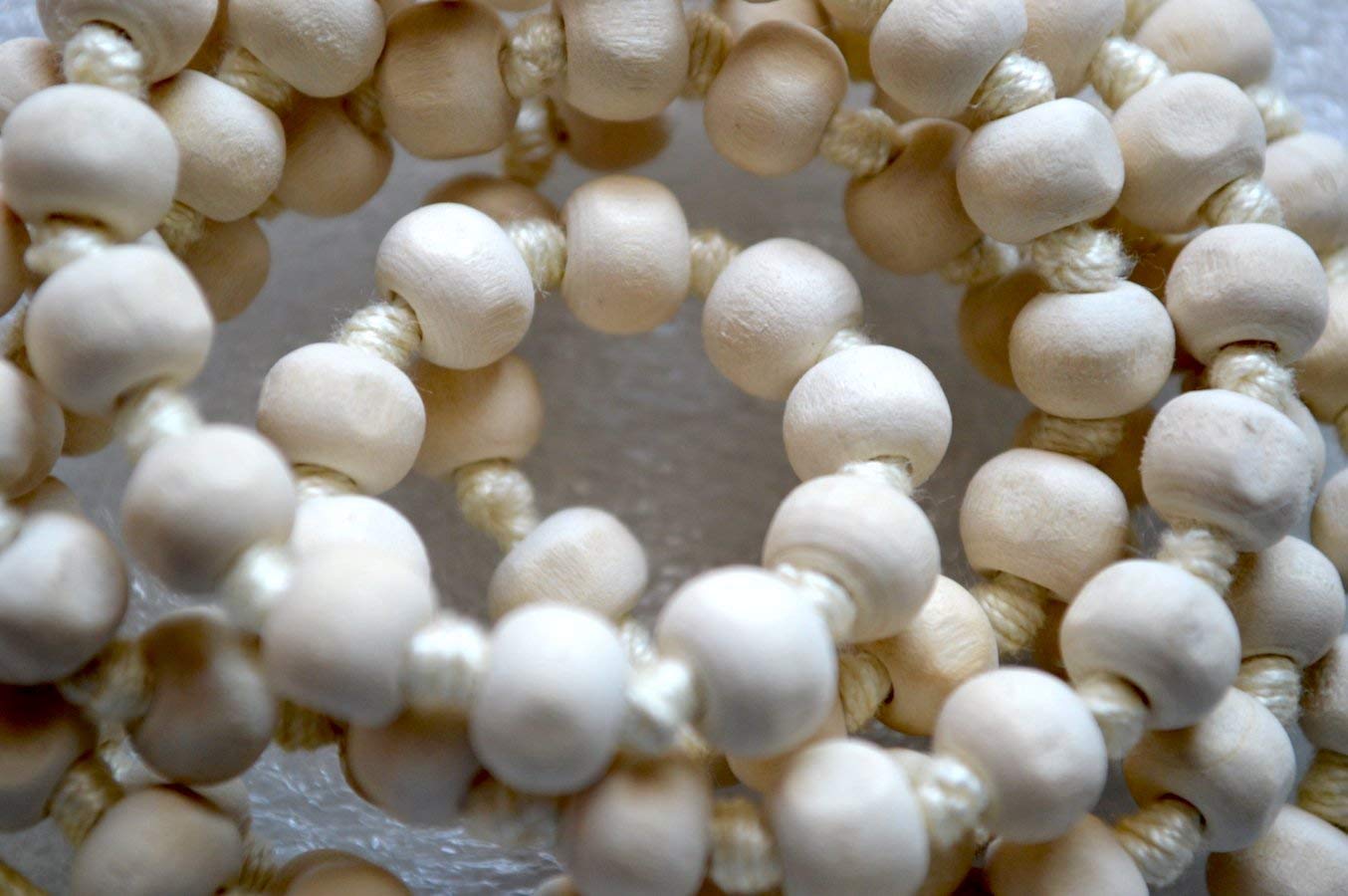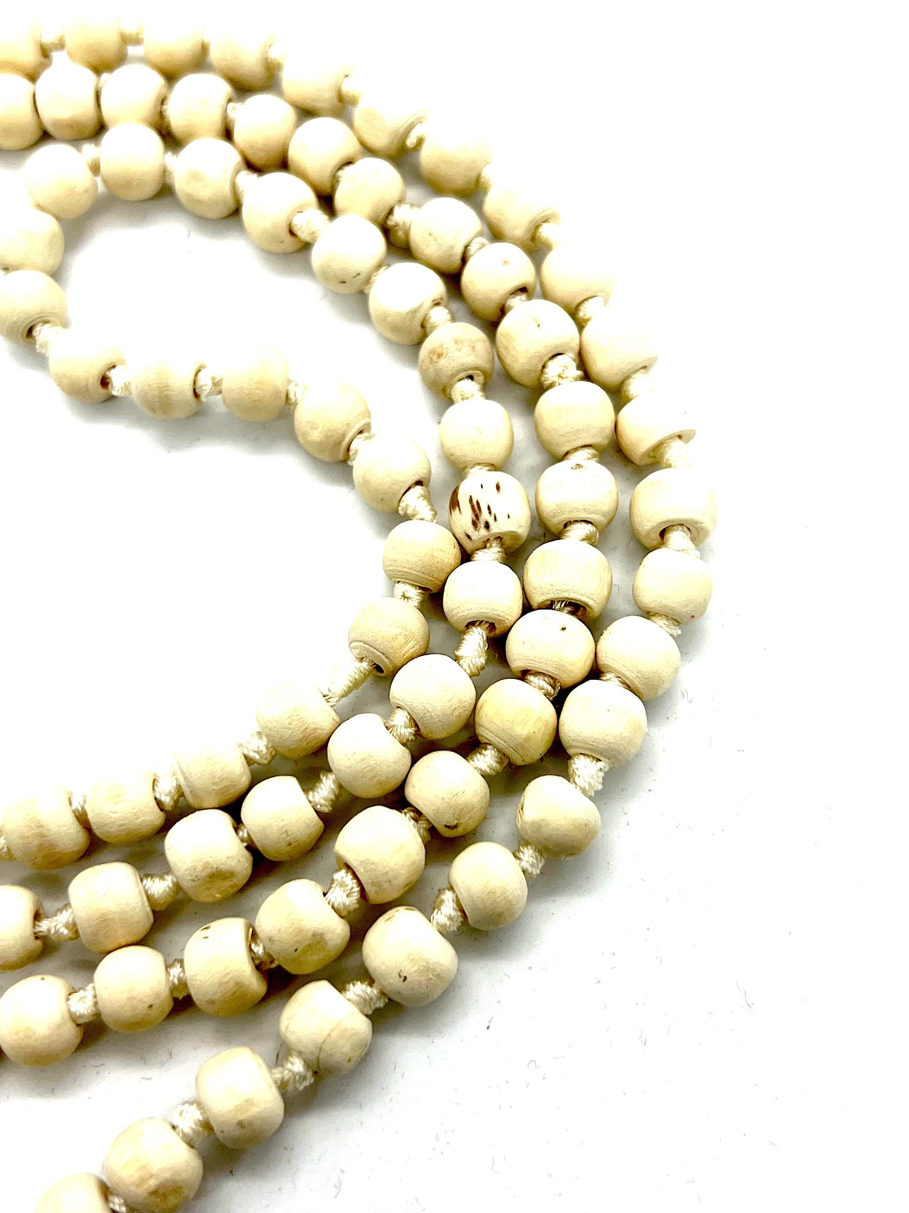 Tulsi Mala Beaded Necklace - Hand Knotted Tulasi Beads - 7 Chakra Mala (White String)