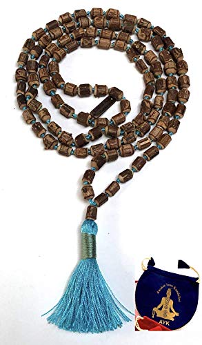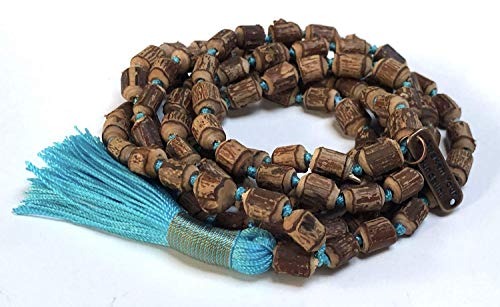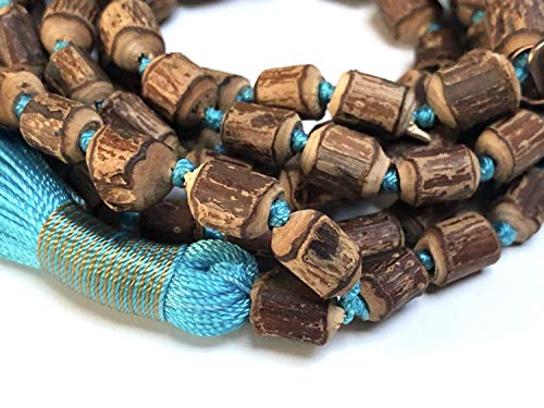 - ROUGH BEADS WITH SPLINTERS SO HANDLE WITH CARE. Tulsi (Holy Basil) is considered the most sacred of the woods used in Indian worship and the Tulsi plant is believed to be an incarnation of the Divine. THIS MALA IS VERY DIFFICULT TO MAKE AS THE BEADS ARE ROUGH AND RAW CUT. TAKES NEARLY 4-5 HOURS. Tulsi is reported to possess remarkable physical and spiritual healing properties and helps to improve devotion and love in the heart.