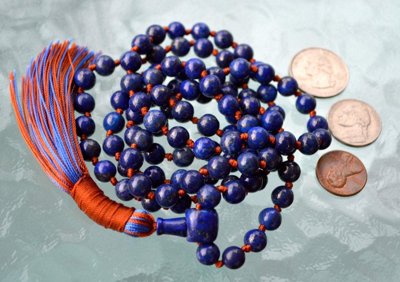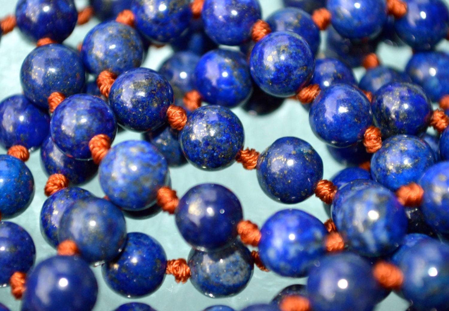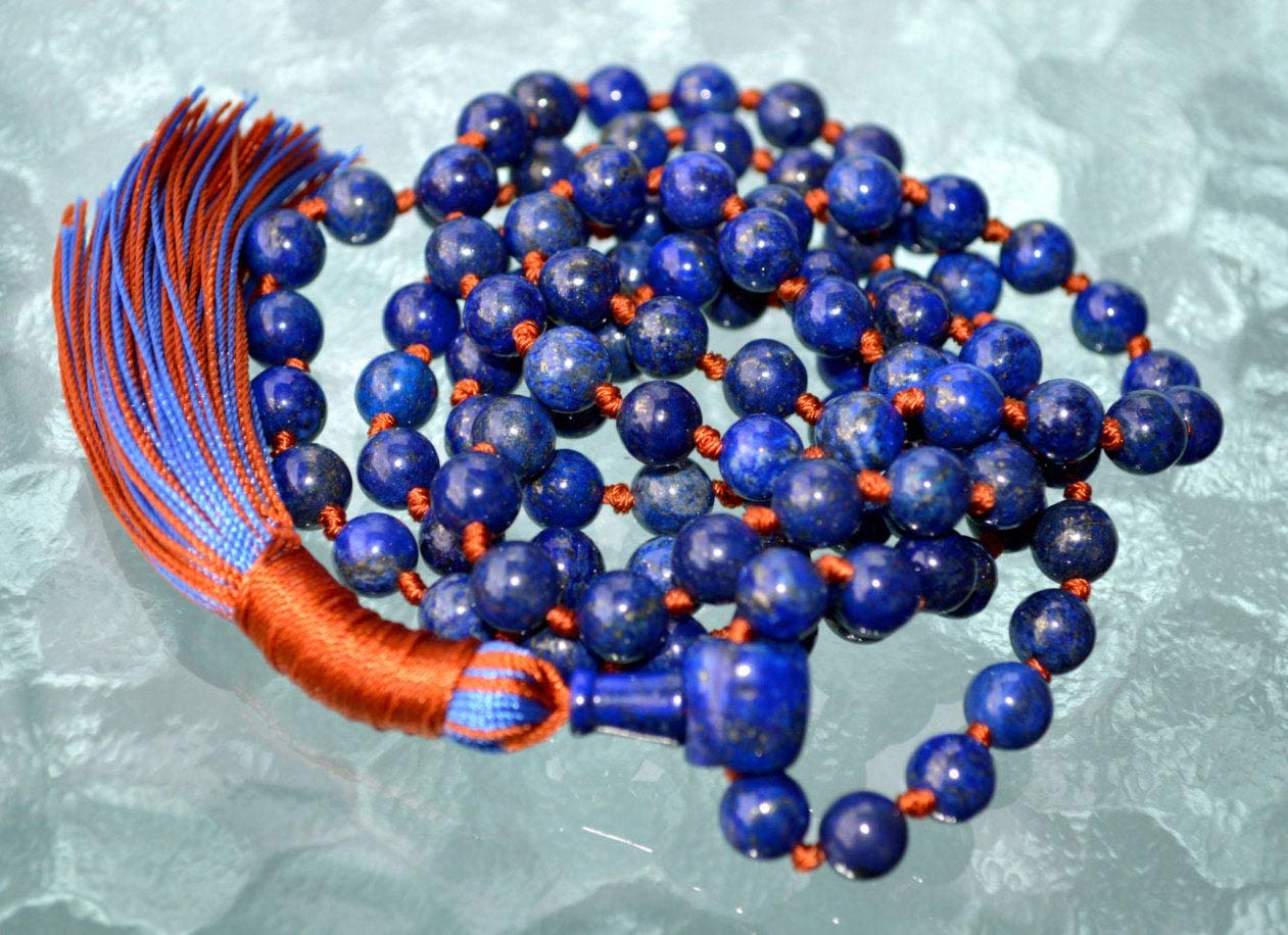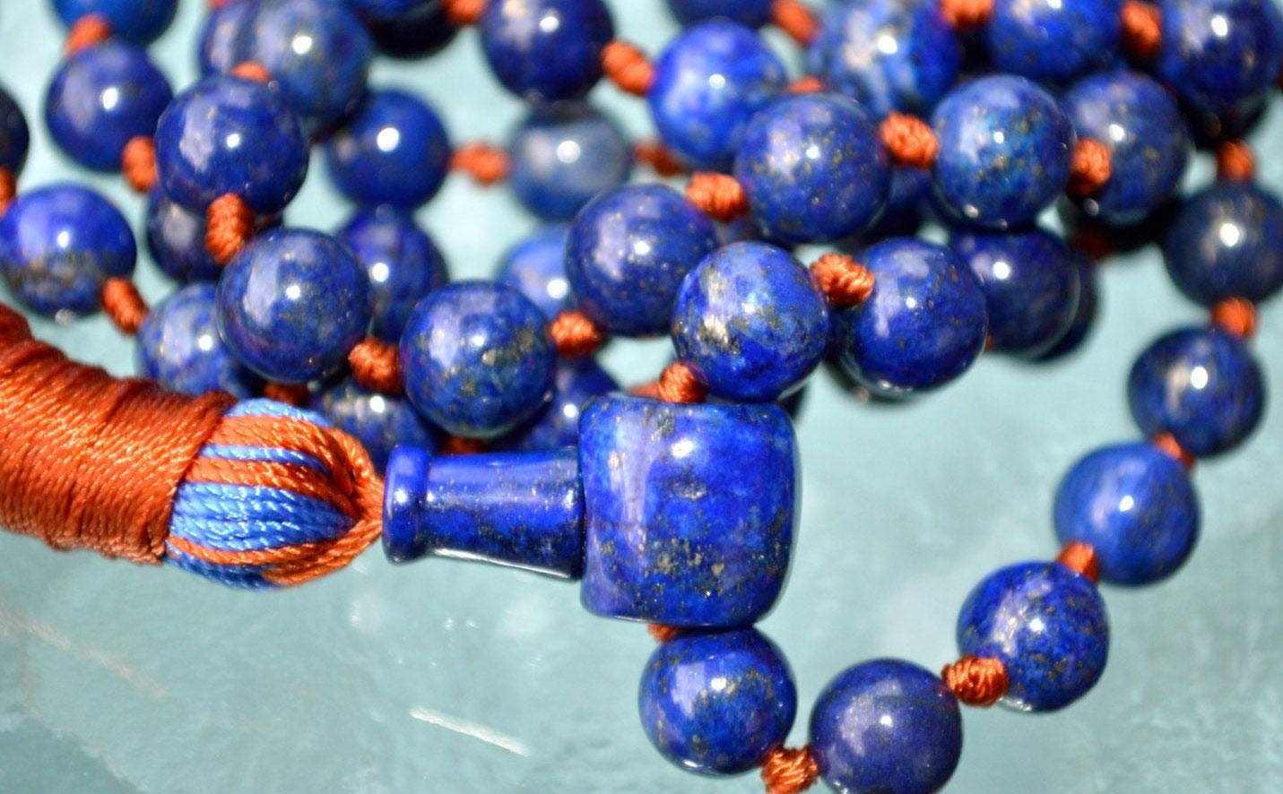- Why Choose Our Lapis Lazuli Mala Beads Necklace? Authentic Gemstones: Made from genuine Lapis Lazuli, each bead showcases the stone's natural beauty and unique characteristics. Handcrafted Quality: Each mala is hand-knotted with care and attention to detail, ensuring a unique and high-quality piece. Healing Benefits: Lapis Lazuli is renowned for its spiritual and healing properties, making this necklace a powerful tool for personal growth.