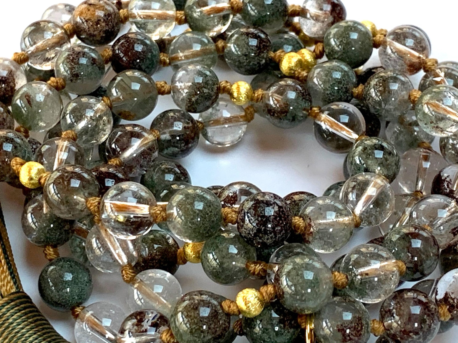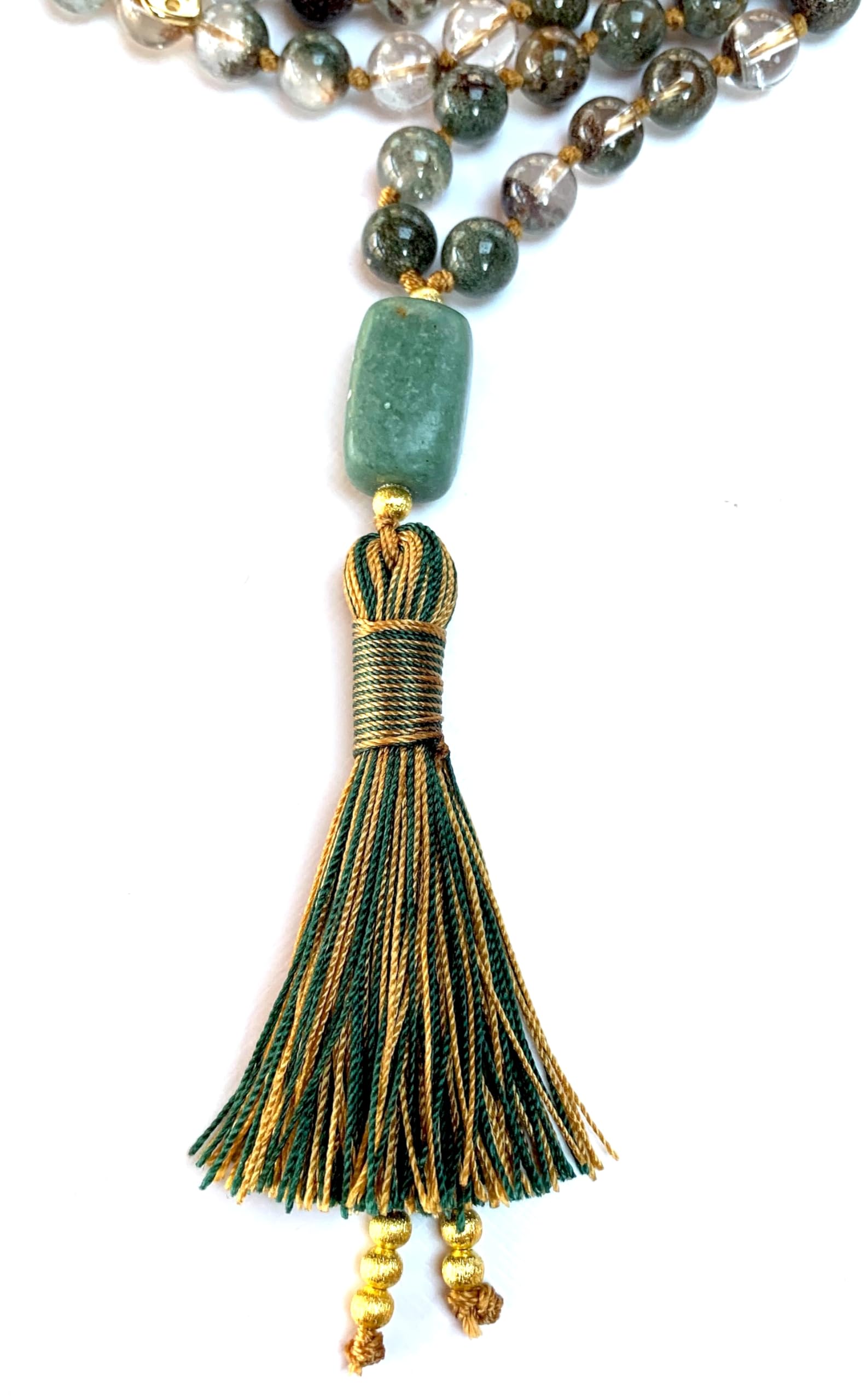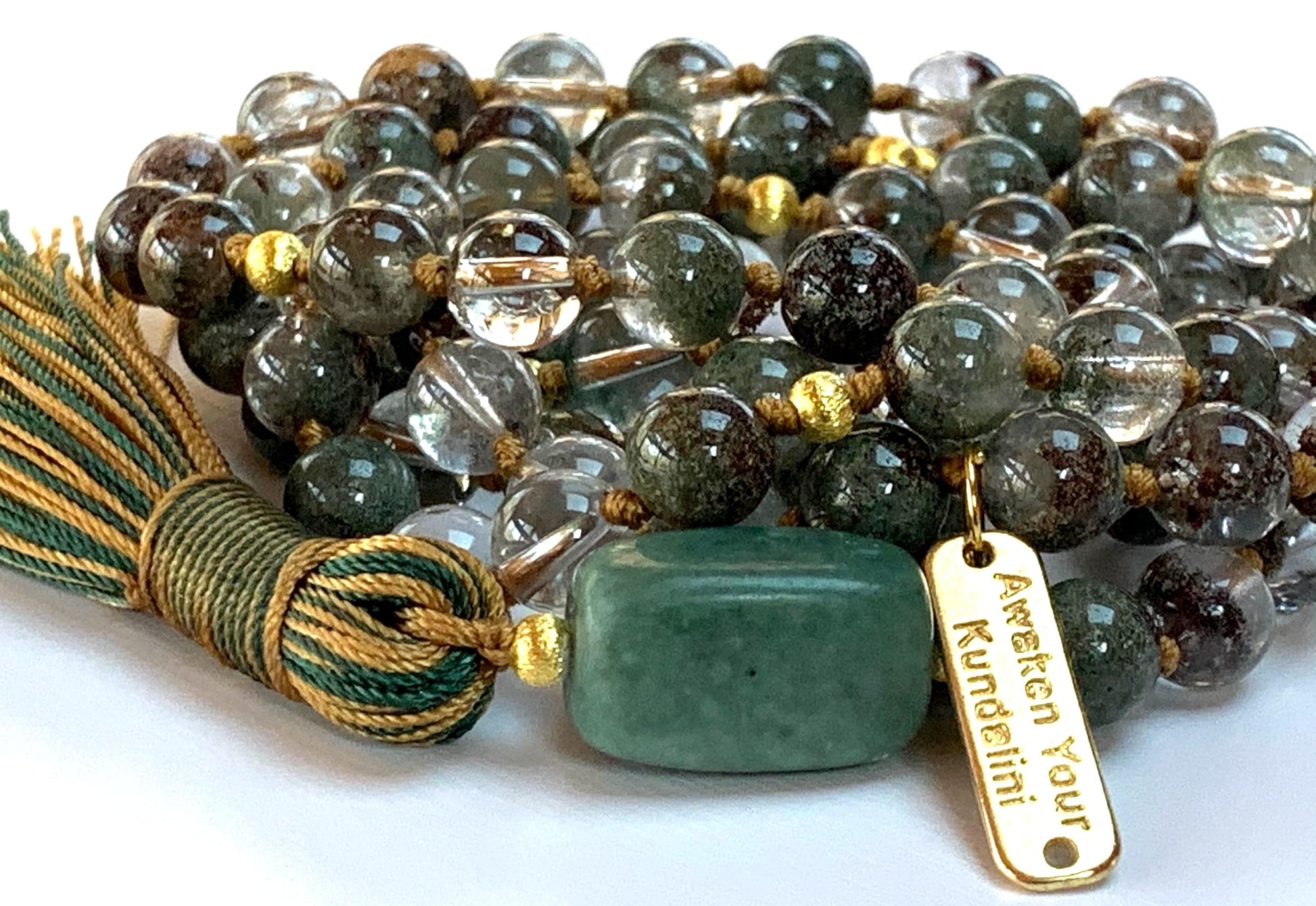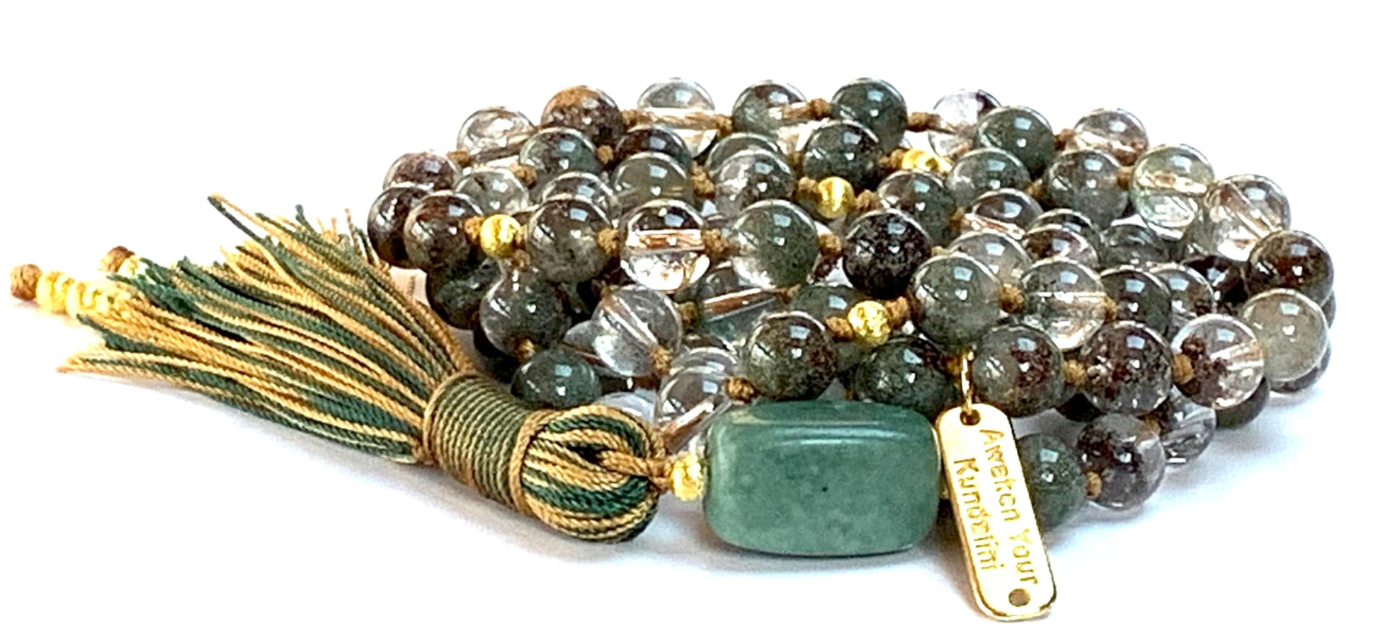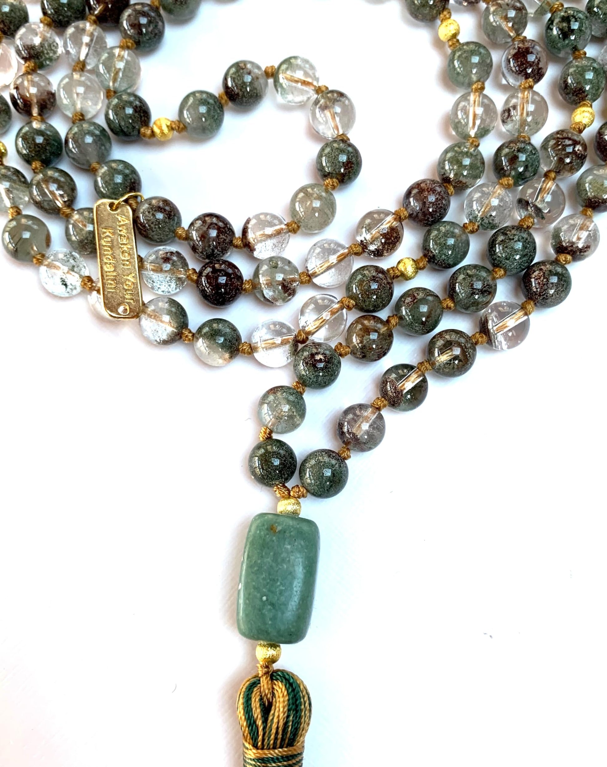 Lodolite Mala Beads Necklace | Garden Quartz Meditation Jewelry | VAAK Collection
