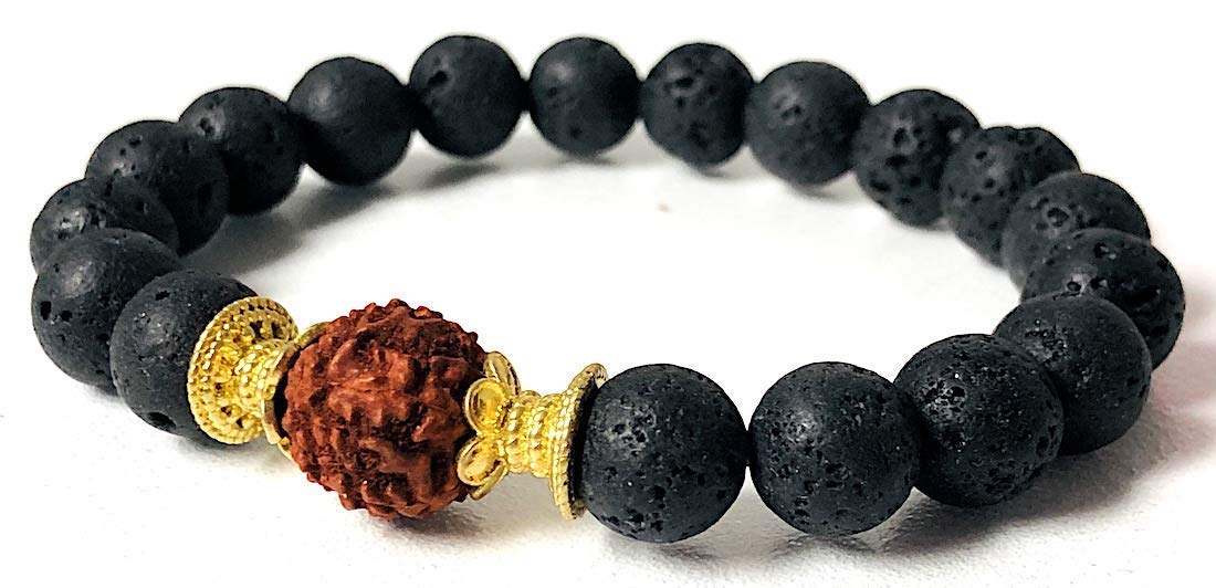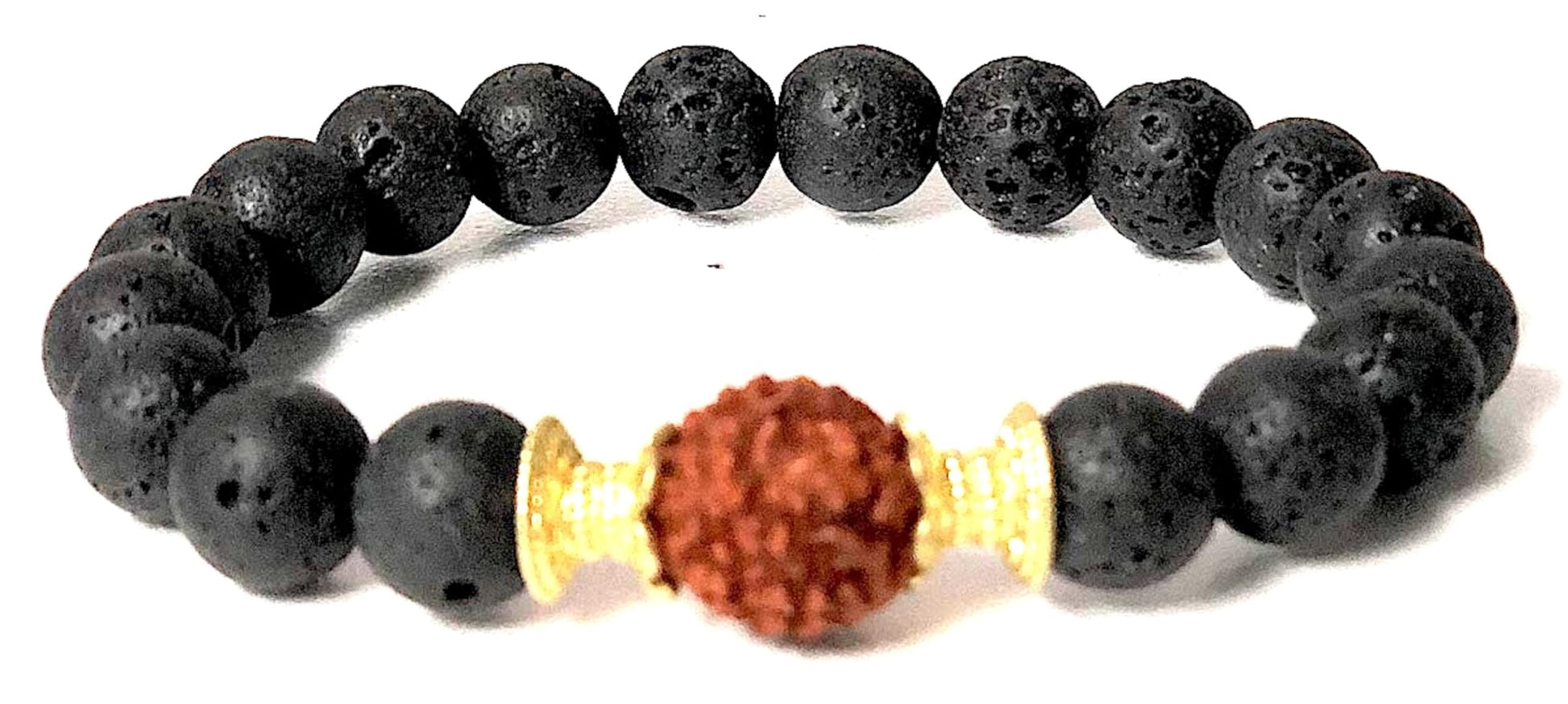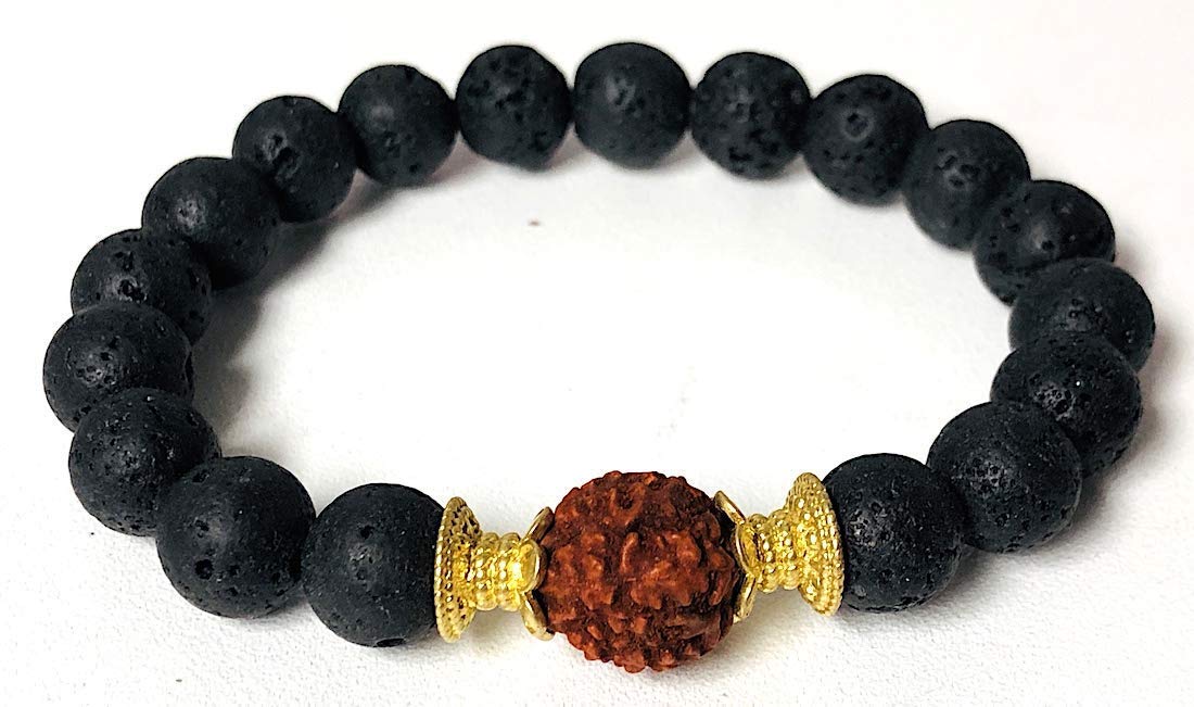 VULCAN Lava Rock & 7 Mukhi Rudraksha 10mm Bracelet | VESTA Collection