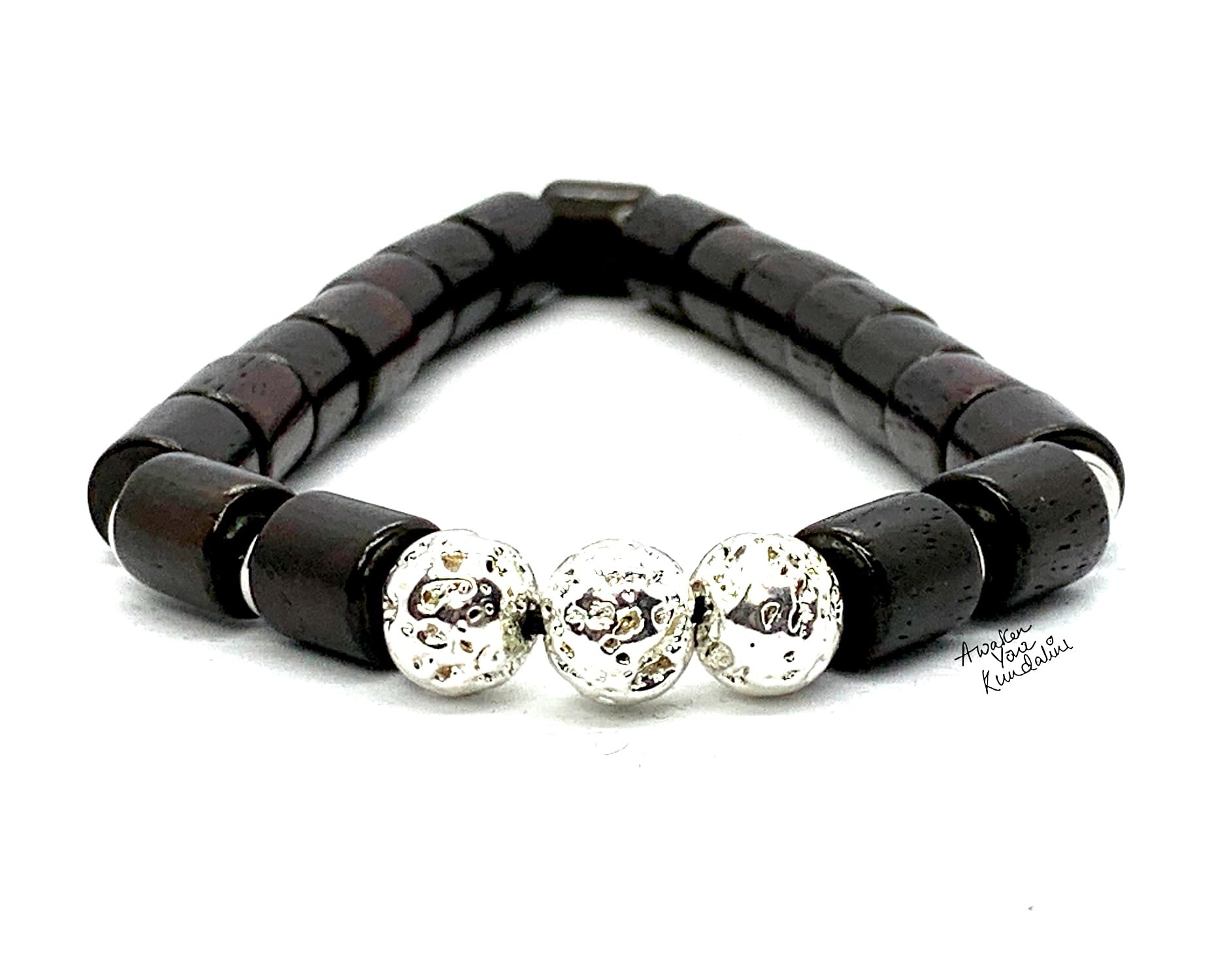 Rosewood & Lava Bracelet | Silver-Coated lava | VULCAN & ARANYA Collection