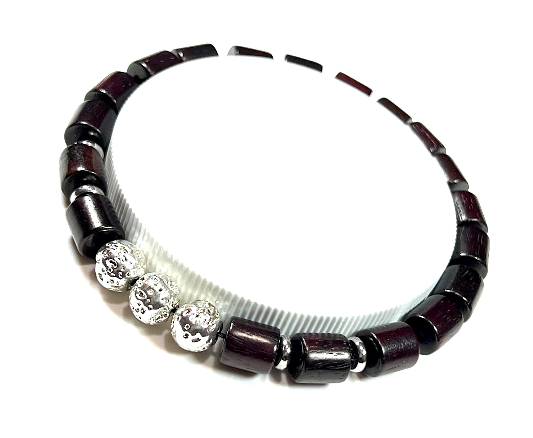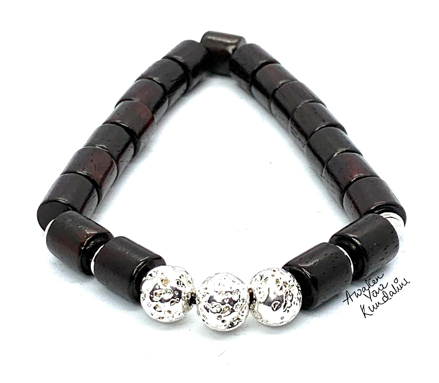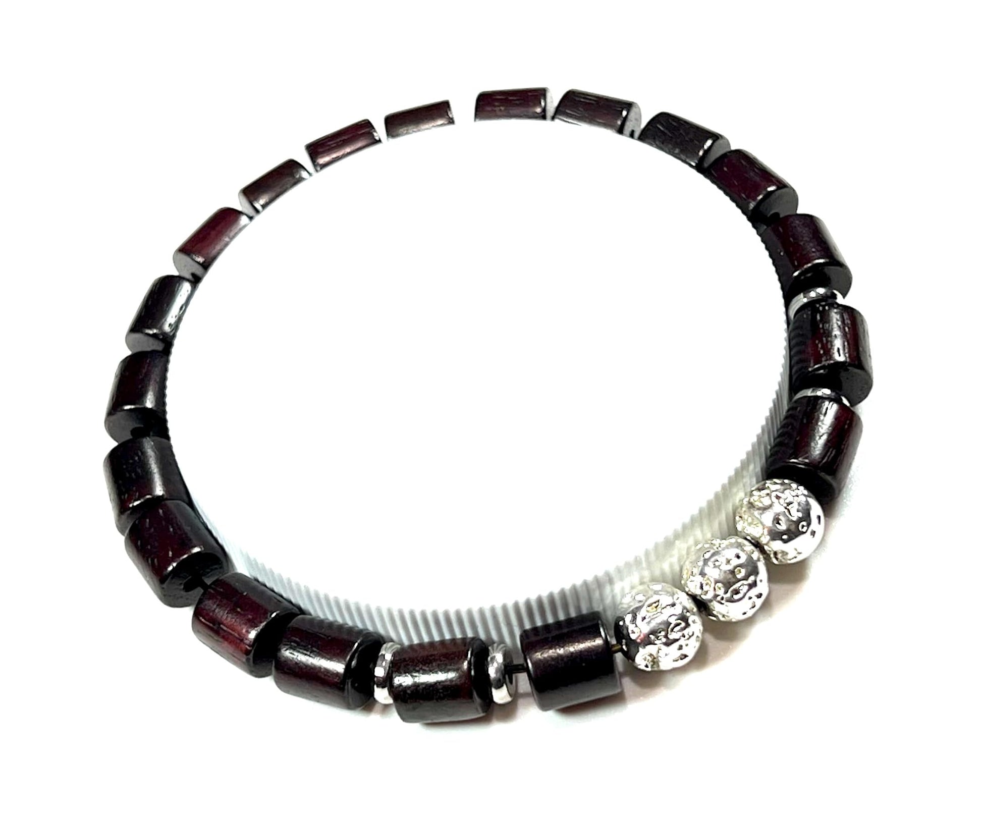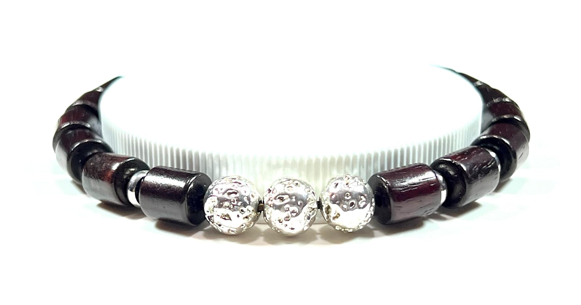 Stones: Natural Rosewood & Silver-Coated Lava Beads