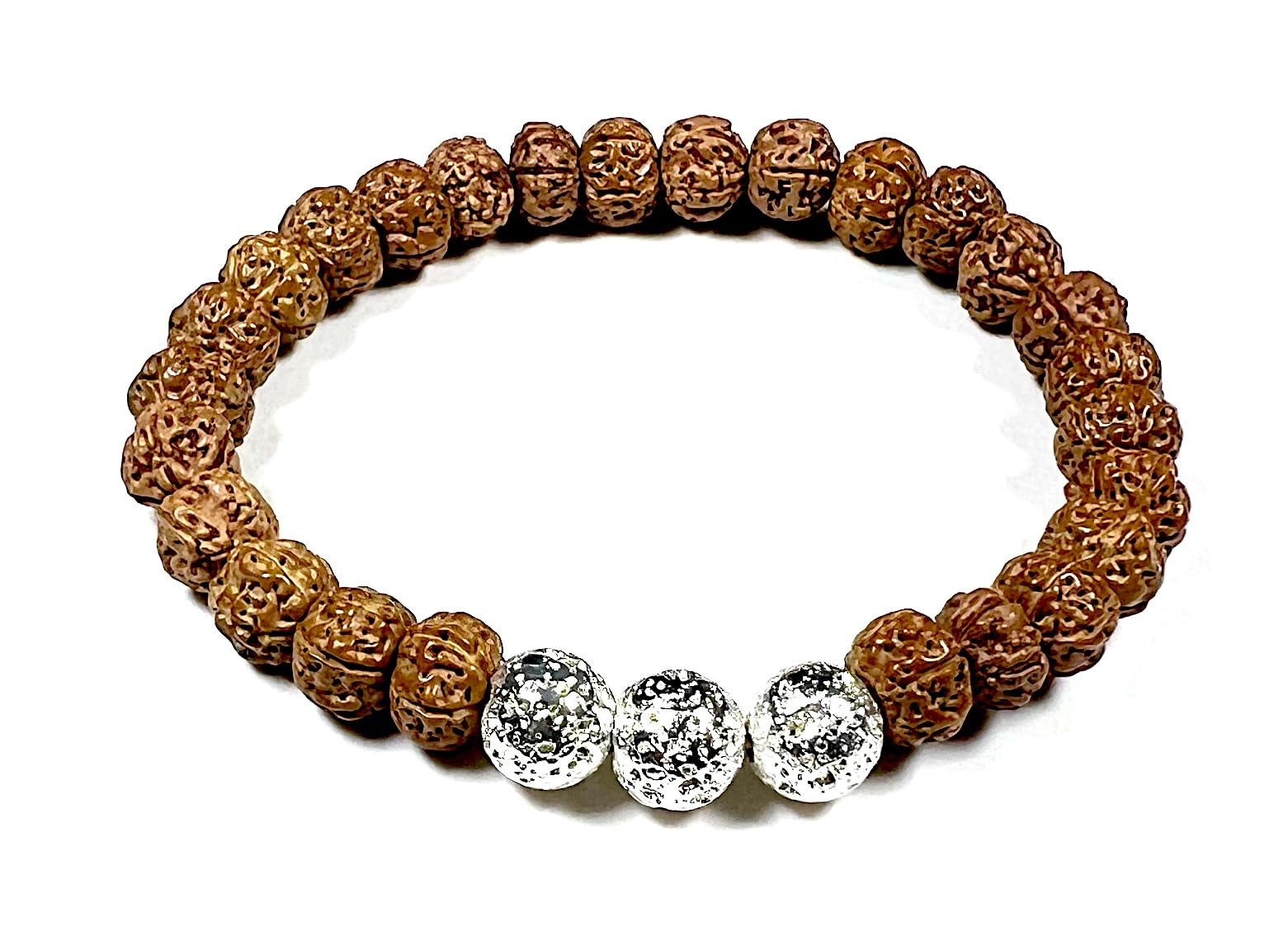 VULCAN Rudraksha & Silver-Plated Lava Bracelet | 8mm Stretch Design